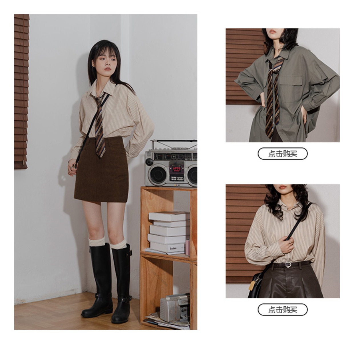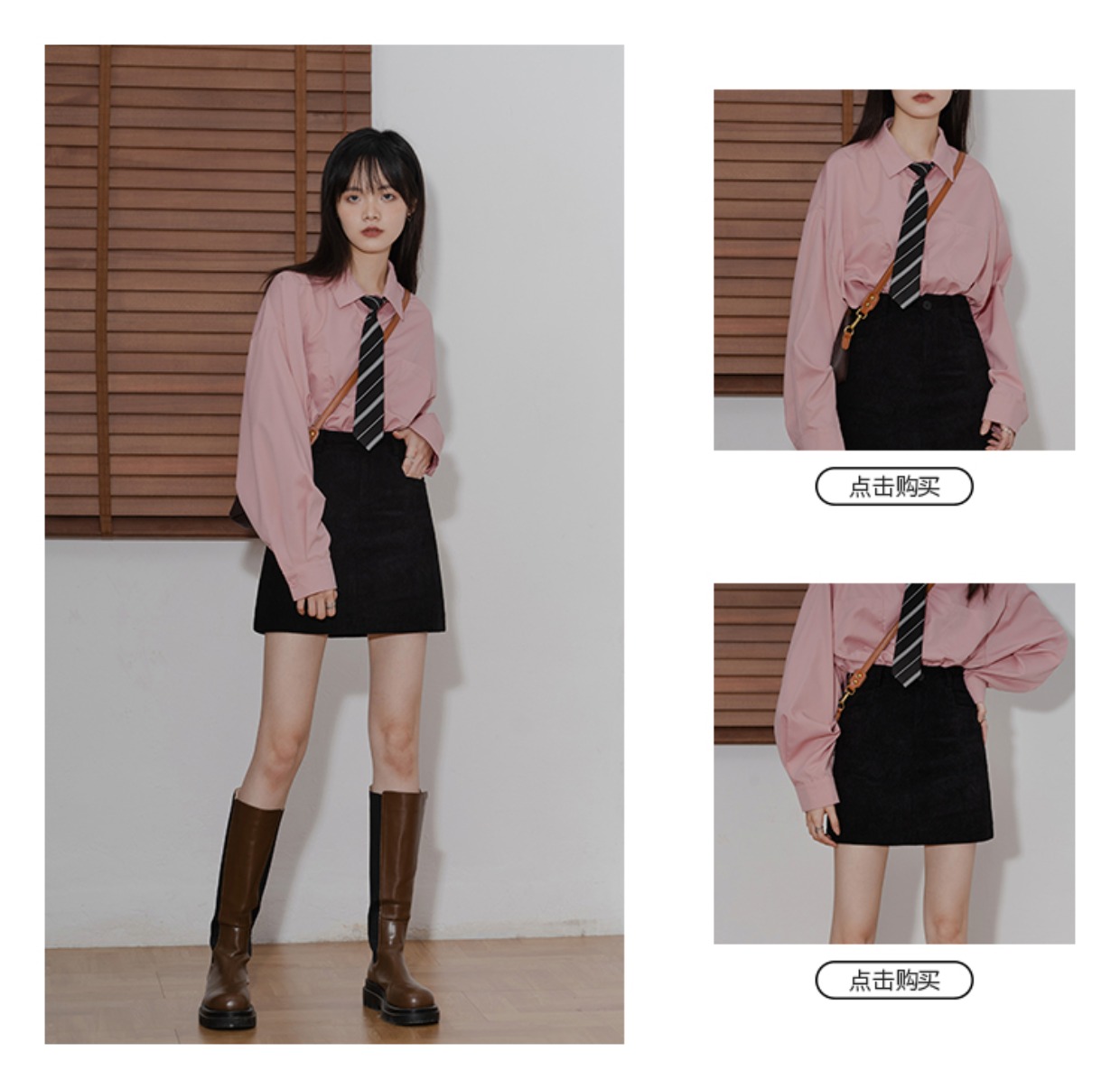 Retro High-Waisted Corduroy A-Line Short Skirt for Women in Autum with Anti-Exposure Lining, Simple and Versatile Corduroy Hip-Hugging Skirt