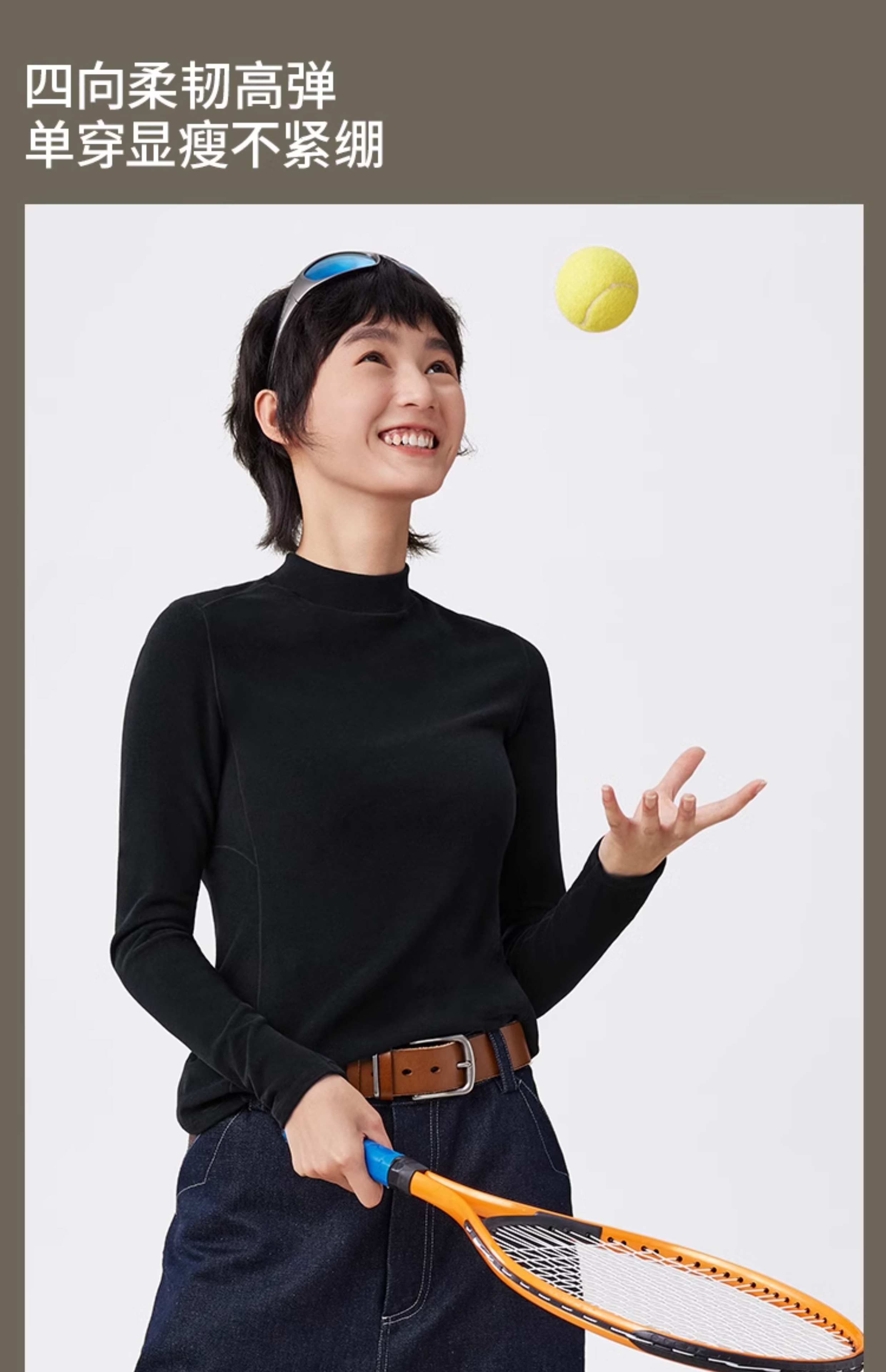 Jiaoxia Fleece Base Layer Shirt for Women, New Autumn Style, Half-High Collar, Warm and Fleece-Lined, Skin-Friendly Inner Layer Top