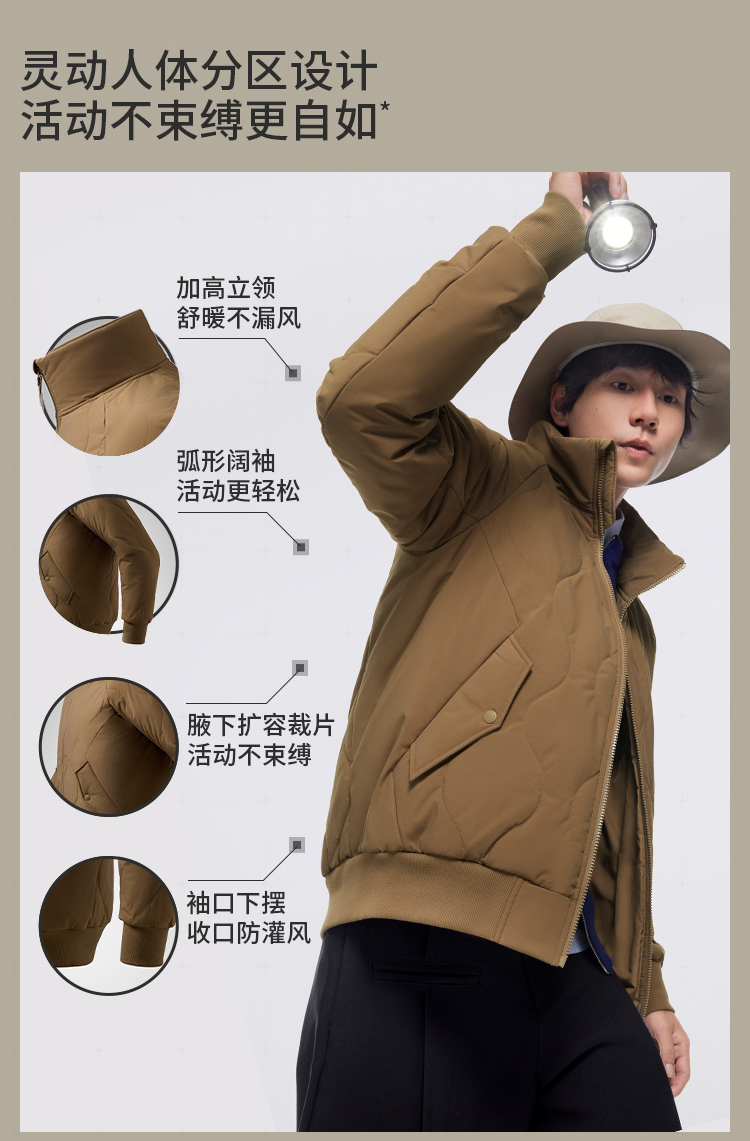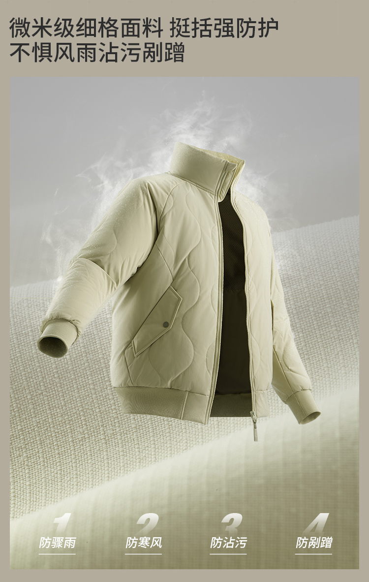 Men's Bomber Jacket with Stand Collar, Windproof and Cold-Resistant Padded Coat, Thickened and Warm Cotton Jacket
