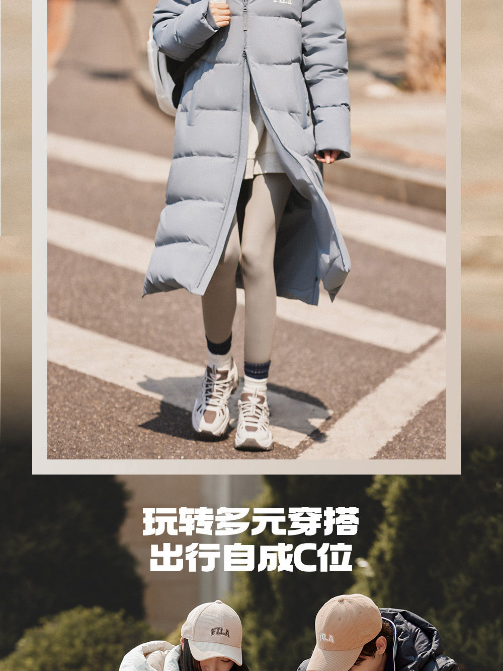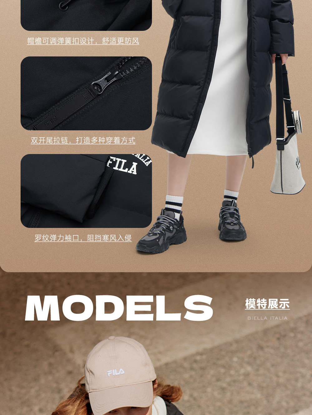 FILA 斐乐女子羽绒服2023冬季新品加厚长款防泼水防污保暖外套女
