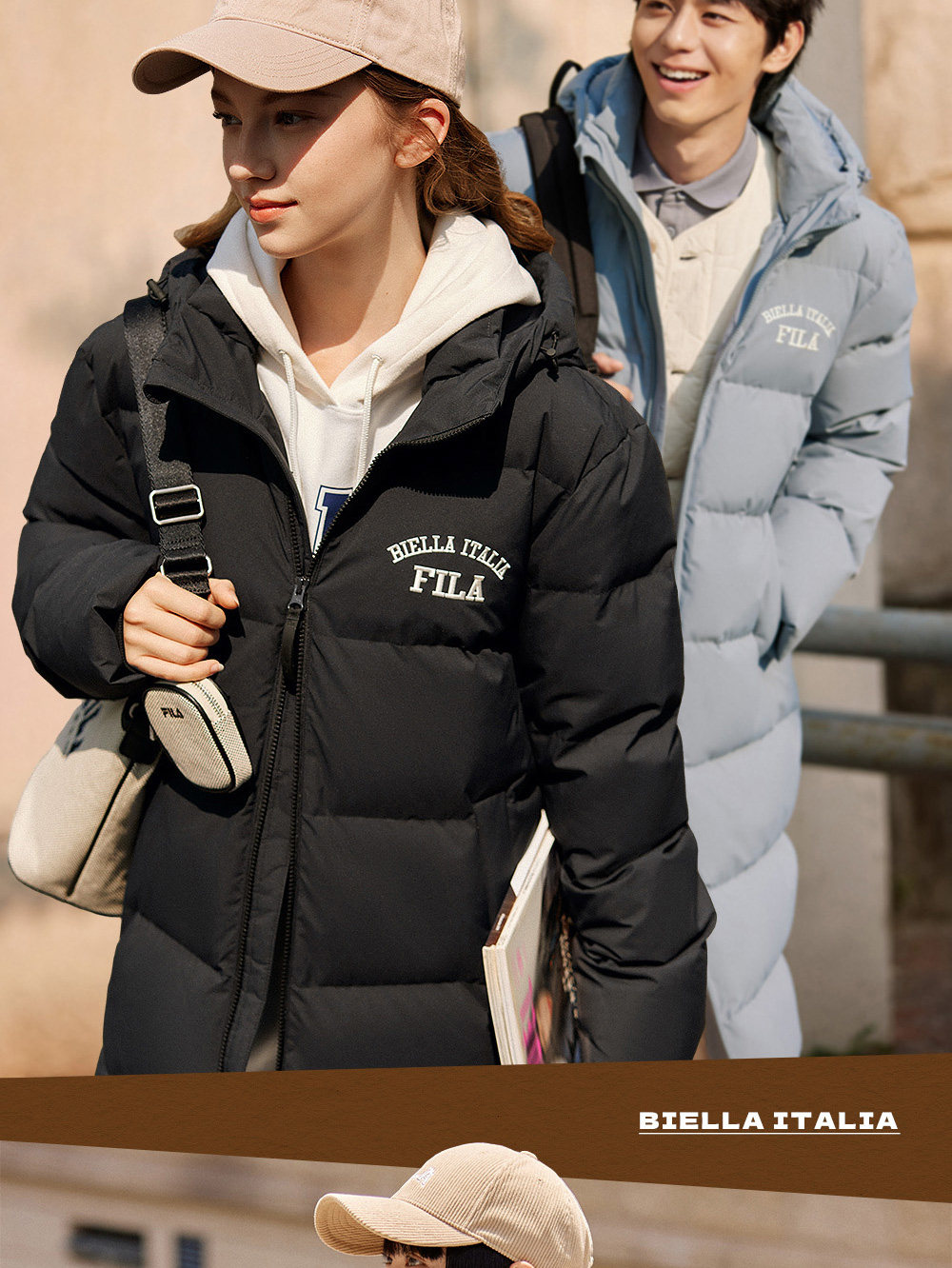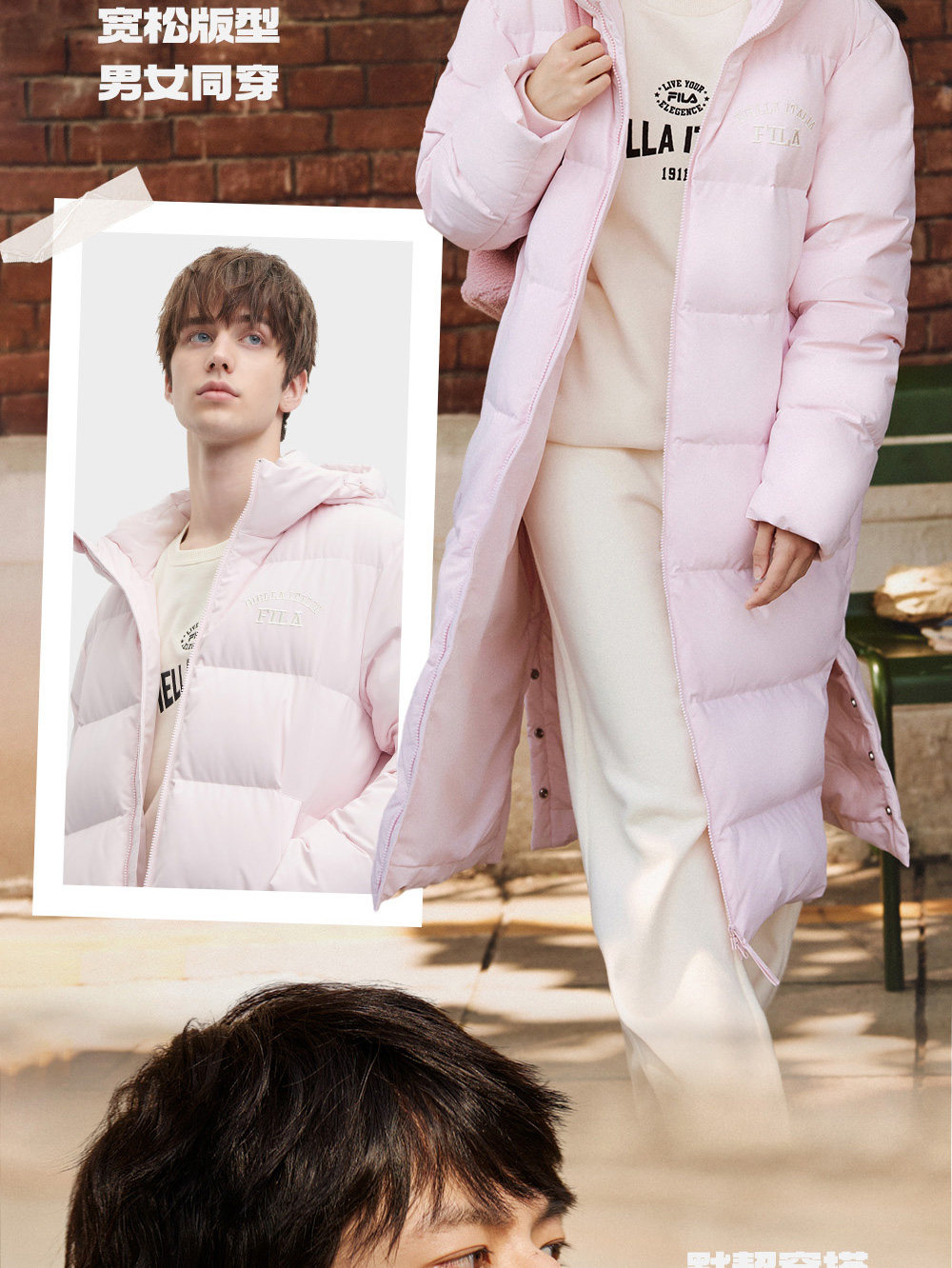 【张艺兴同款】FILA 斐乐情侣羽绒服2023冬新保暖加厚面包服男女