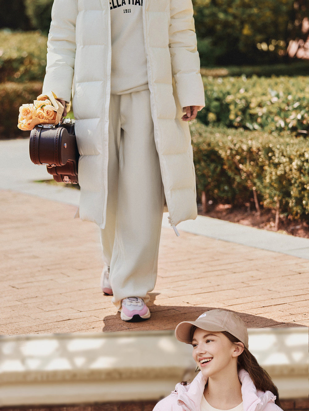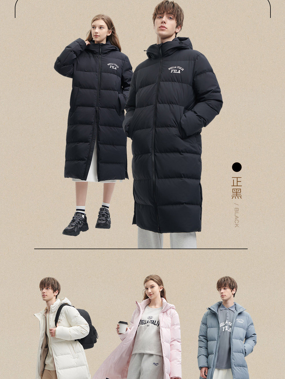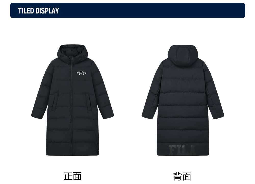 Fila Official Couple's Long down Jacket, Warm and Thick Coat, Men's Sports Over-The-Knee Loose Parka, Women's