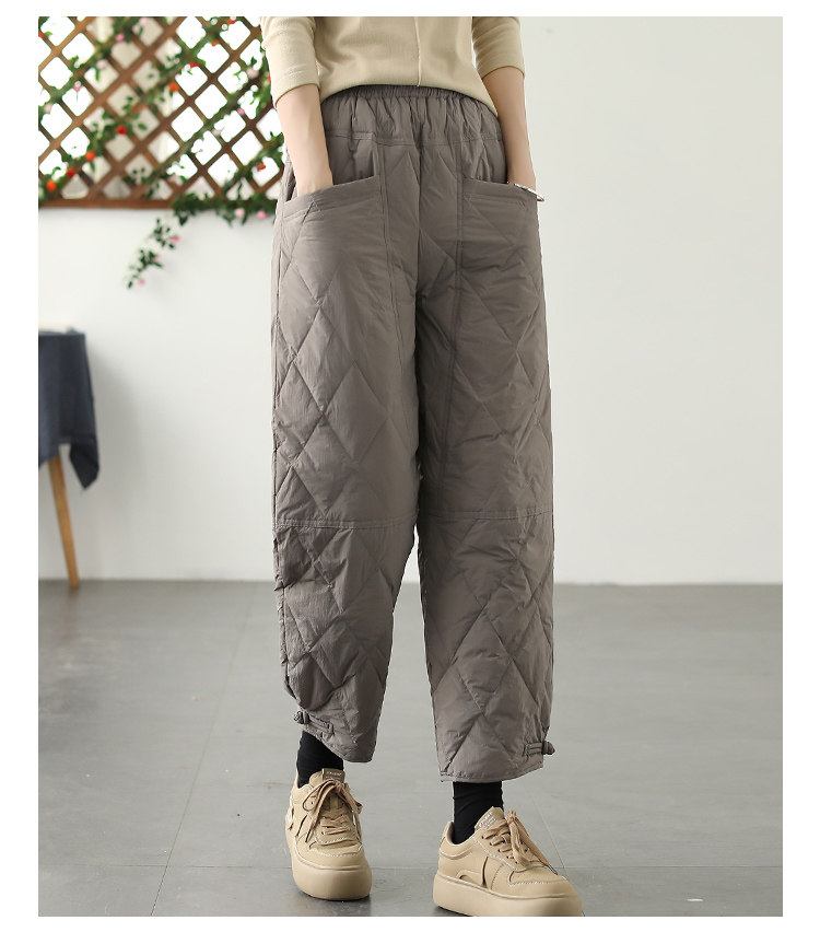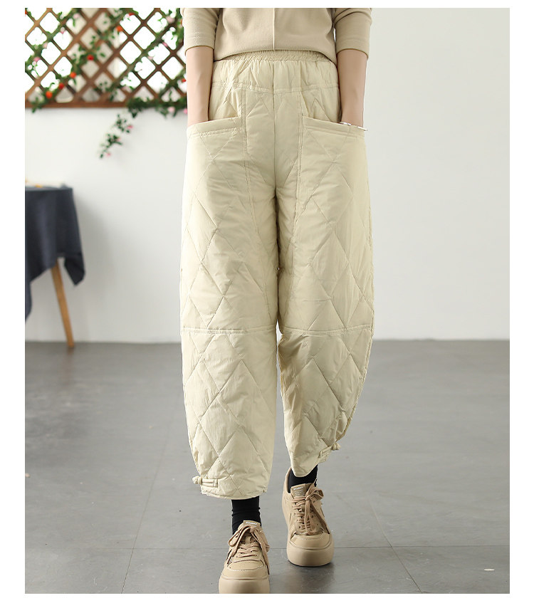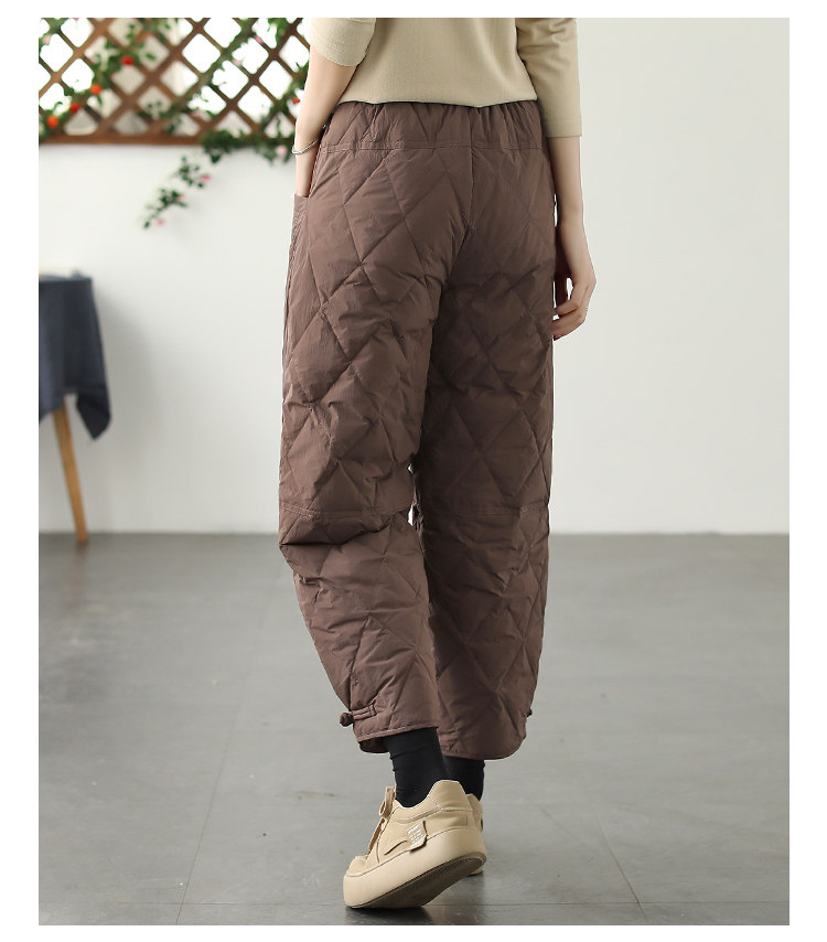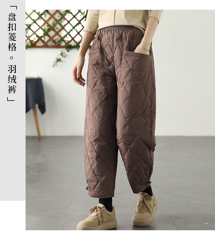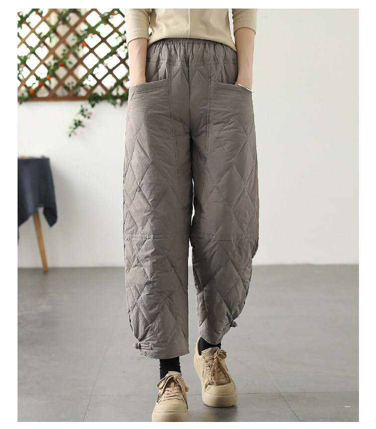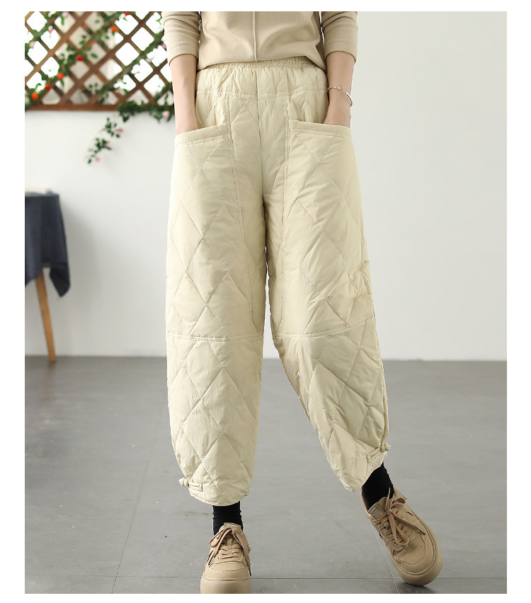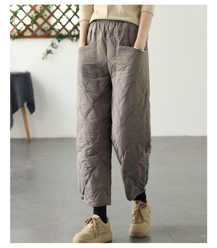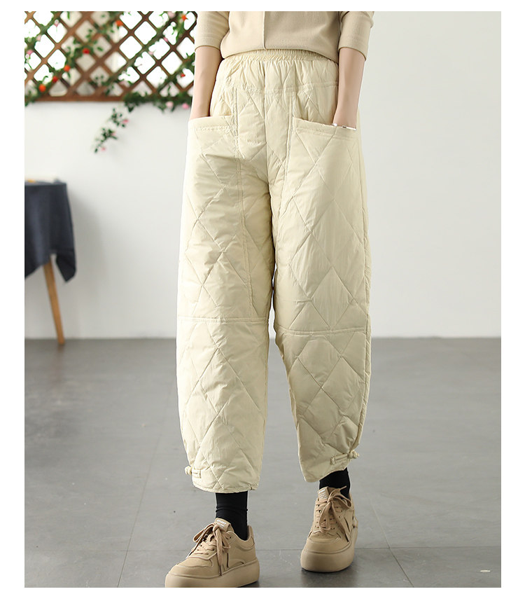 2025 New Solid Color Quilted White Duck down Buckle Casual Cotton Pants for Women, Thickened Warm down Pants for Women, Winter Outerwear