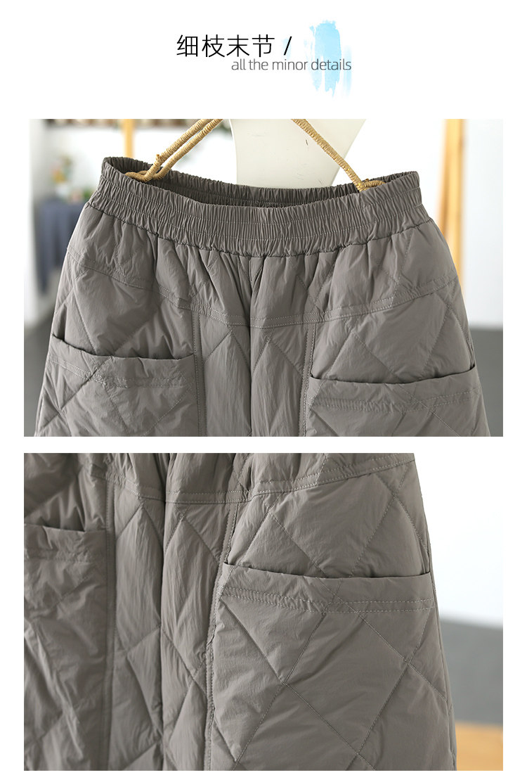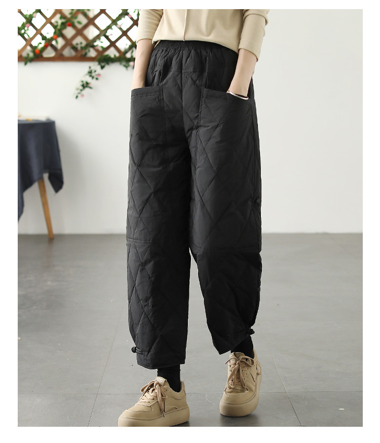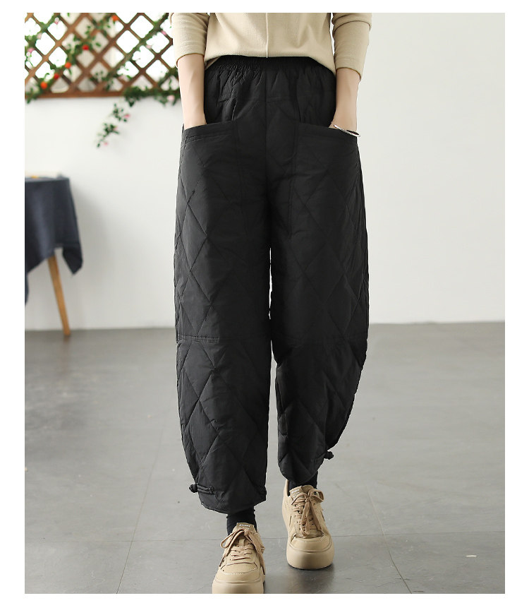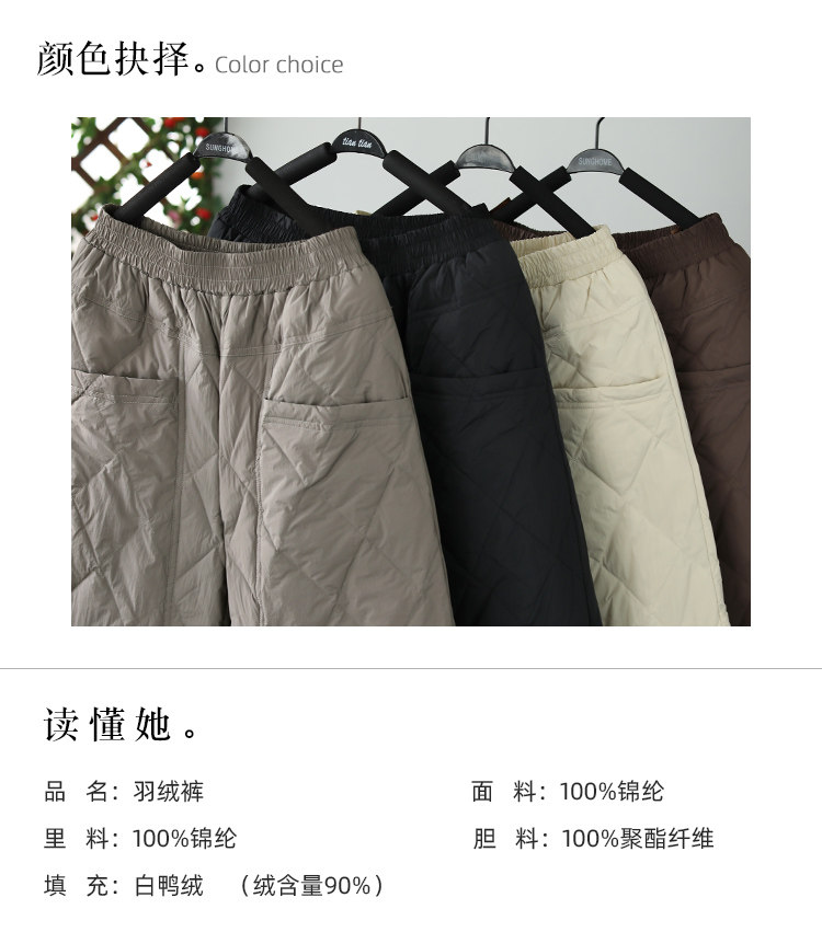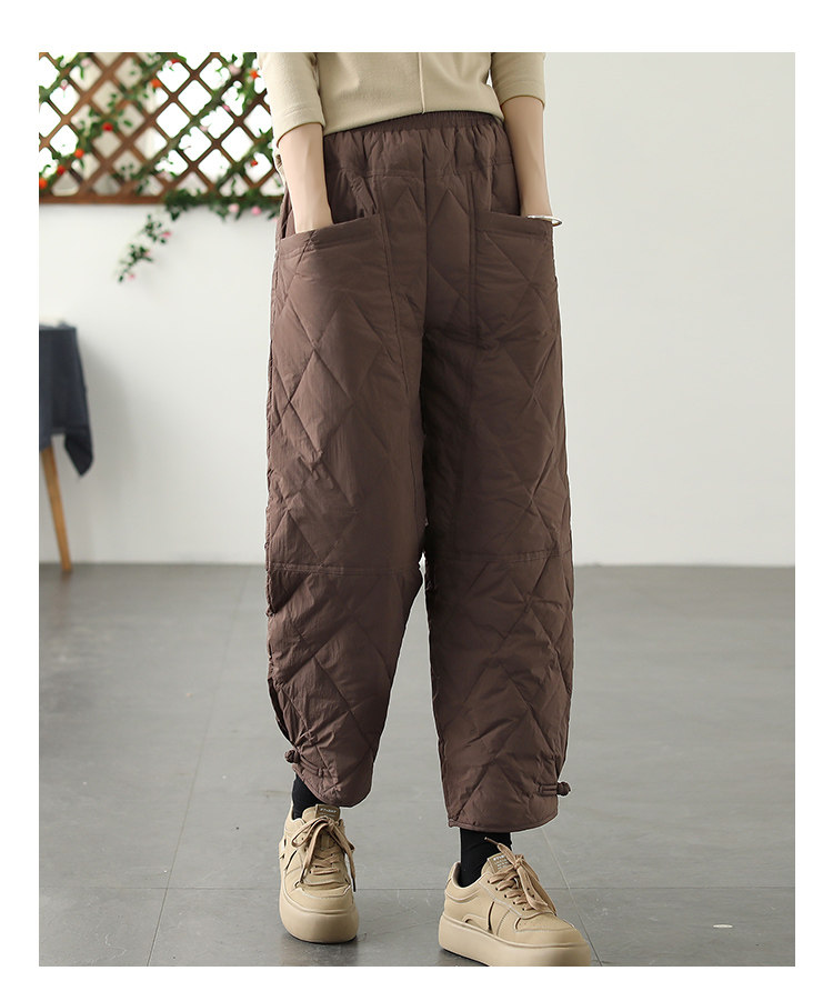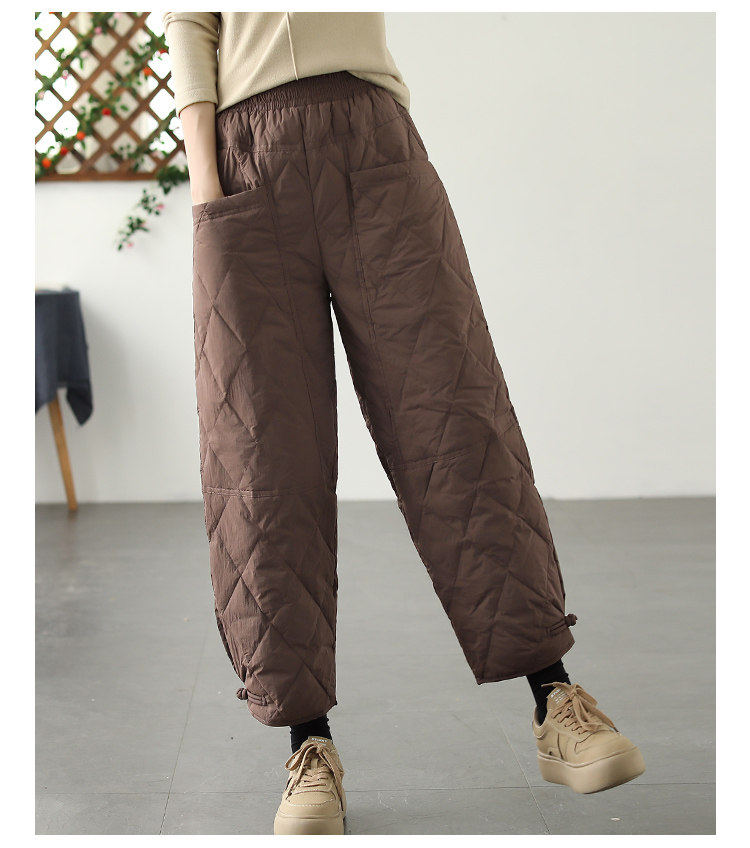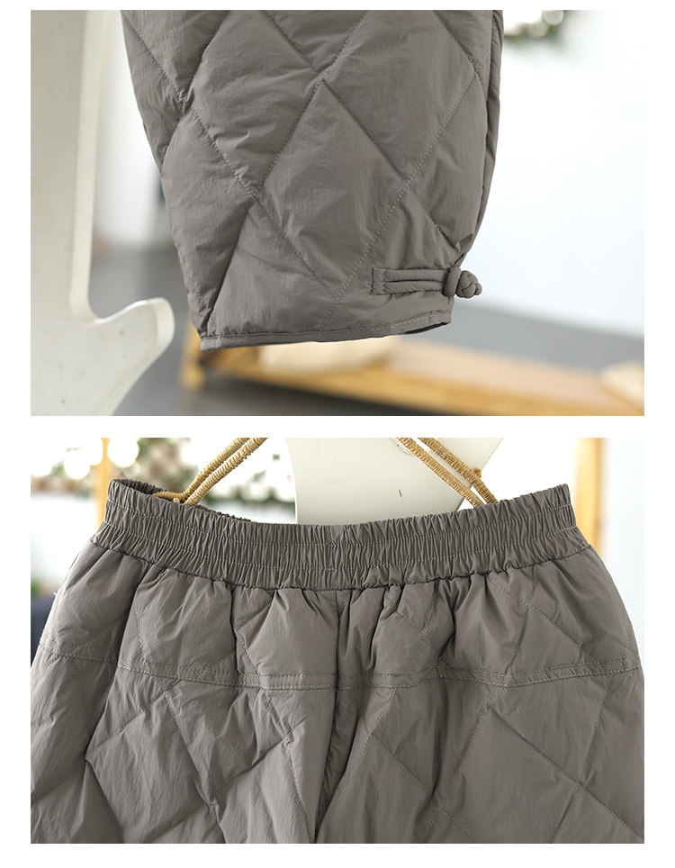 2025 New Solid Color Quilted White Duck down Buckle Casual Cotton Pants for Women, Thickened Warm down Pants for Women, Winter Outerwear