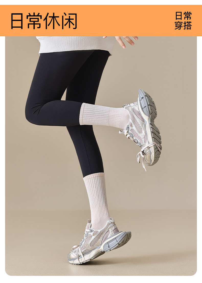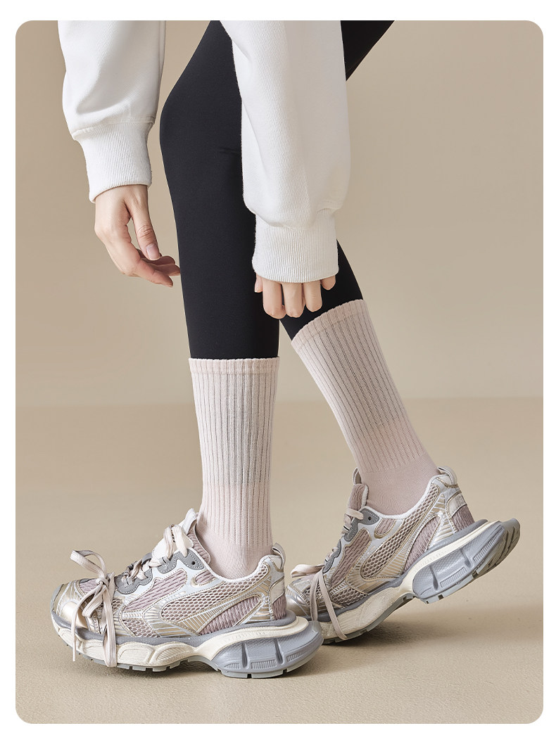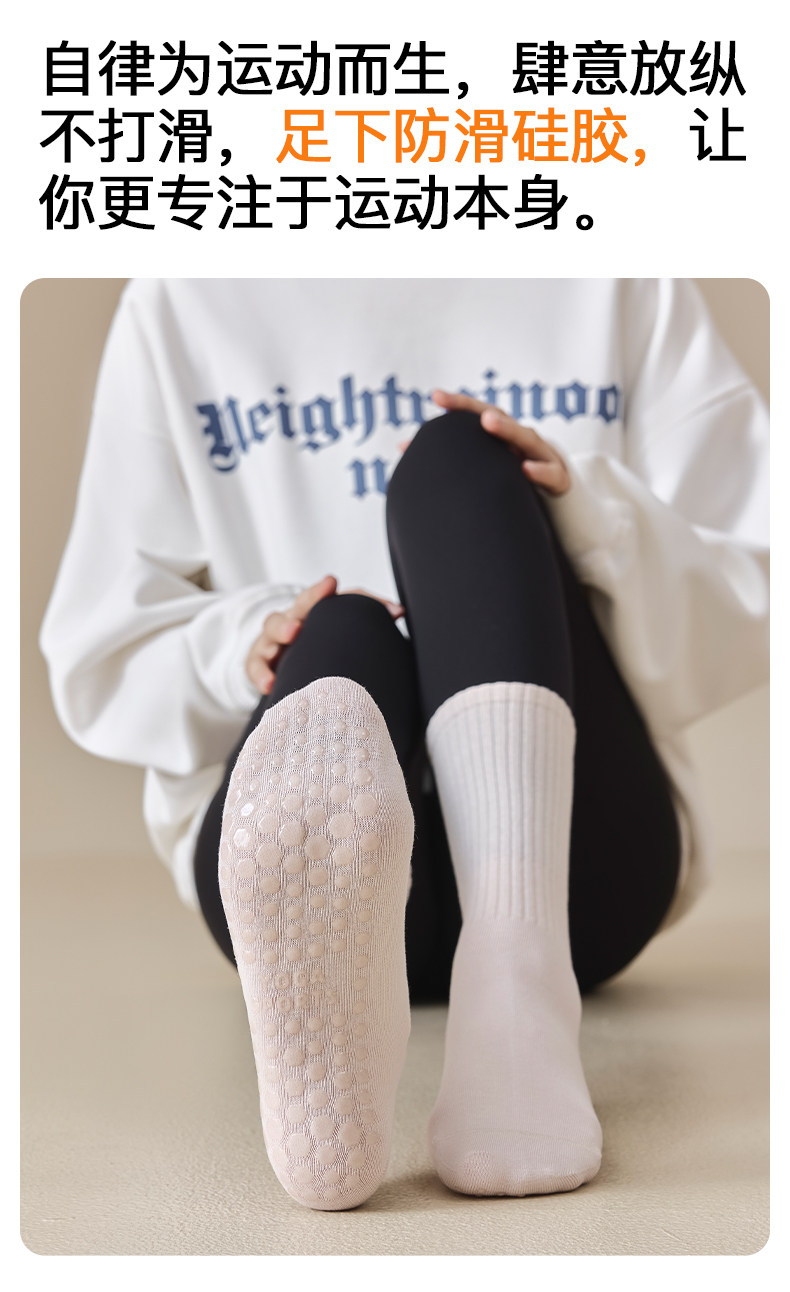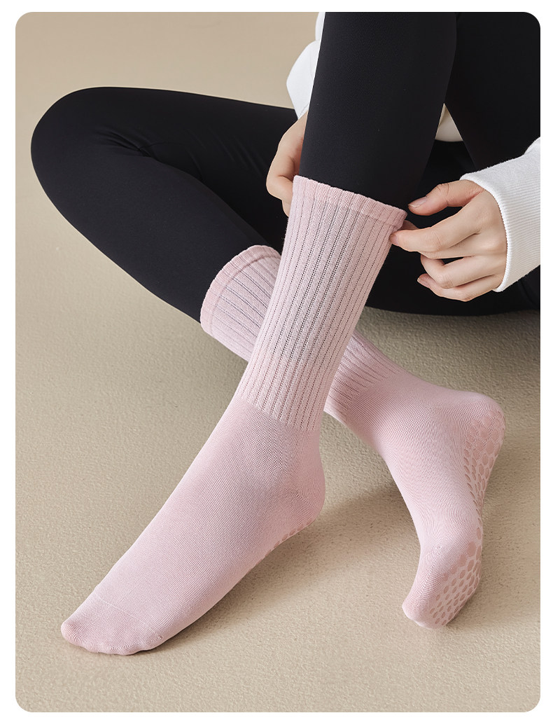 Yoga Socks for Women, Spring and Autumn Style, Mid-Calf Socks, Pure Cotton, Professional Fitness, Pilates Sports Long Socks, Suitable for Wearing with Shark Pants in Winter