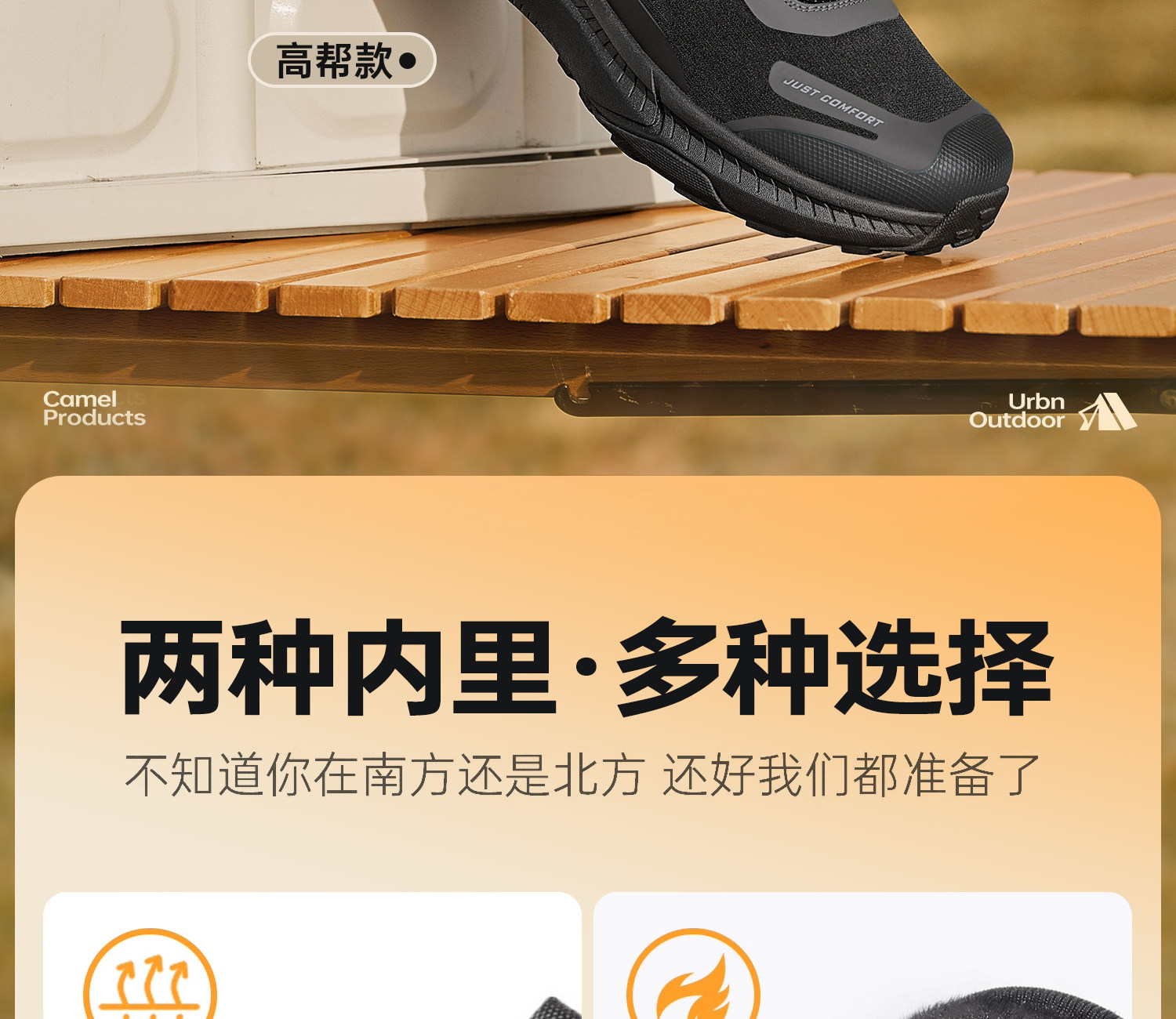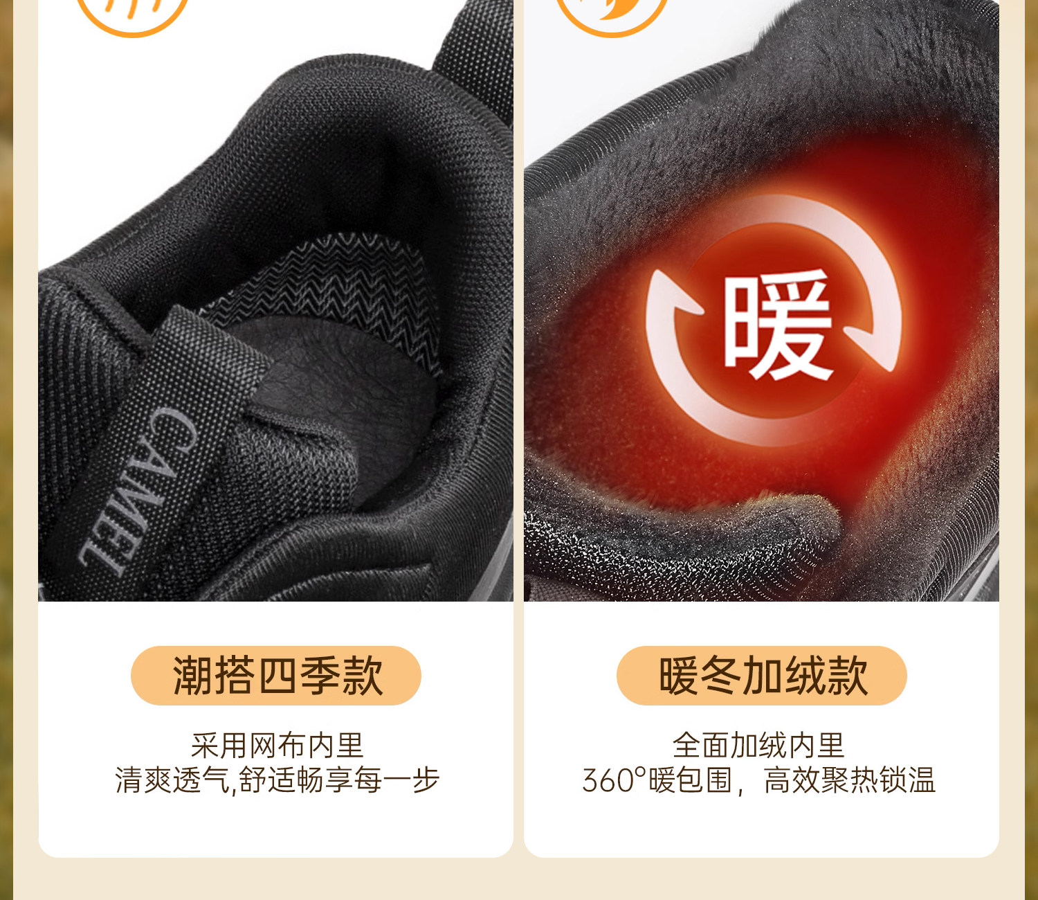 Camel Men's Shoes, Winter Hiking Sneakers, High-Top, Fleece-Lined, Warm Running Shoes, Outdoor Casual Cotton Shoes, Gift for Dad