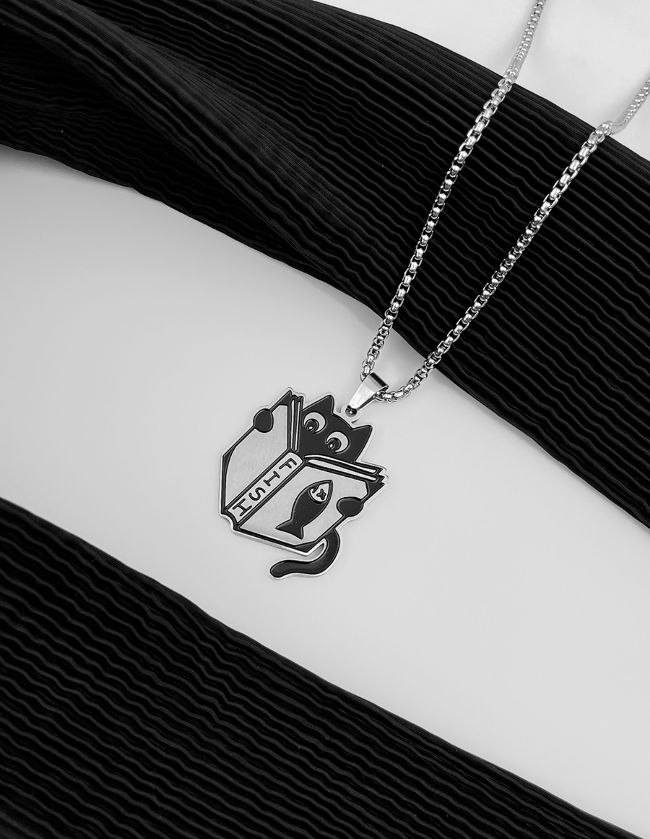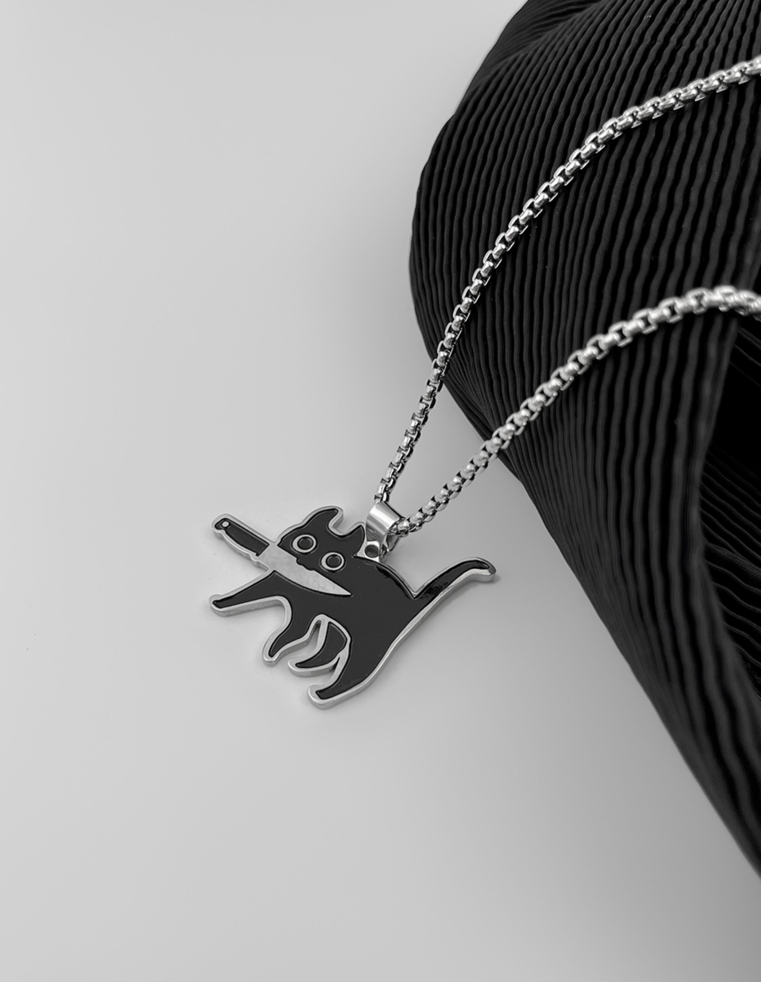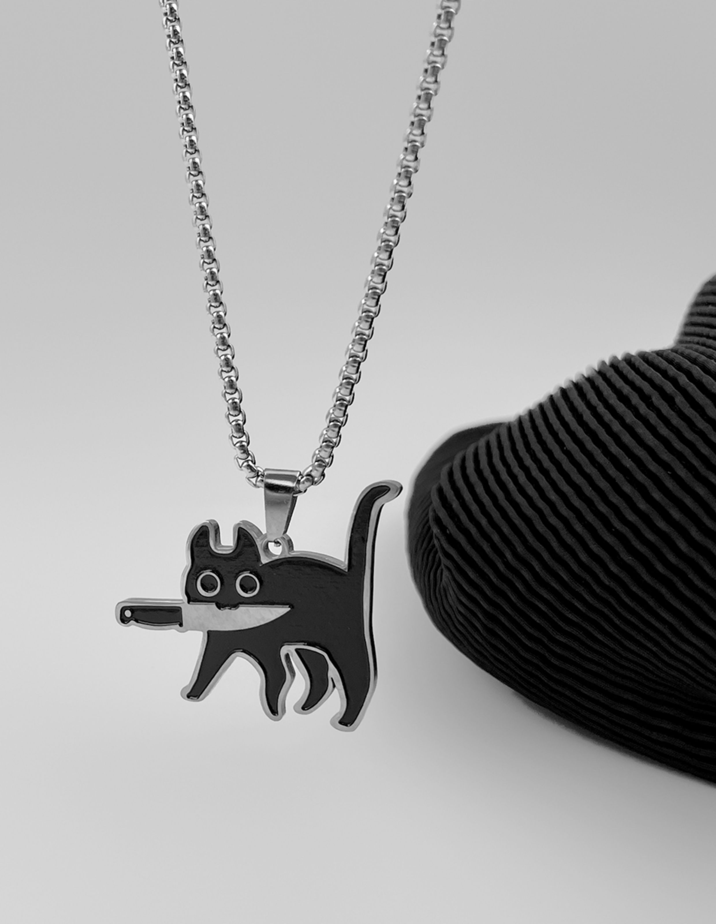 Whyblue Cat Necklace with Knife Pendant, Titanium Steel, Non-Fading, Niche, Simple, Creative, Black Cat, Cute Pendant for Students