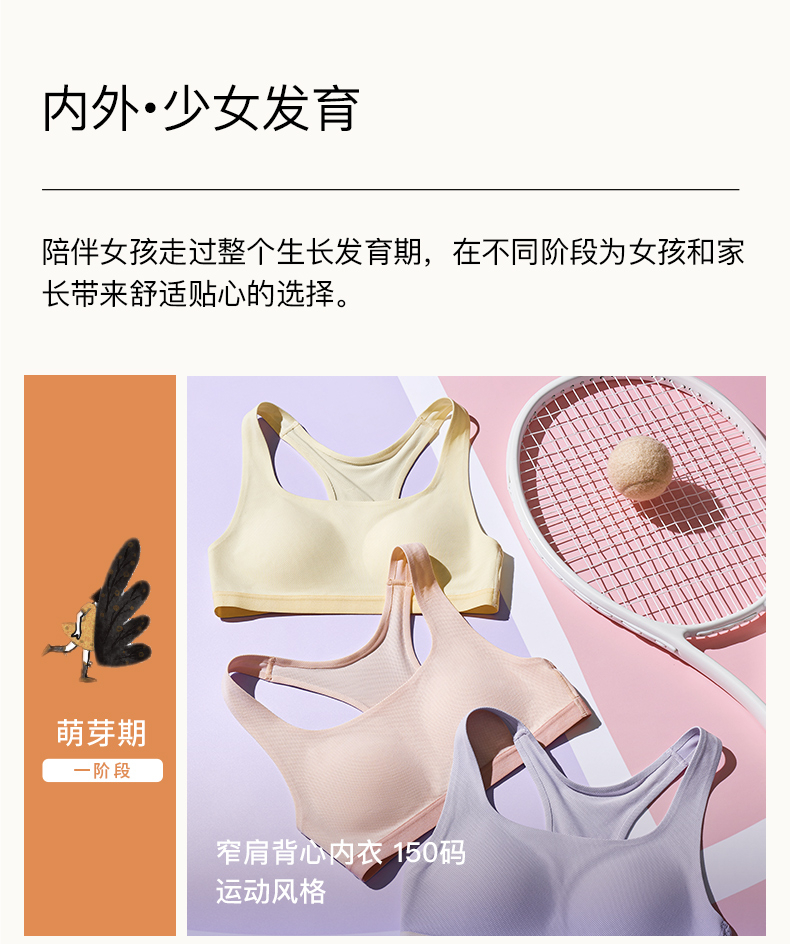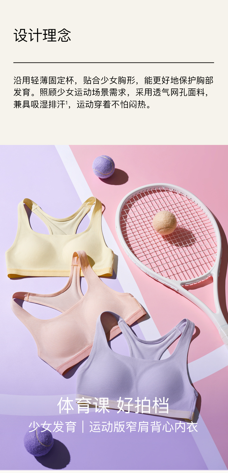 Inner and Outer Wear for Girls, Developmental Sports Version, Narrow Shoulder Vest, Breathable Underwear for Girls in the Developmental Period Neiwai232Pu1107