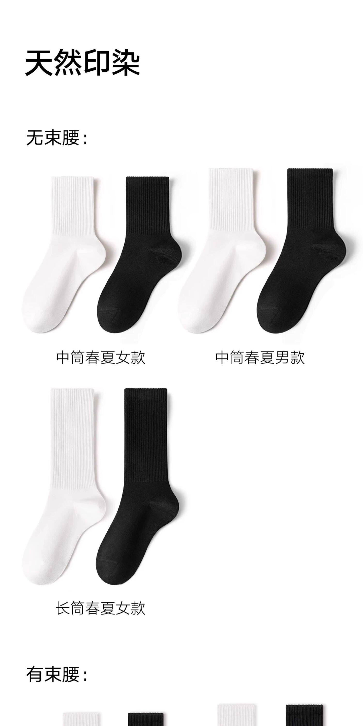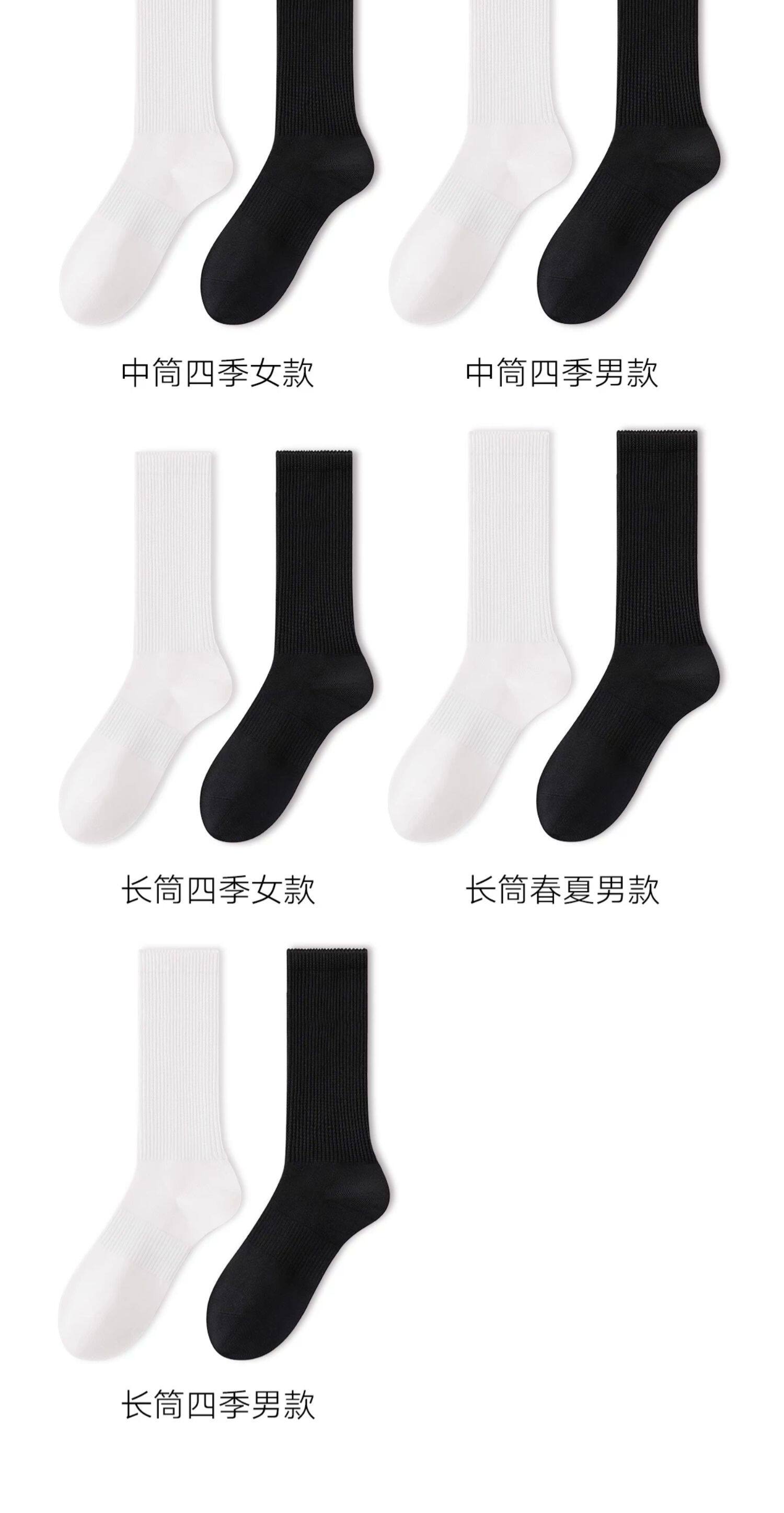 Women's Pure Cotton Mid-Calf Socks for Spring and Autumn, Seamless, Antibacterial, Odor-Resistant, Black and White, Thin Summer Sports Long Socks
