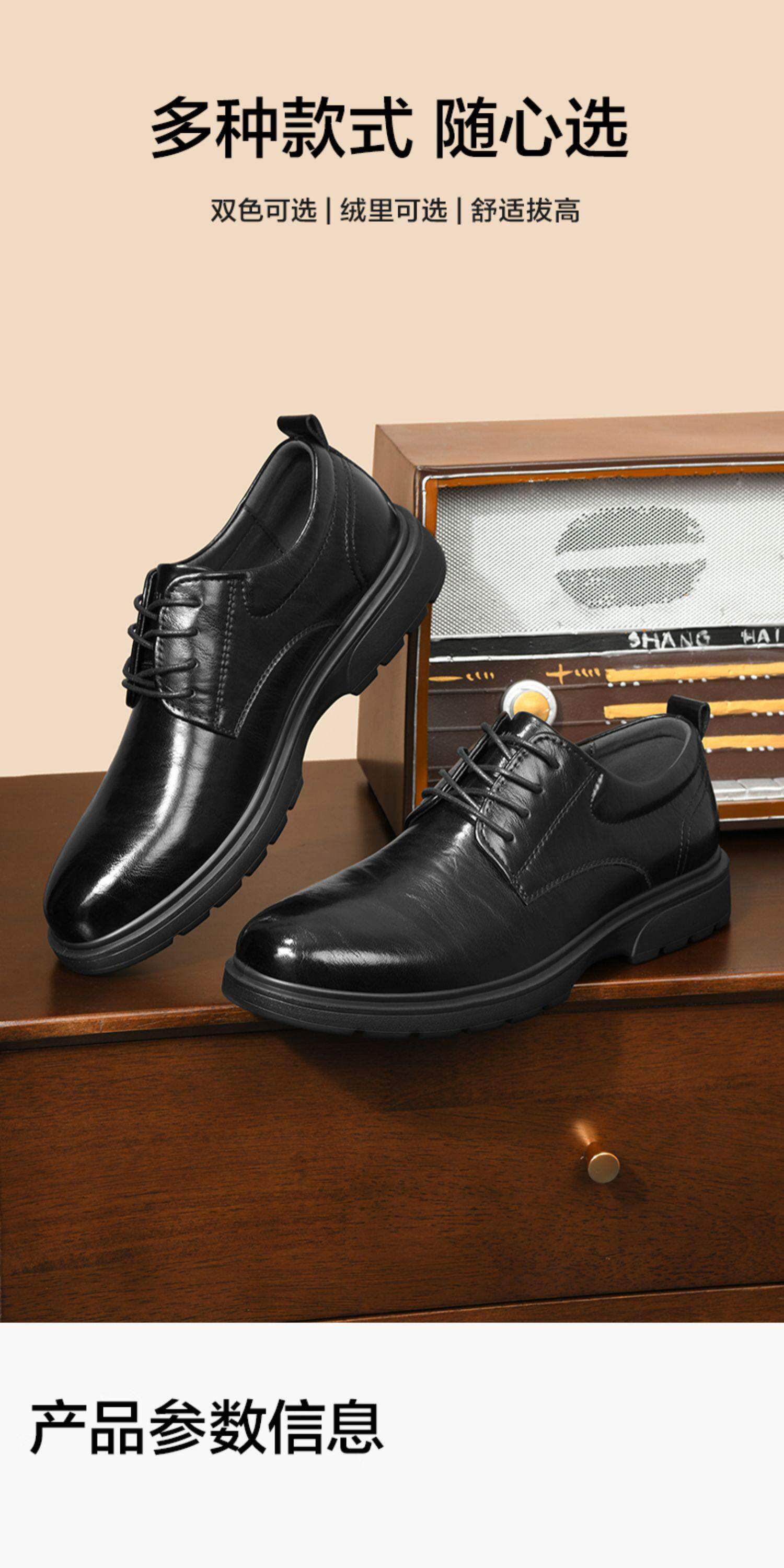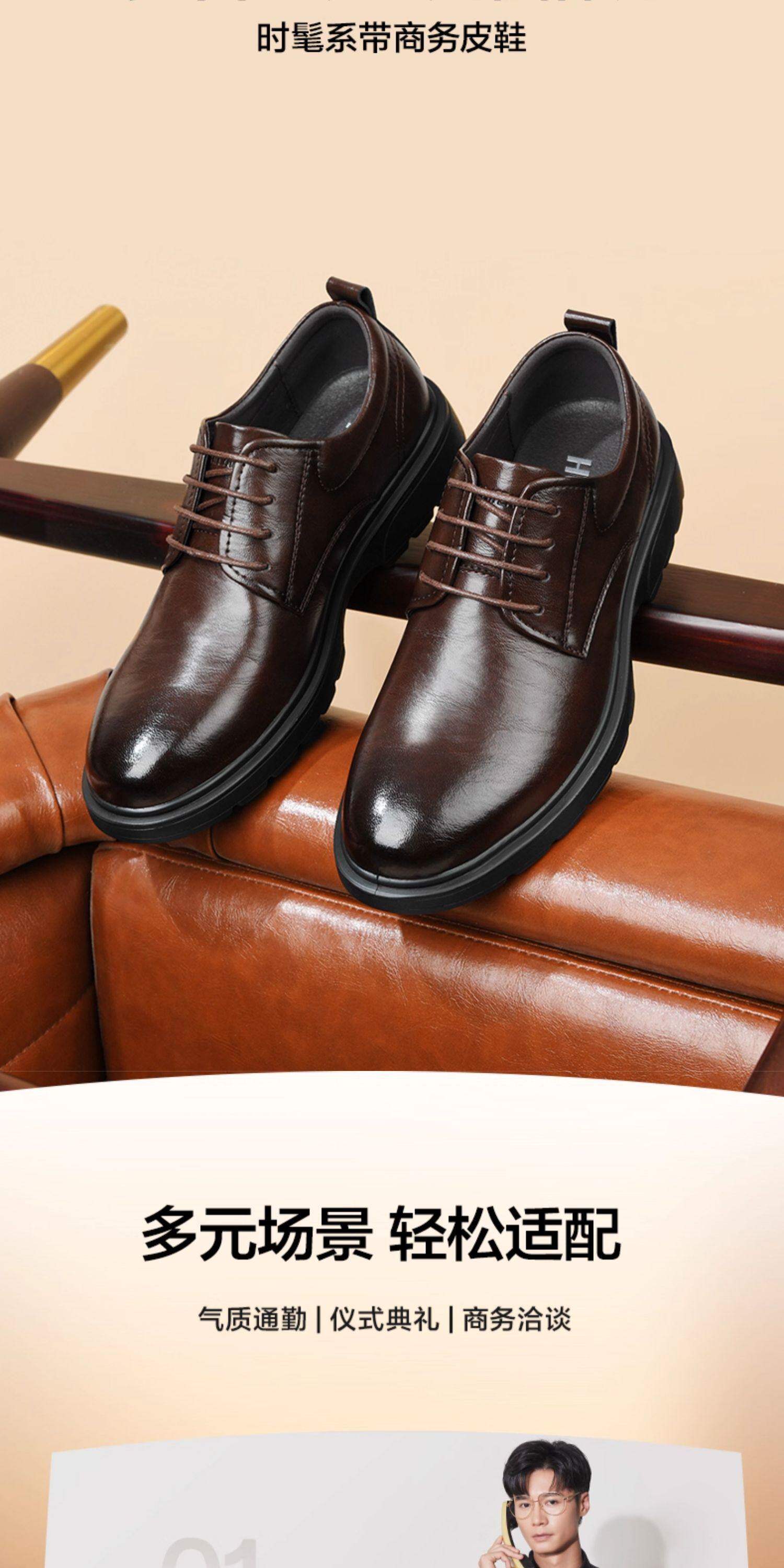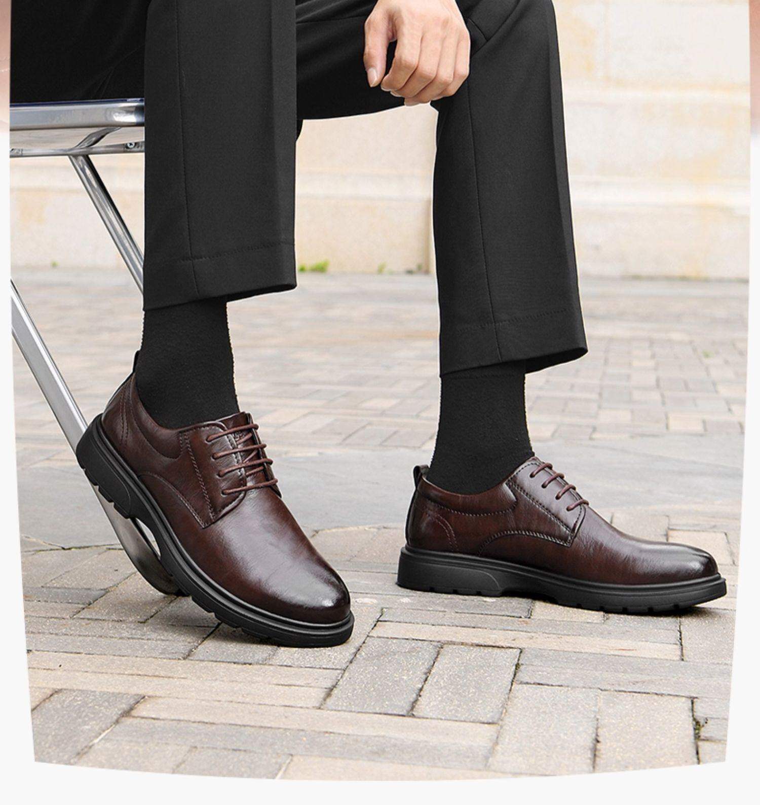 Heilan Home Business Formal Leather Shoes for Men, Dad's 2026 New Model, Height-Increasing, Wedding, Soft Sole, Casual Men's Shoes with Fleece Lining