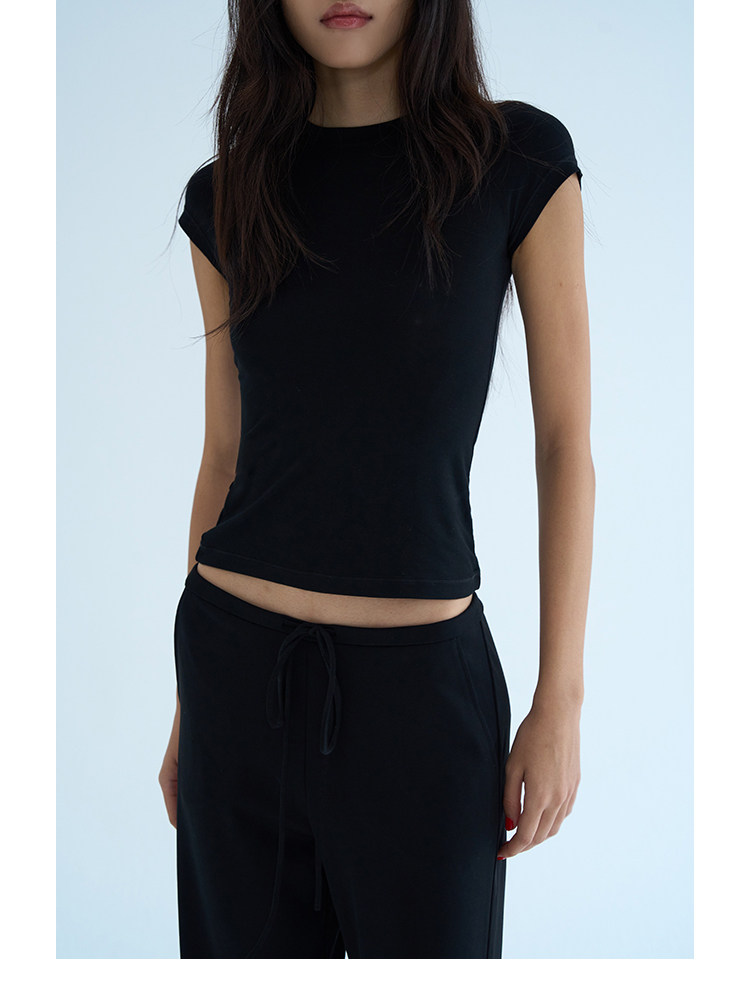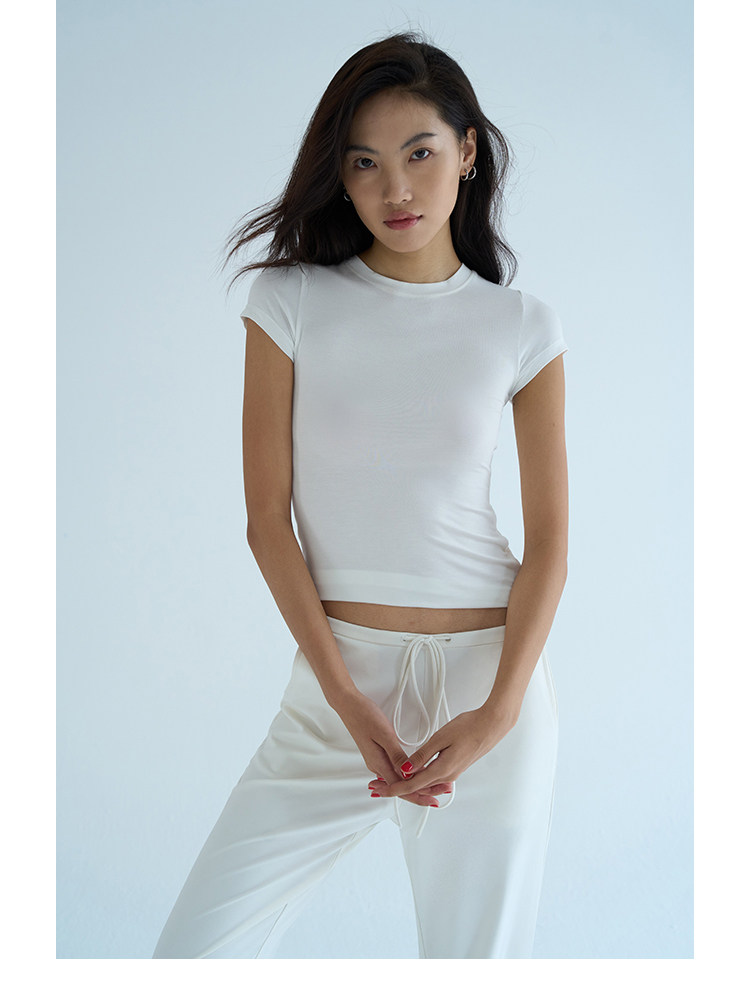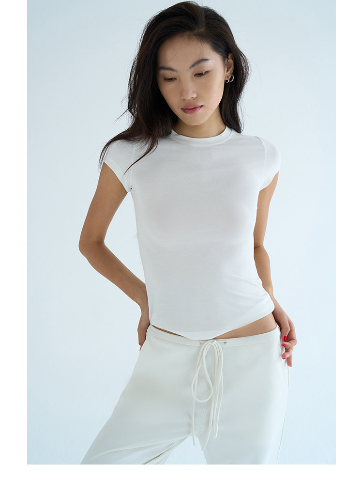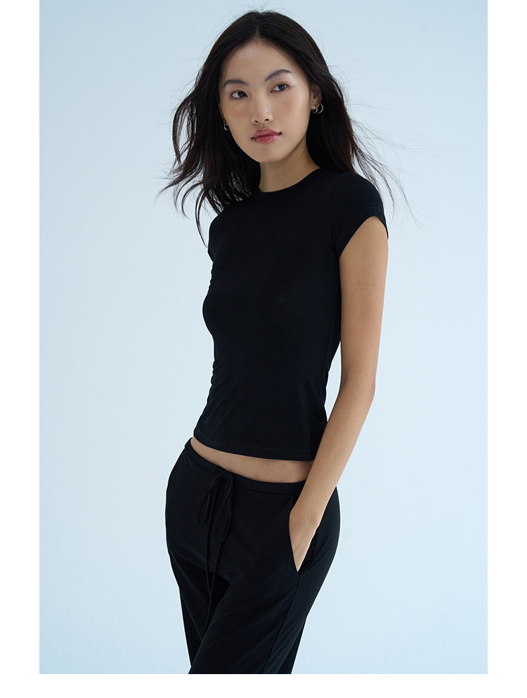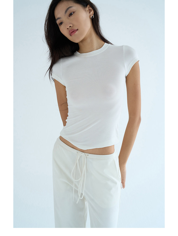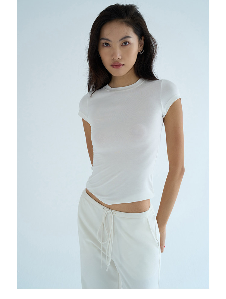 Aolol Mask T-Shirt Ski** Same Style Naked-Feel Modal Short-Sleeve T-Shirt for Women, Summer Slim-Fit High-Elastic Round-Neck Top