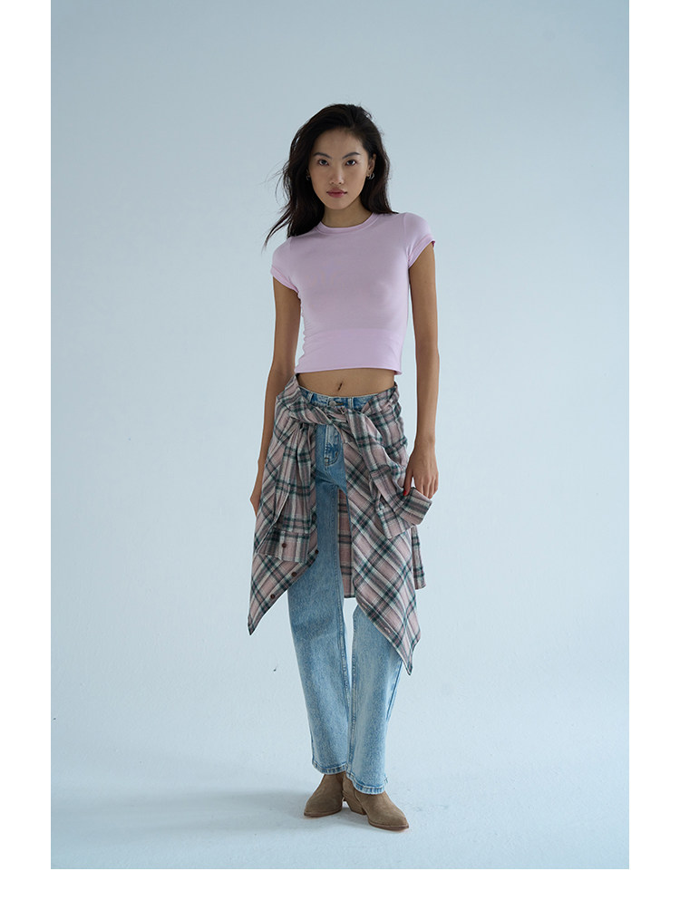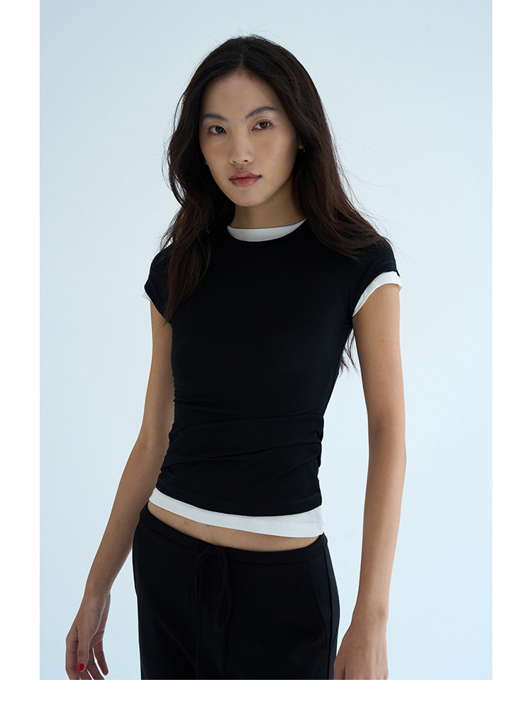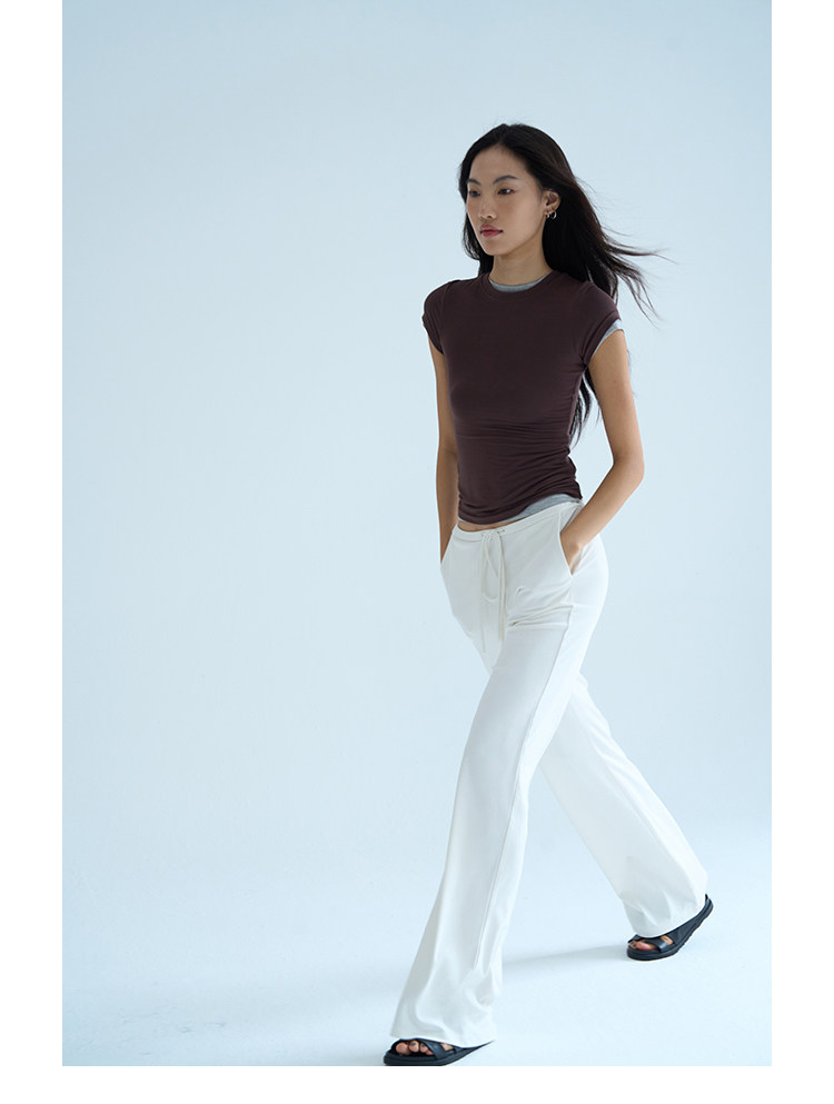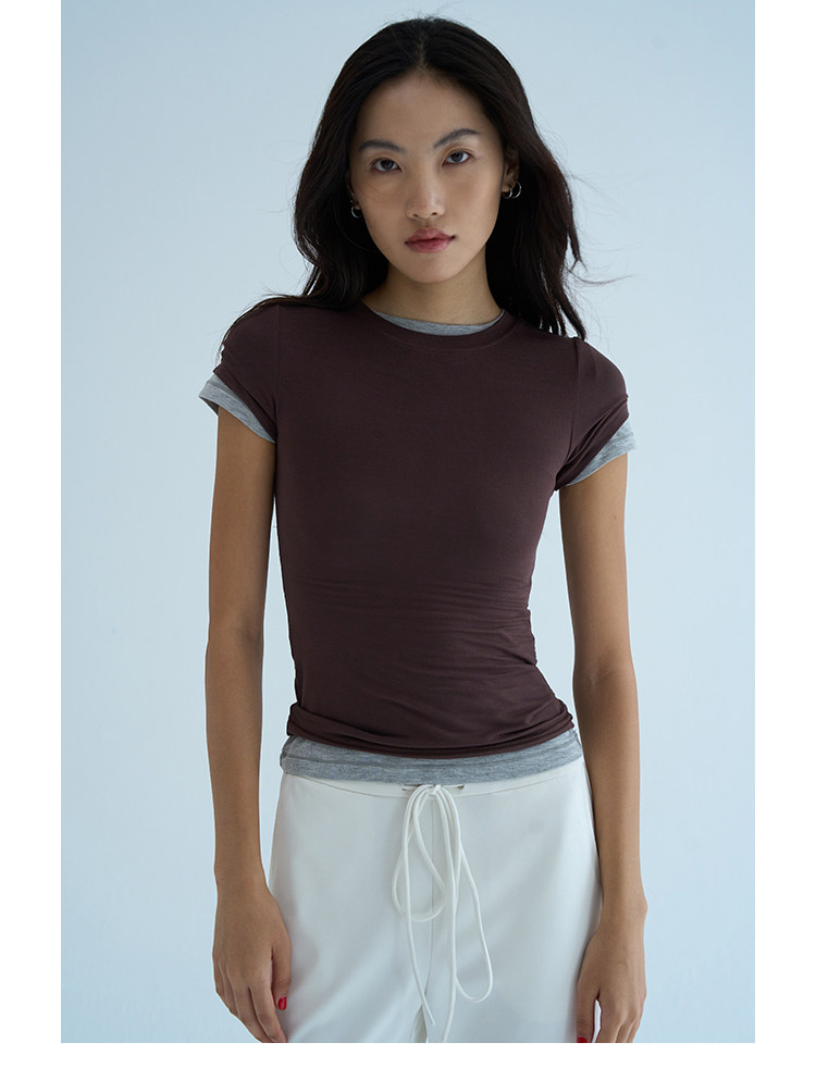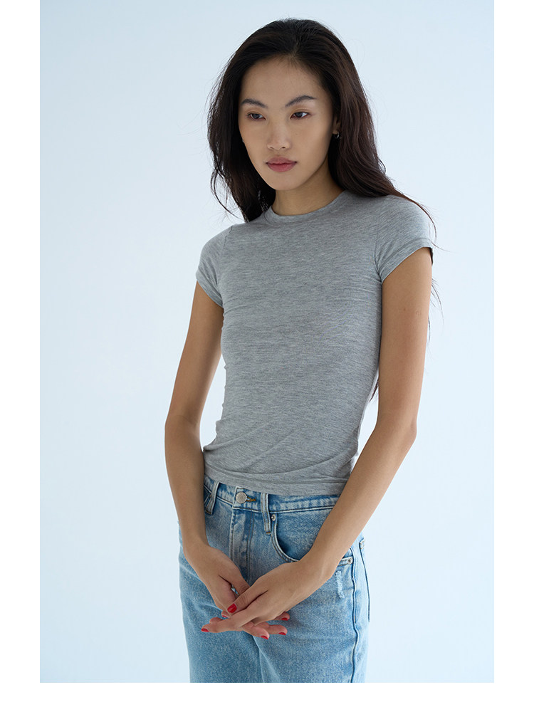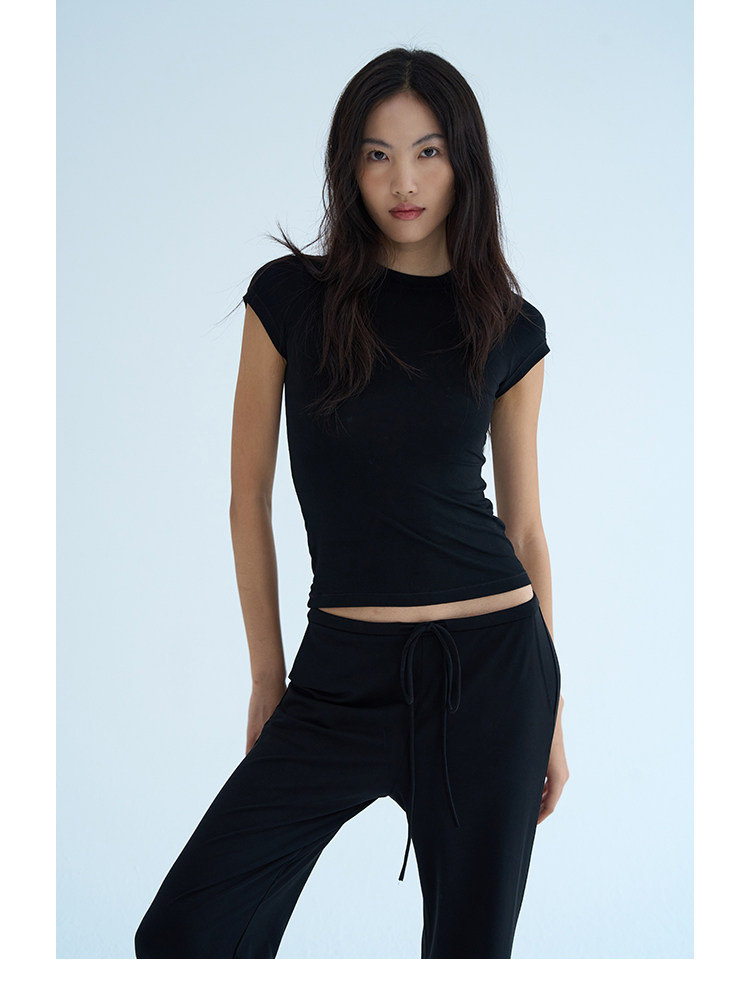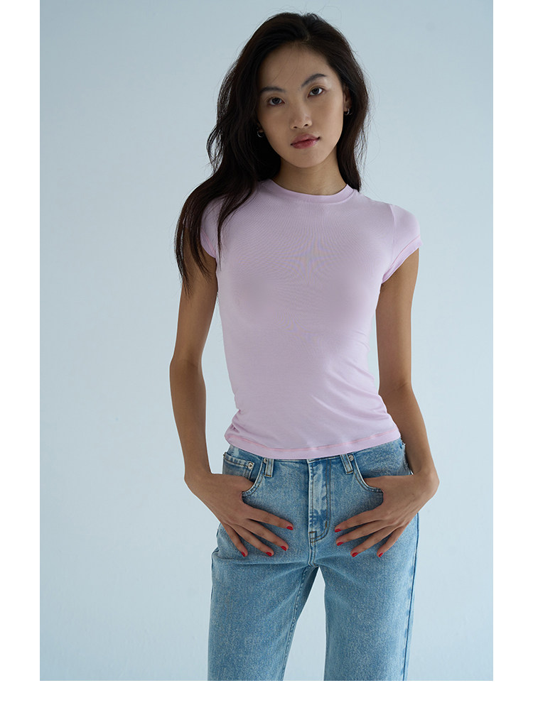 Aolol Mask T-Shirt Ski** Same Style Naked-Feel Modal Short-Sleeve T-Shirt for Women, Summer Slim-Fit High-Elastic Round-Neck Top