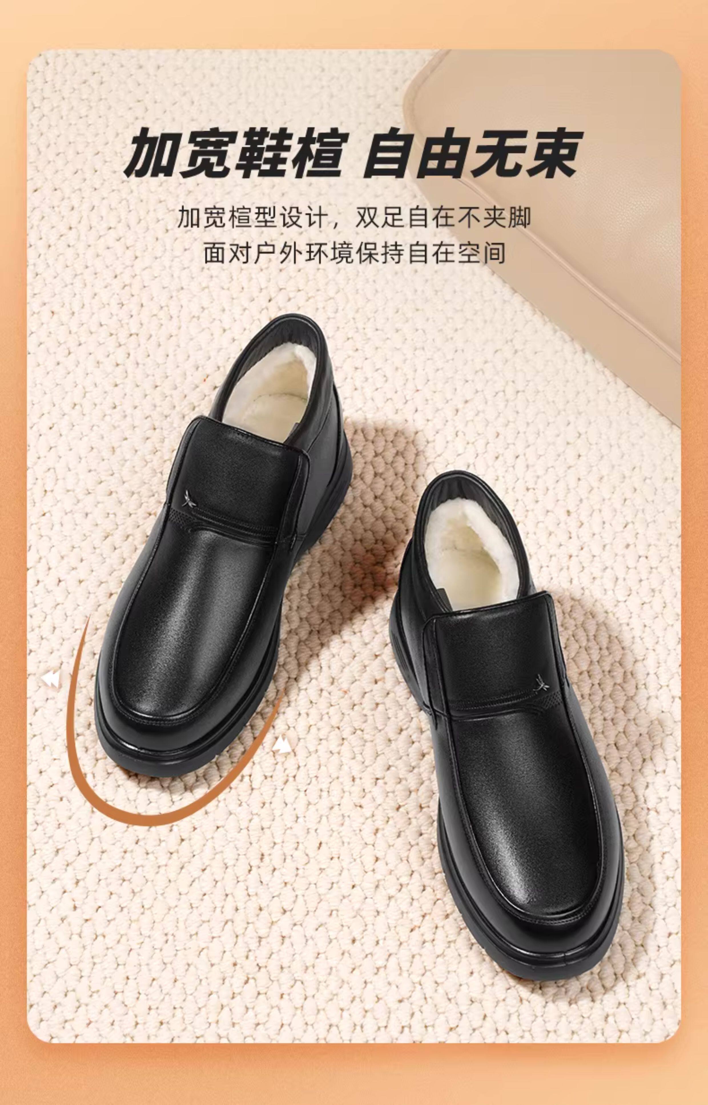 Red Dragonfly Men's Cotton Shoes Winter New Style Wool Casual Genuine Leather High-Top Fleece-Lined Leather Shoes Warm Middle-Aged Dad Shoes