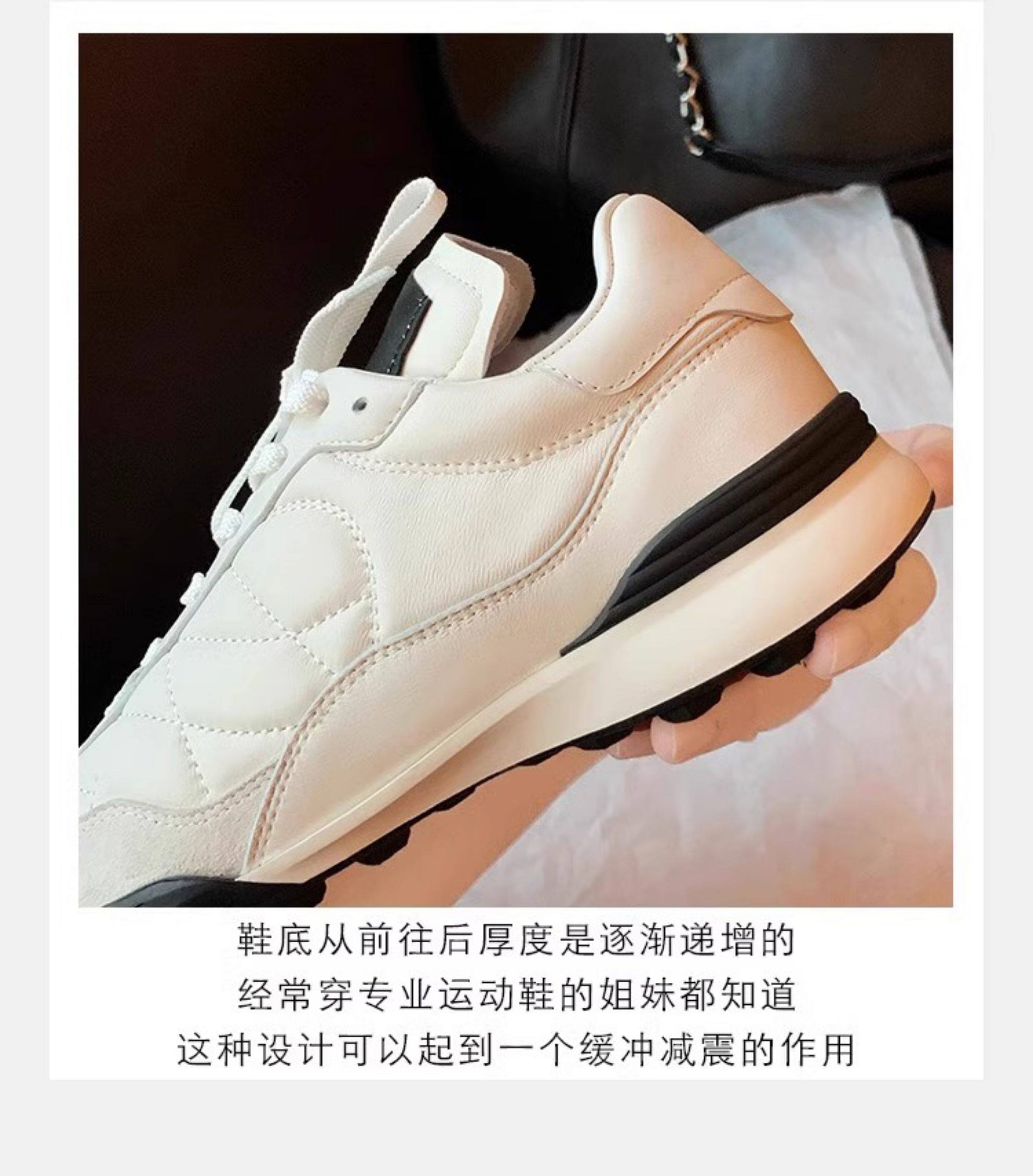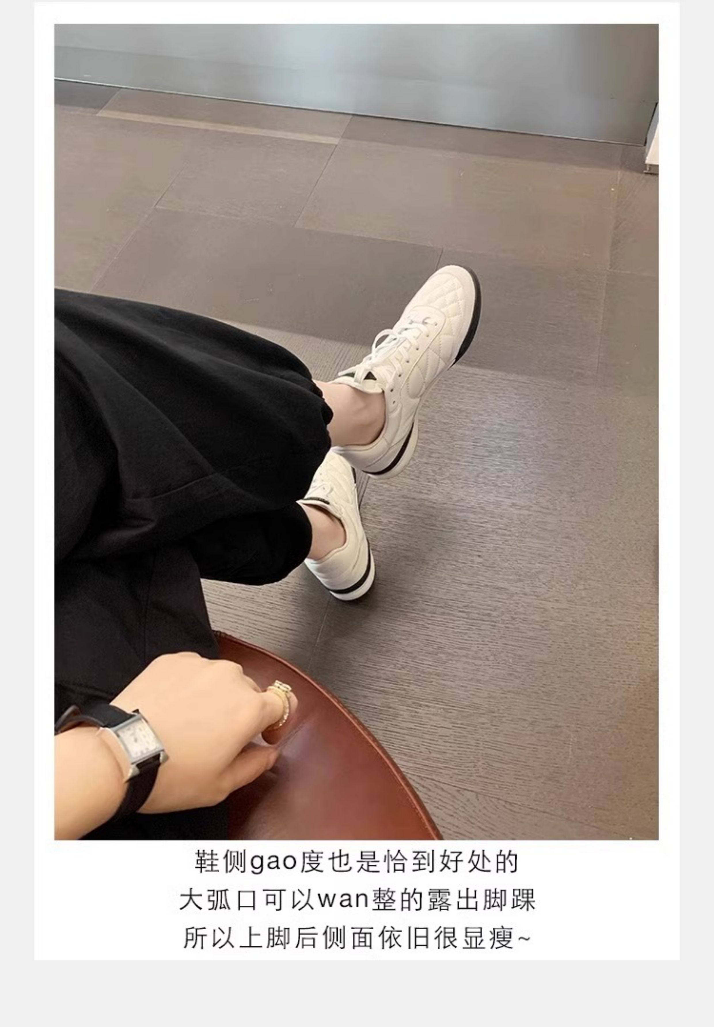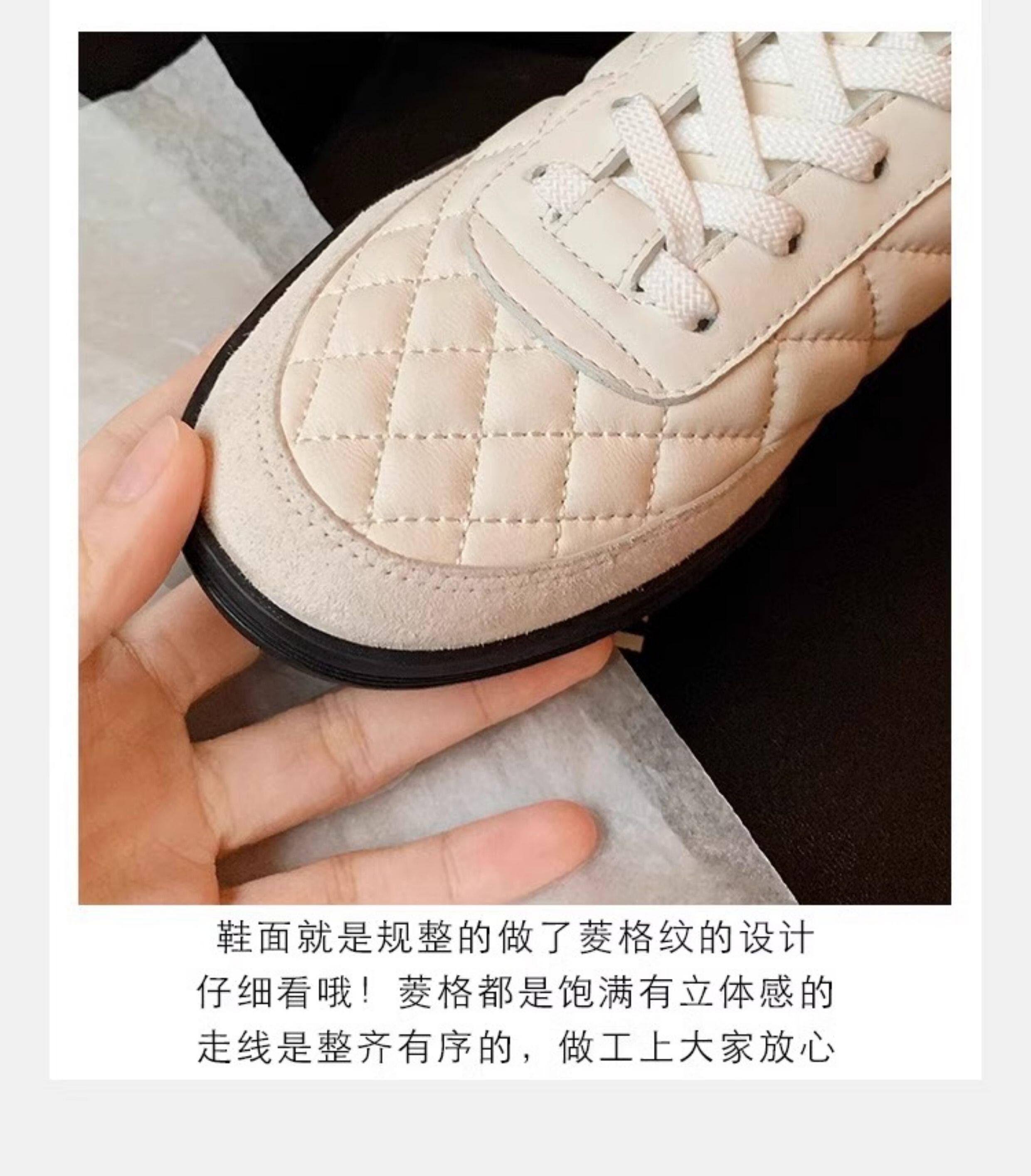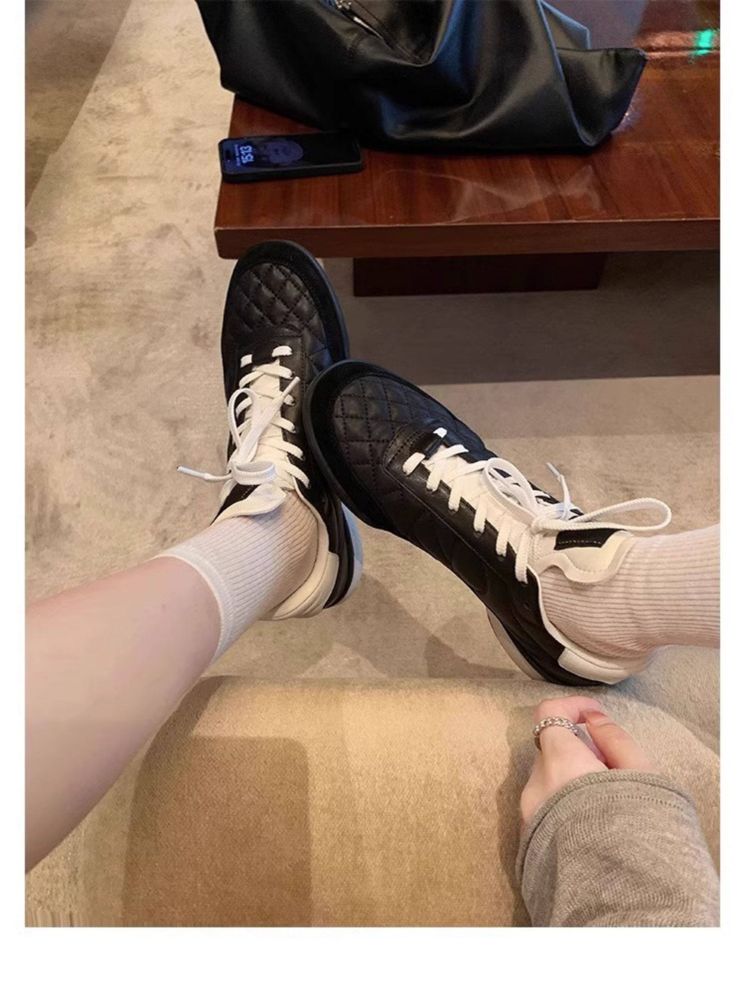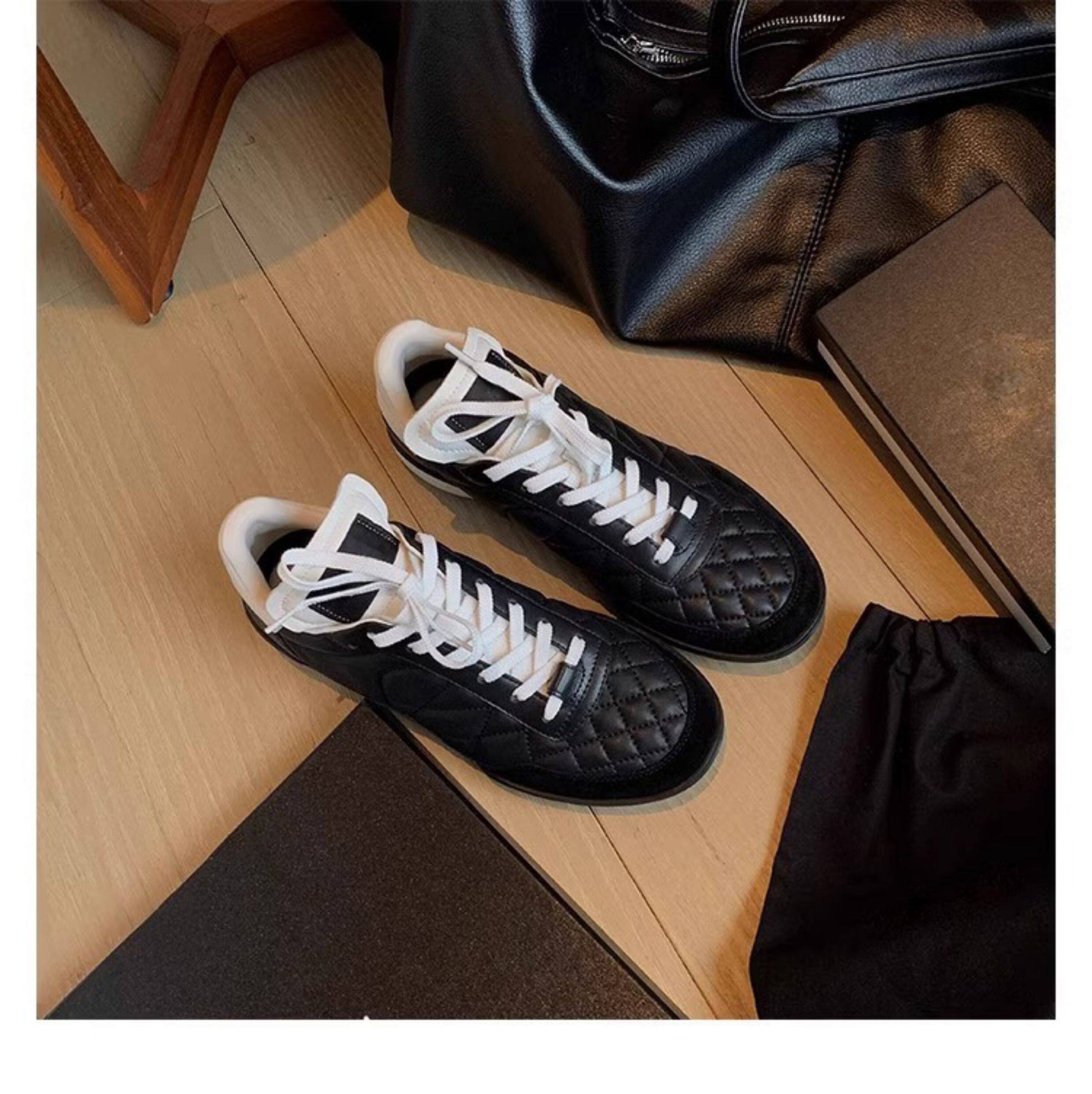 Hong Kong 2025 Chanel-Style Quilted Lace-Up Casual Sneakers for Women, Genuine Leather Thick-Soled Running Shoes, German Training Shoes, Spring