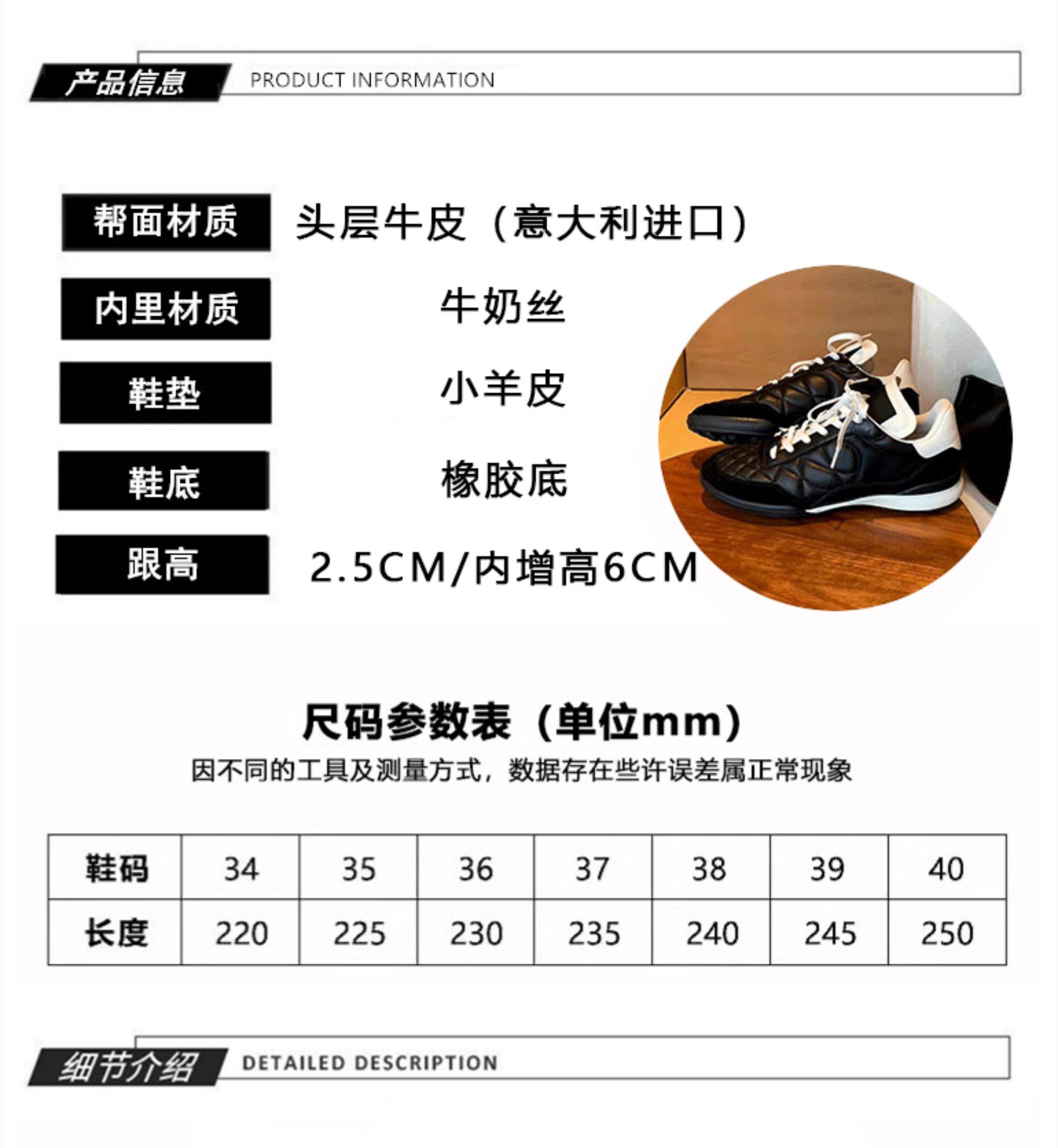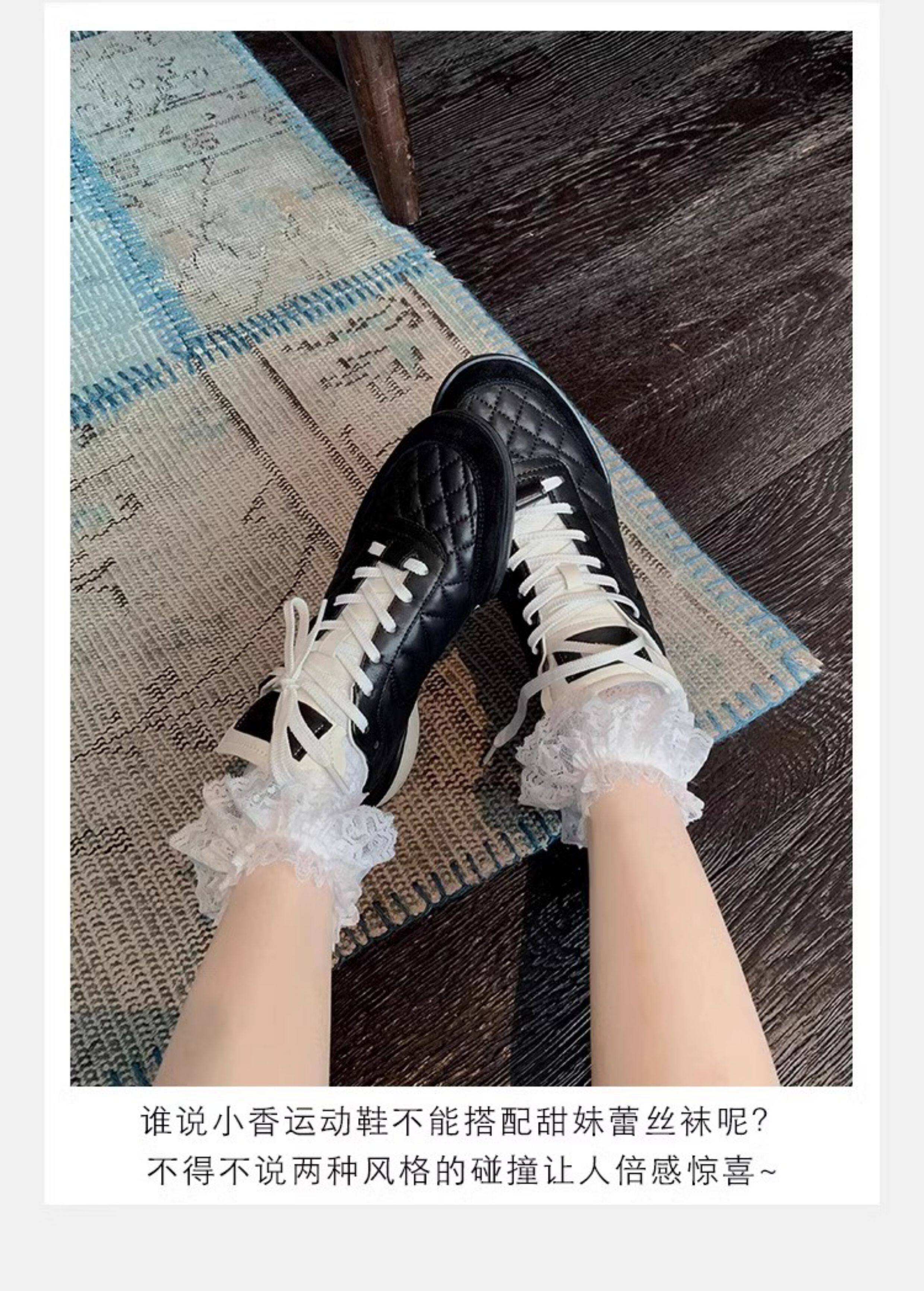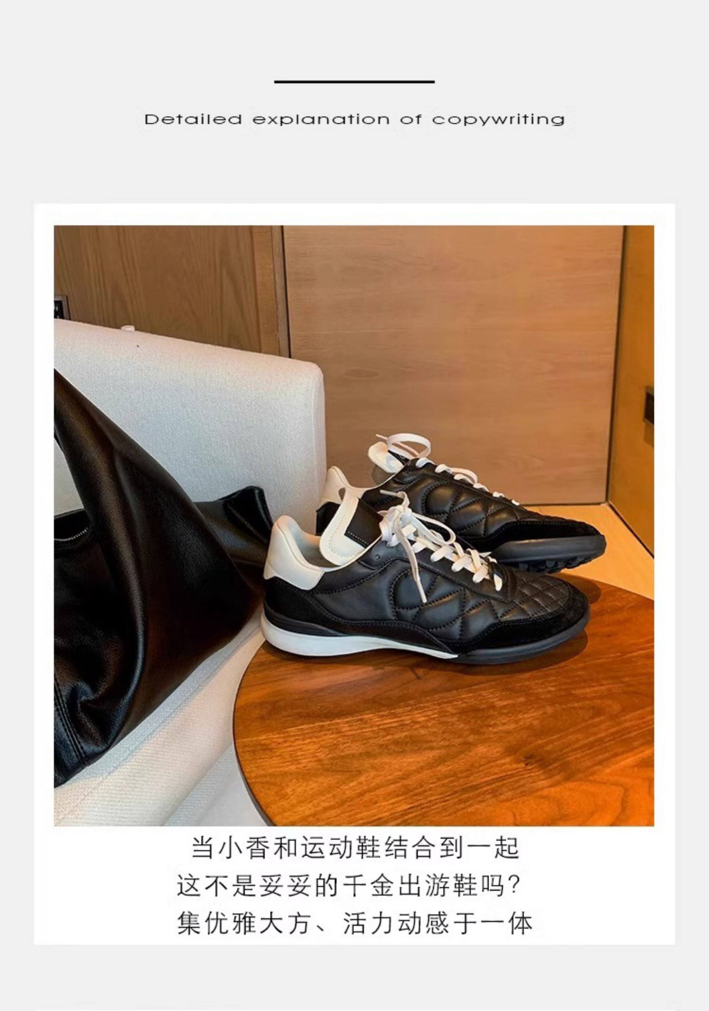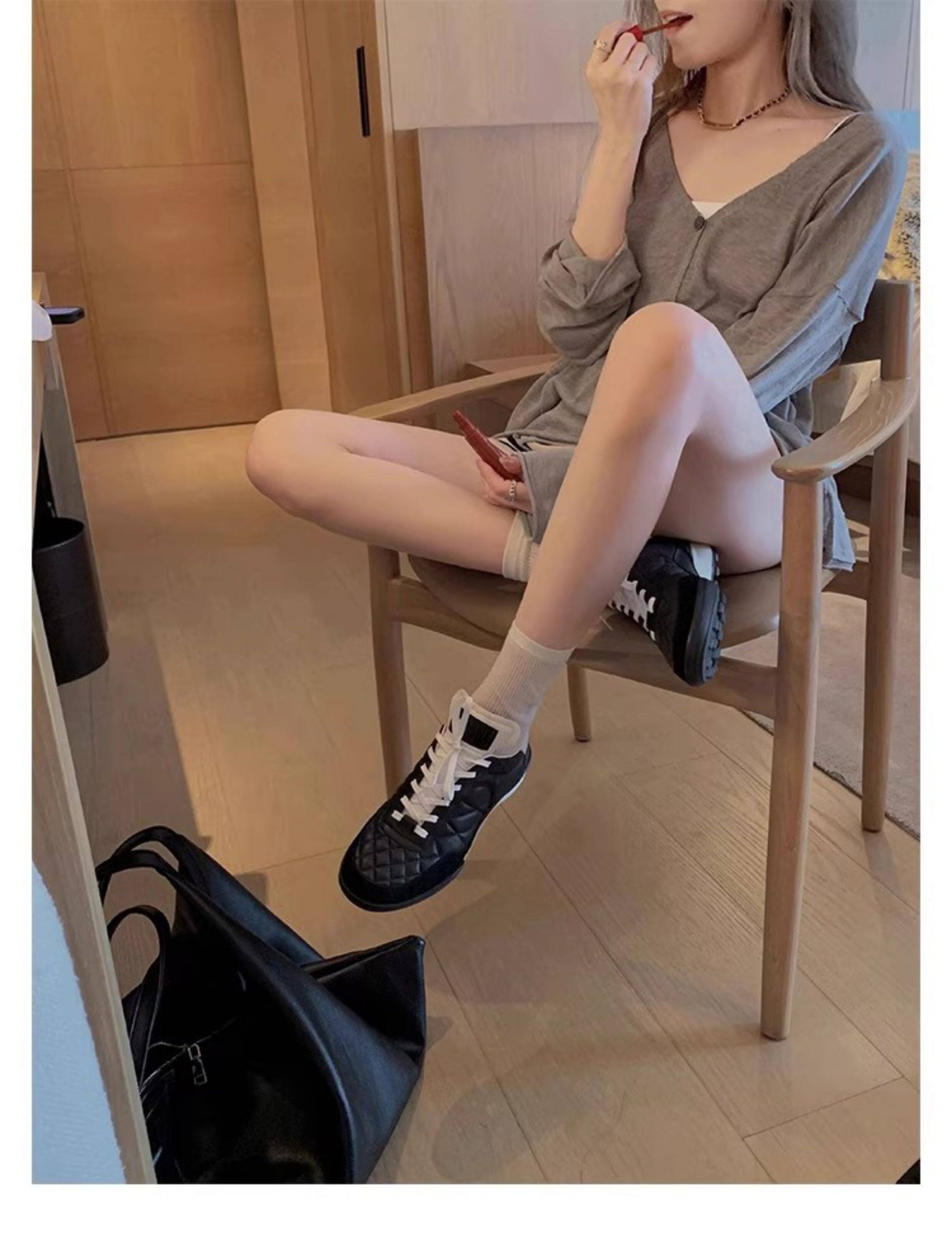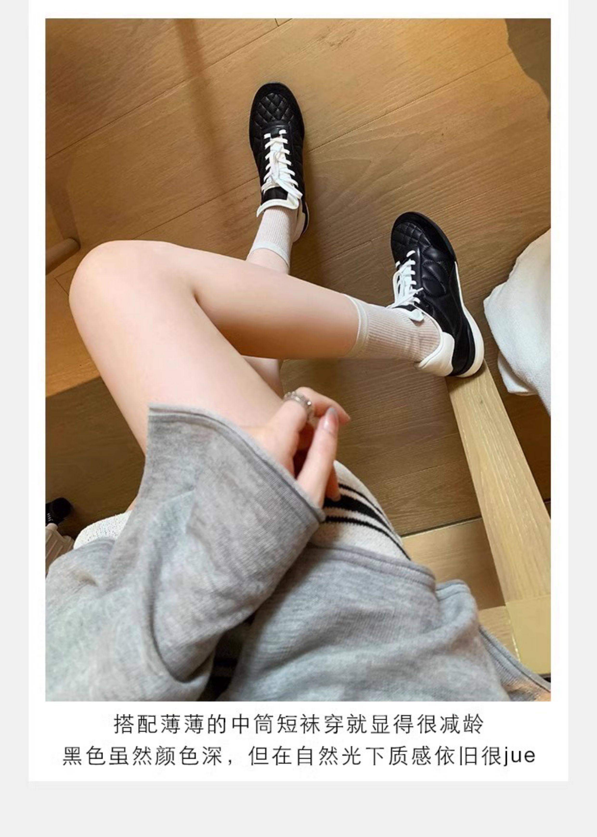 Hong Kong 2025 Chanel-Style Quilted Lace-Up Casual Sneakers for Women, Genuine Leather Thick-Soled Running Shoes, German Training Shoes, Spring