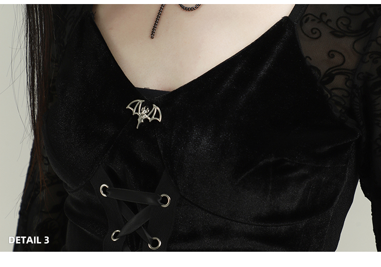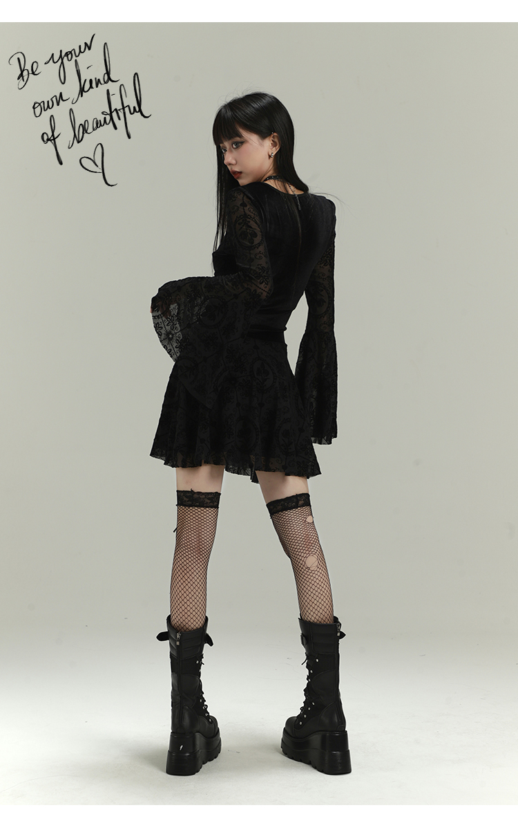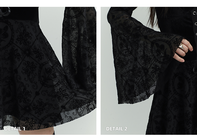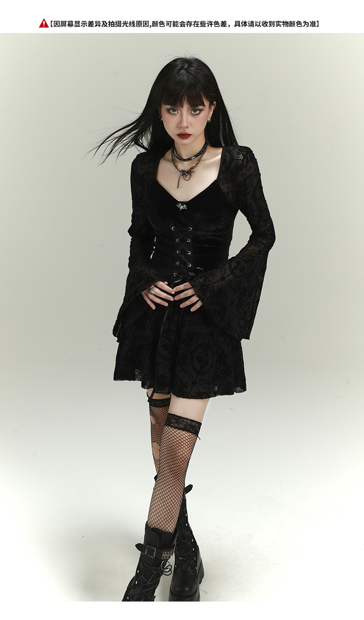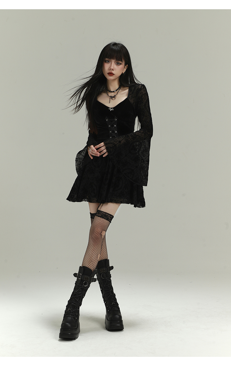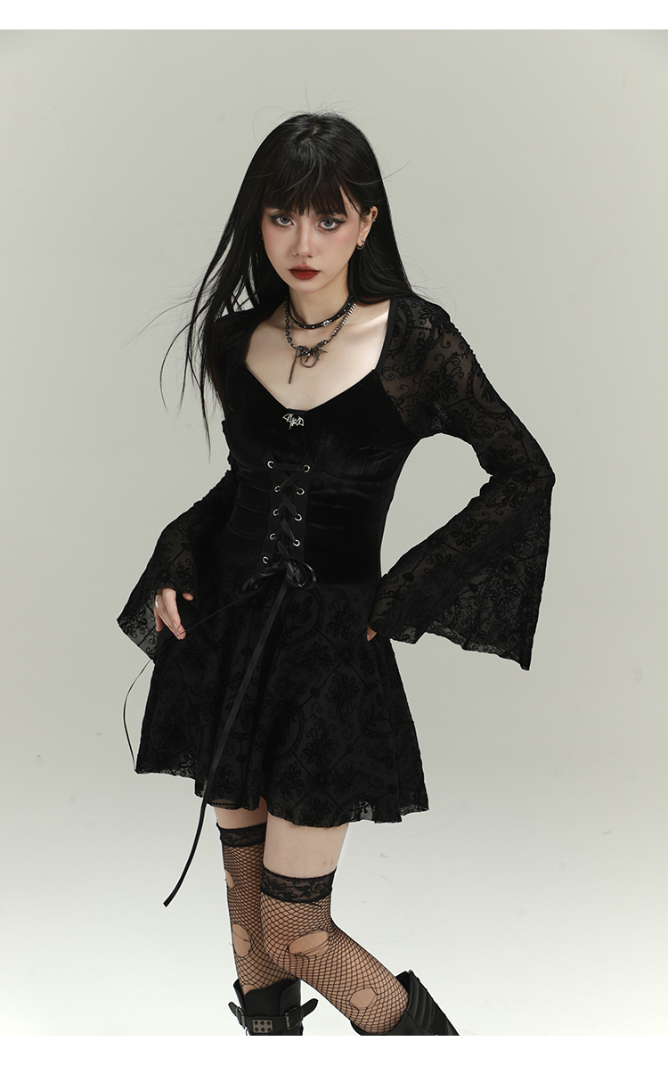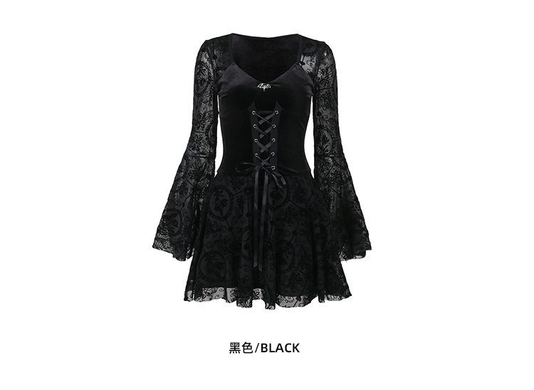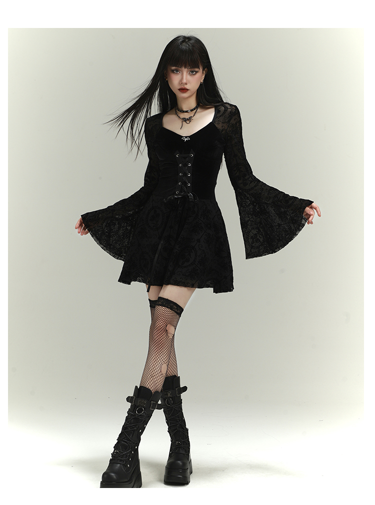 Ghost Girl Gothic Style Women's Black Bell-Sleeve Dress Subculture Halloween Outfit Cosplay Costume