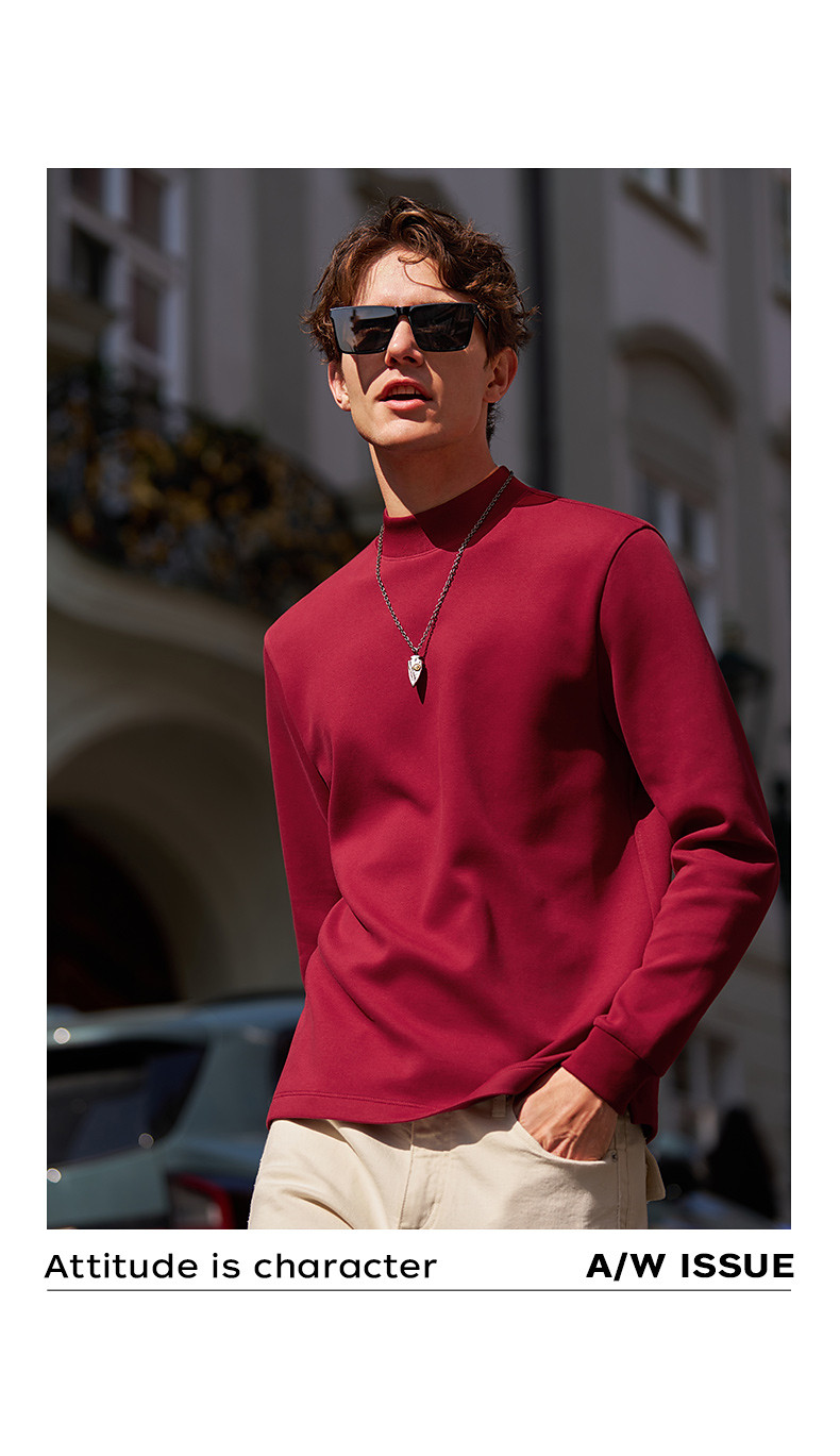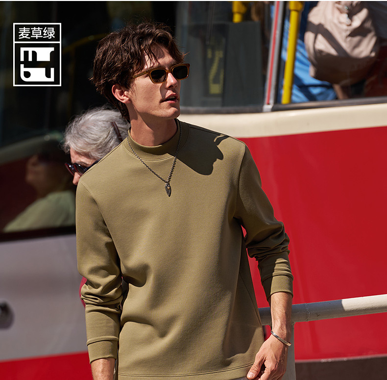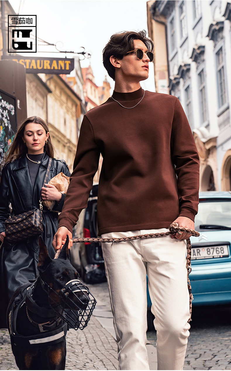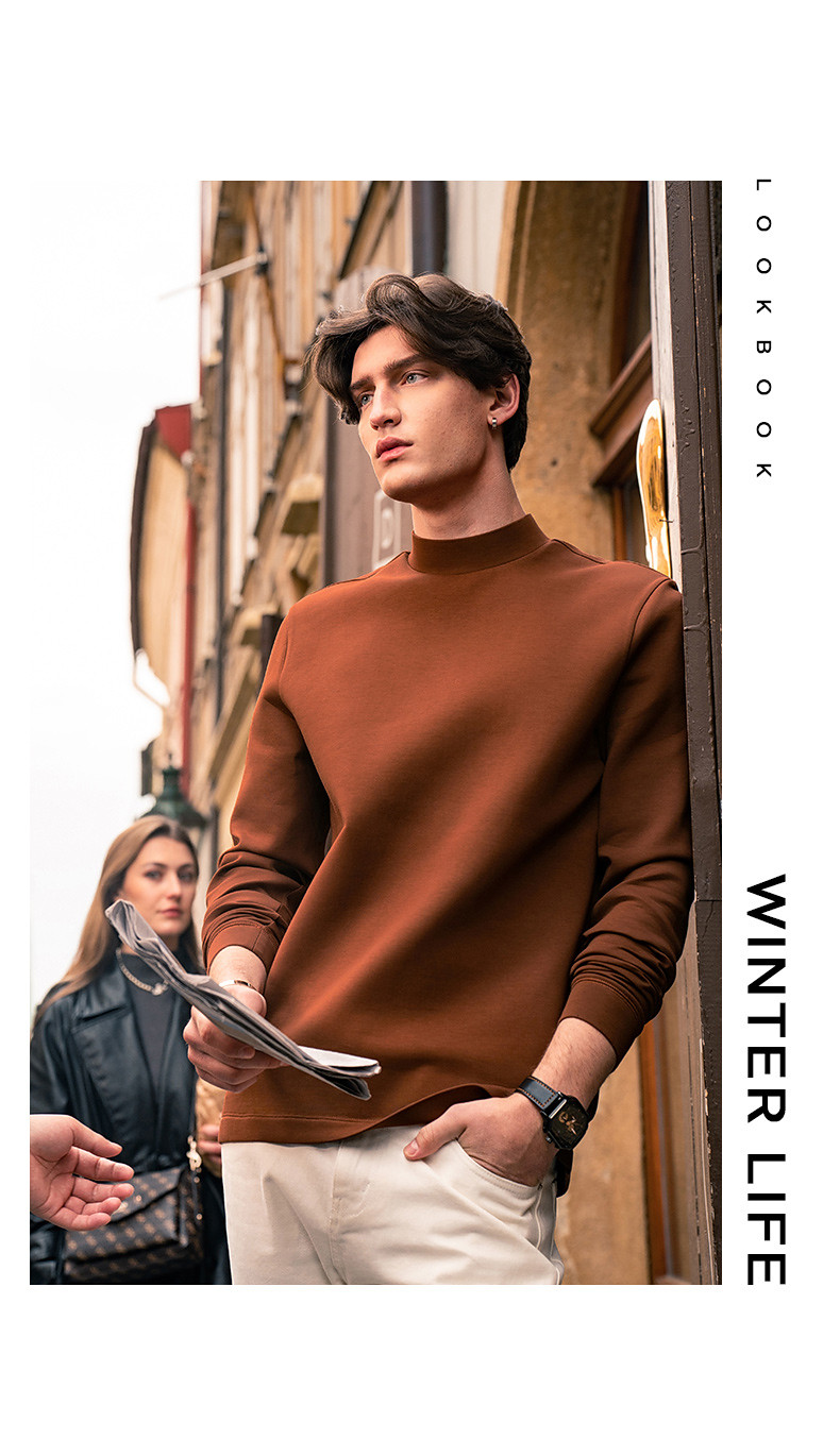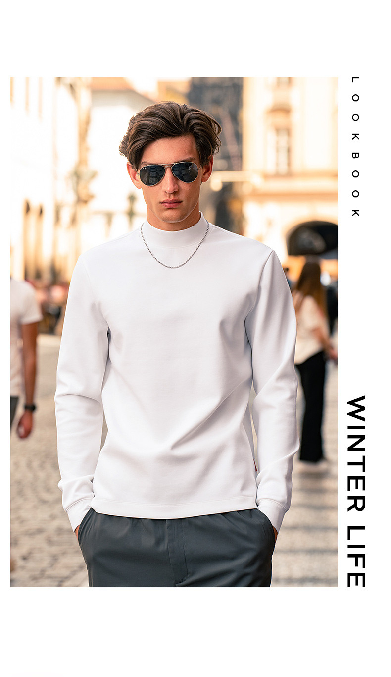 Tong Dawei's Same Style Mrbu Thickened Thermal Base Layer T-Shirt for Men with Small High Collar, Long Sleeves for Autumn and Winter Kt01878
