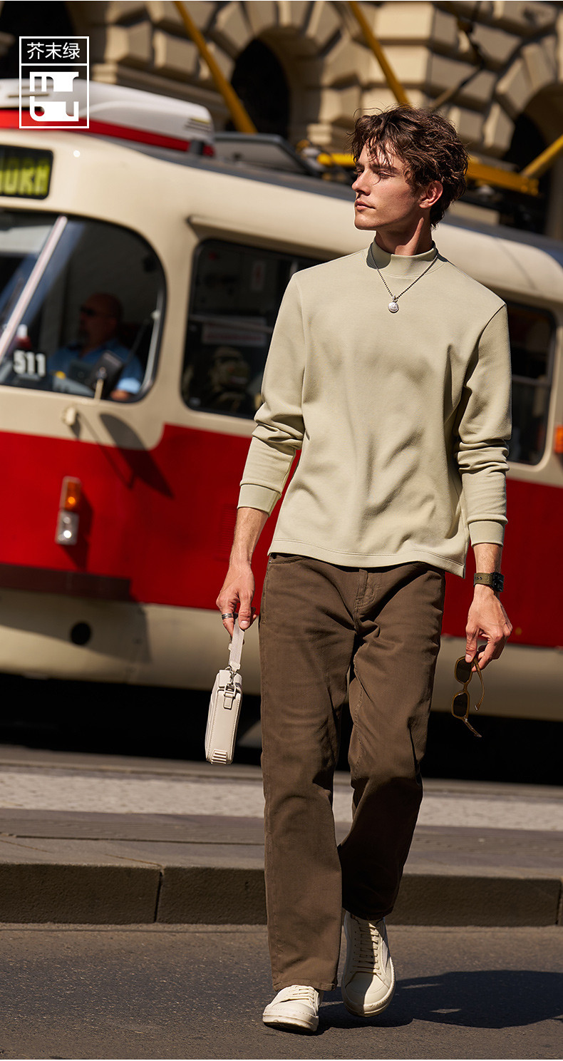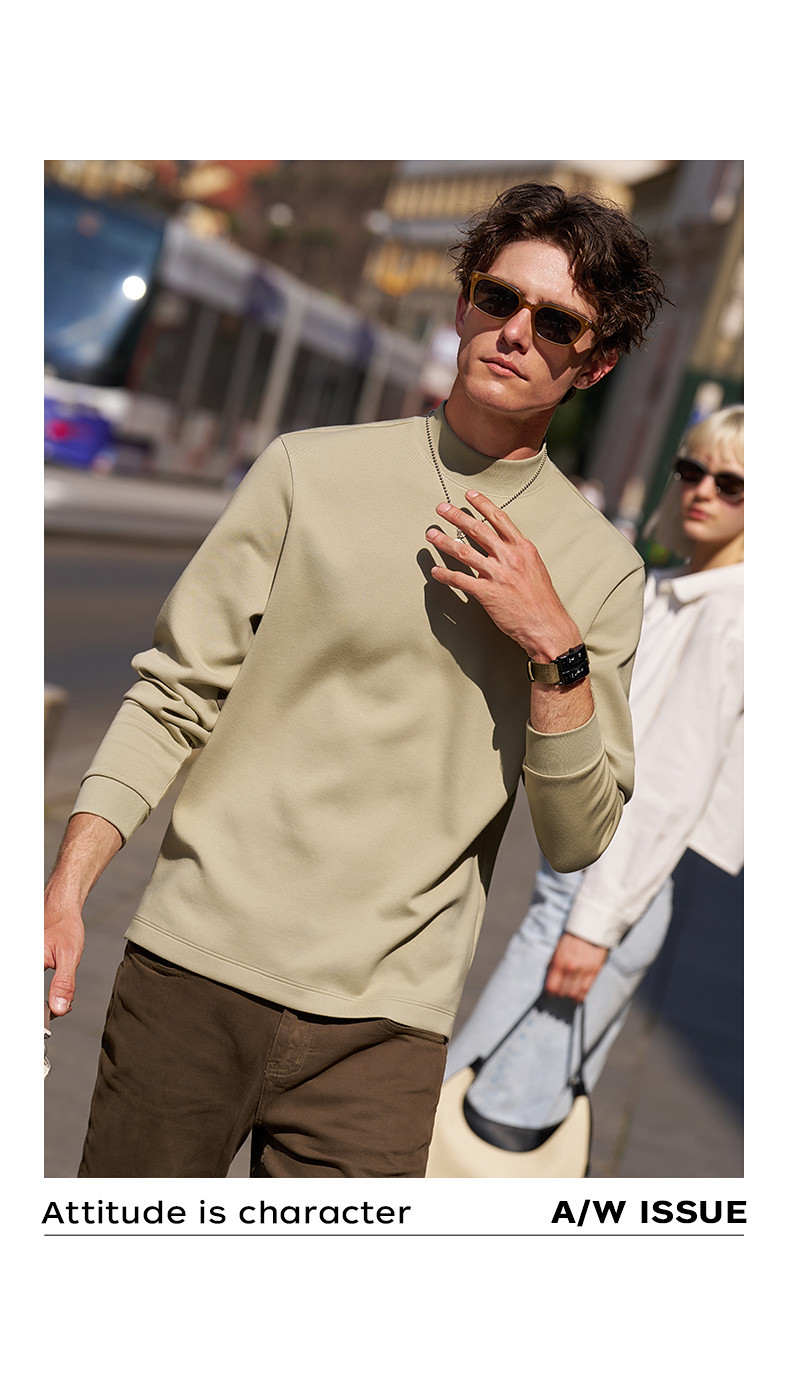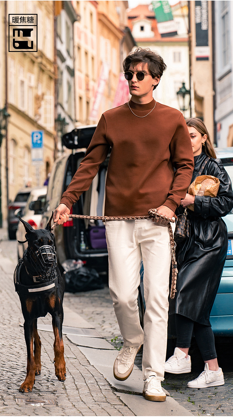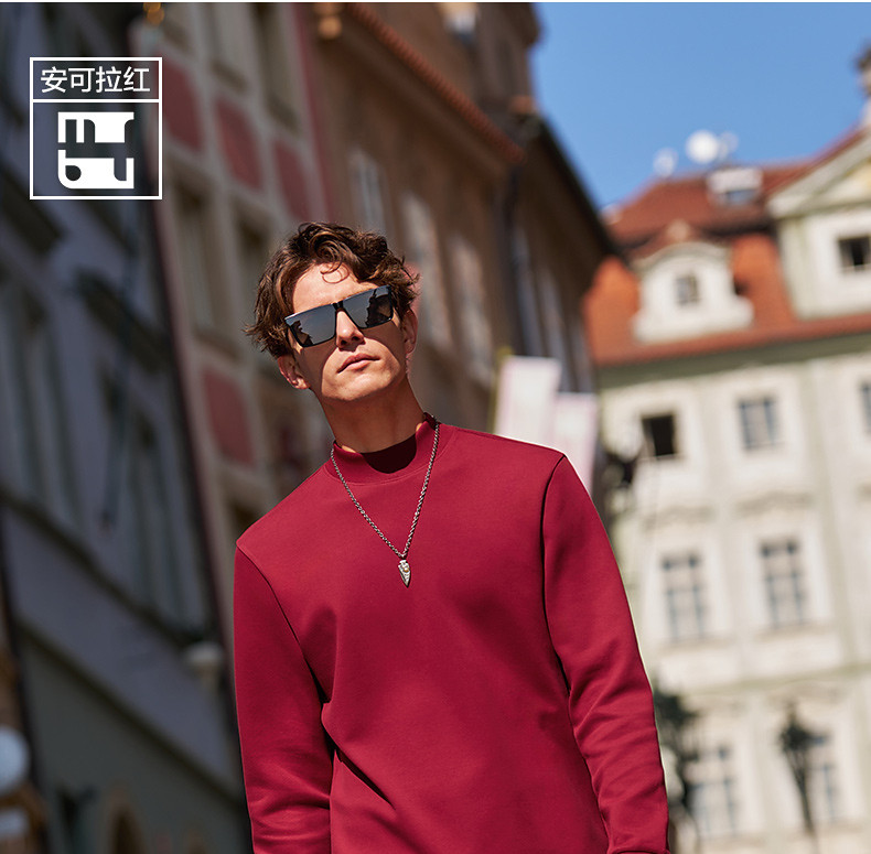 Tong Dawei's Same Style Mrbu Thickened Thermal Base Layer T-Shirt for Men with Small High Collar, Long Sleeves for Autumn and Winter Kt01878