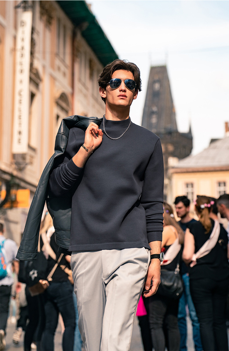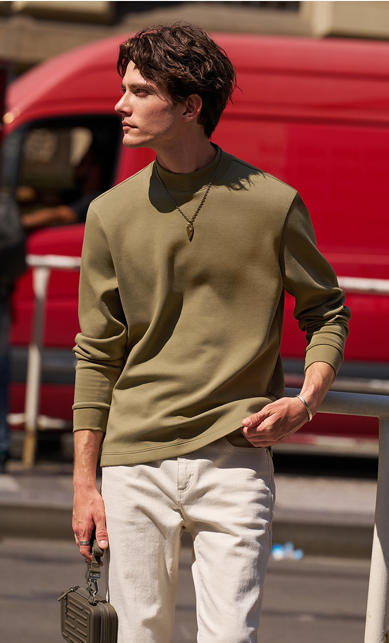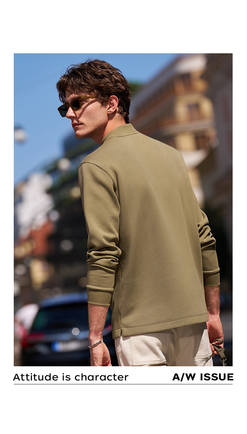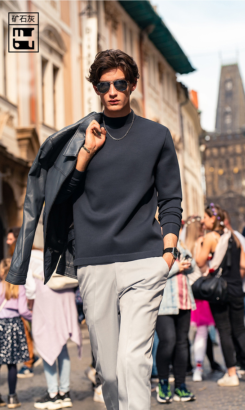 Tong Dawei's Same Style Mrbu Thickened Thermal Base Layer T-Shirt for Men with Small High Collar, Long Sleeves for Autumn and Winter Kt01878