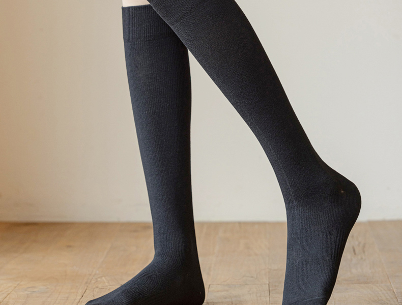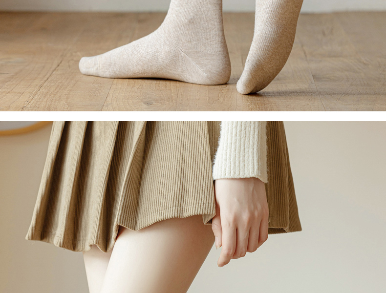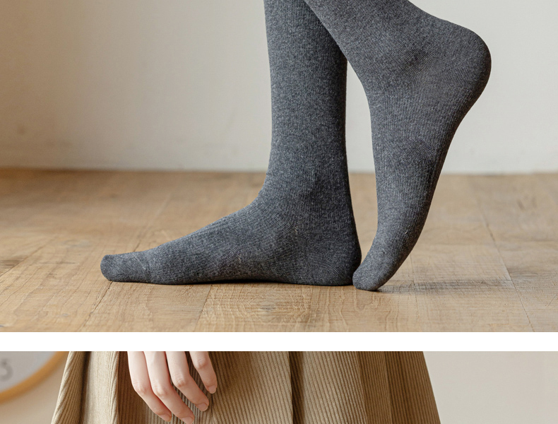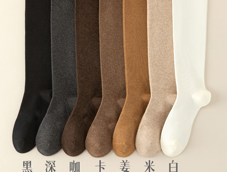 Women's Pure Cotton Calf Socks for Spring and Autumn, Compression Socks, Long Tube, All-Cotton, Autumn and Winter Style, High Tube, Coffee Color, Knee-High Socks, Half Tube