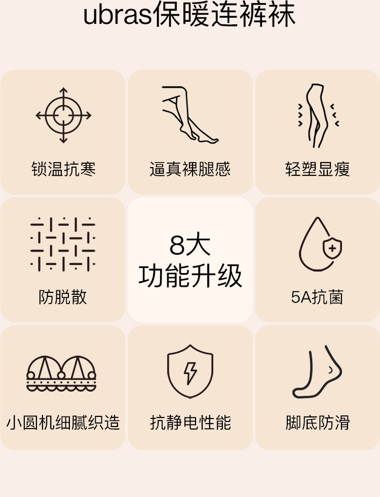 Ubras Bare-Leg Magic Tool | Autumn and Winter Thickened Fleece-Lined Warm Flesh-Colored Pantyhose, Anti-Snag Tights, Leggings.