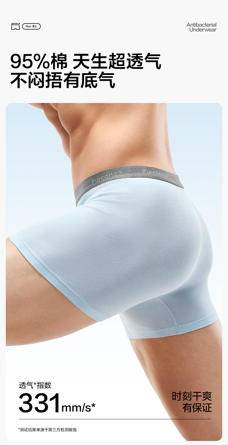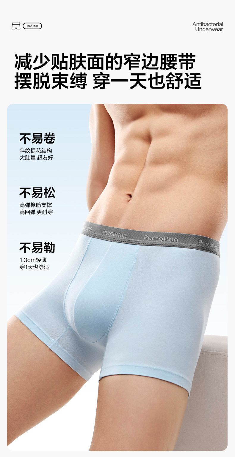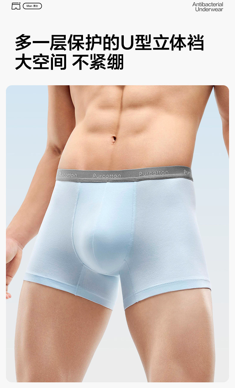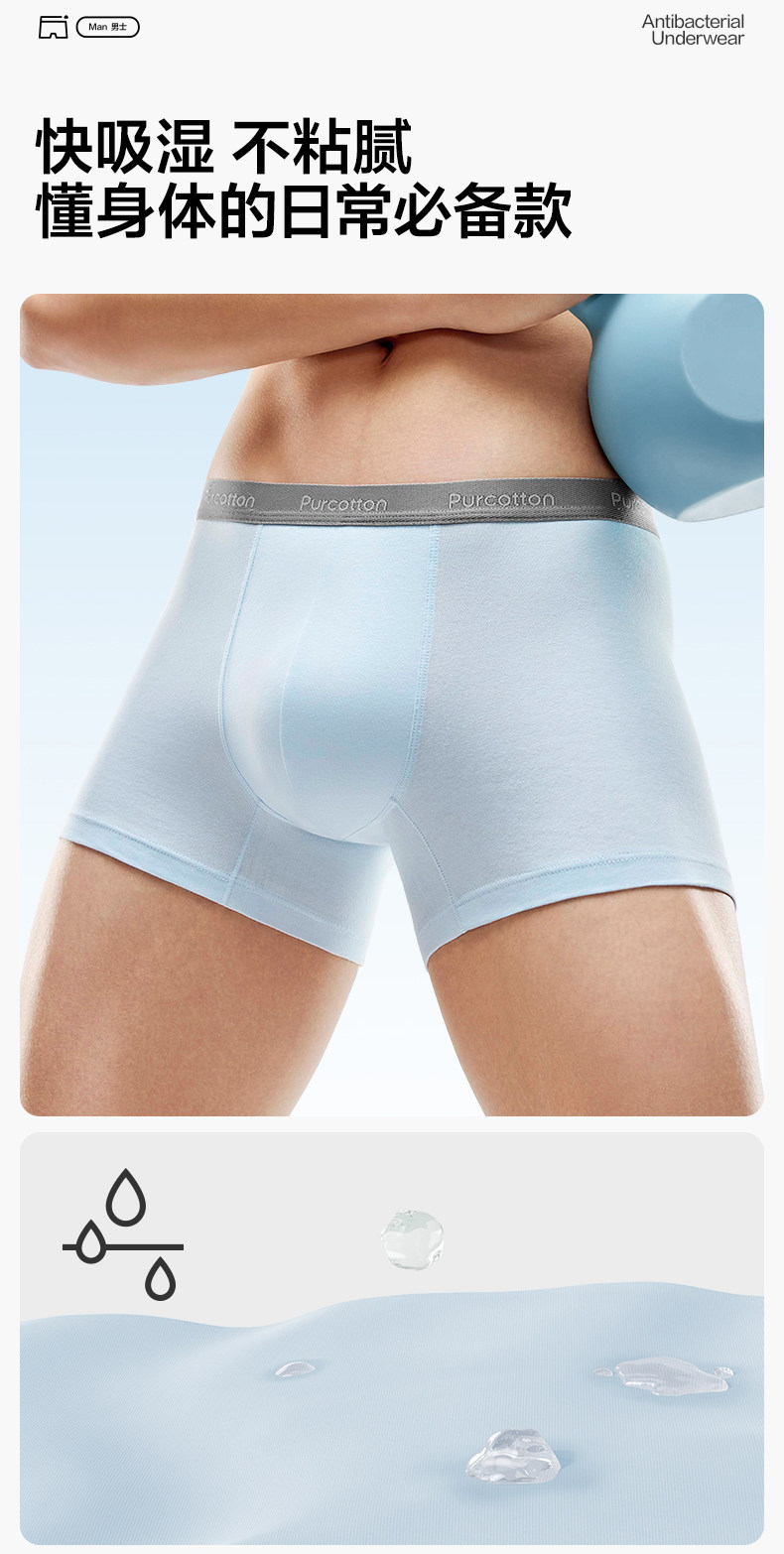 【Bai Bu】Pure Cotton Era Men's Underwear, Pure Cotton, Lightweight, Skin-Friendly, Breathable, Men's Boxer Briefs, 3 Pieces