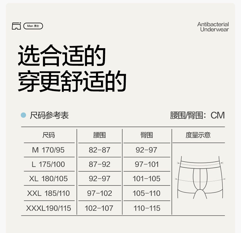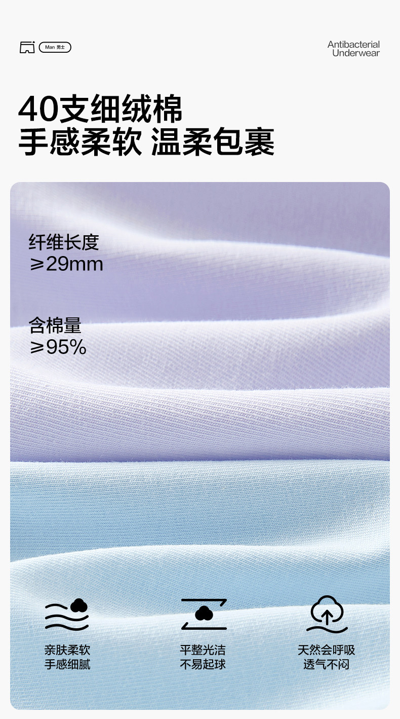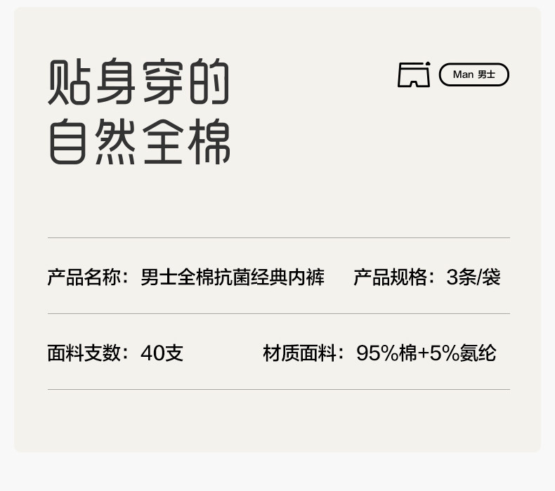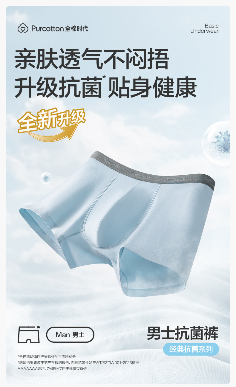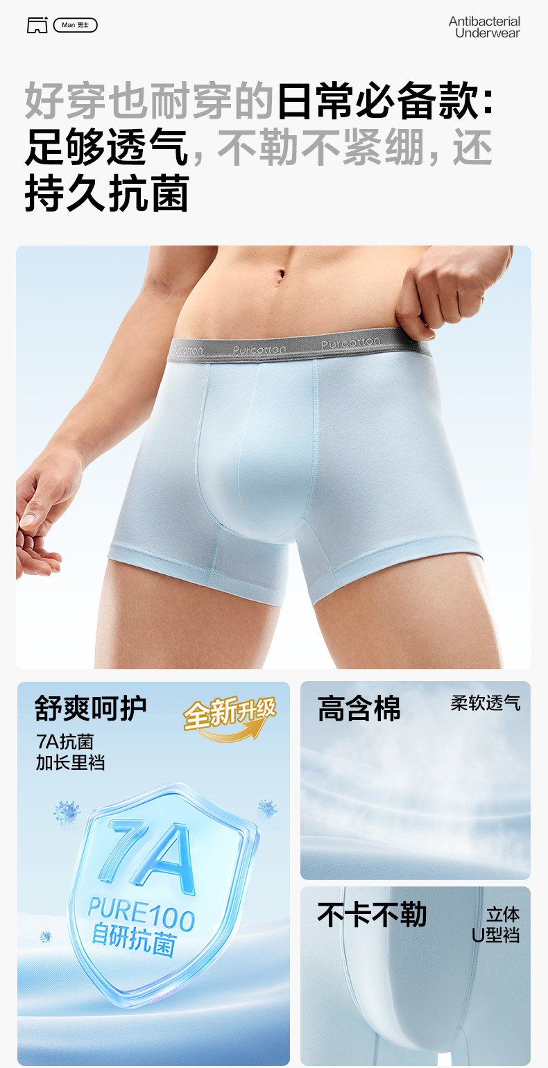 【Bai Bu】Pure Cotton Era Men's Underwear, Pure Cotton, Lightweight, Skin-Friendly, Breathable, Men's Boxer Briefs, 3 Pieces