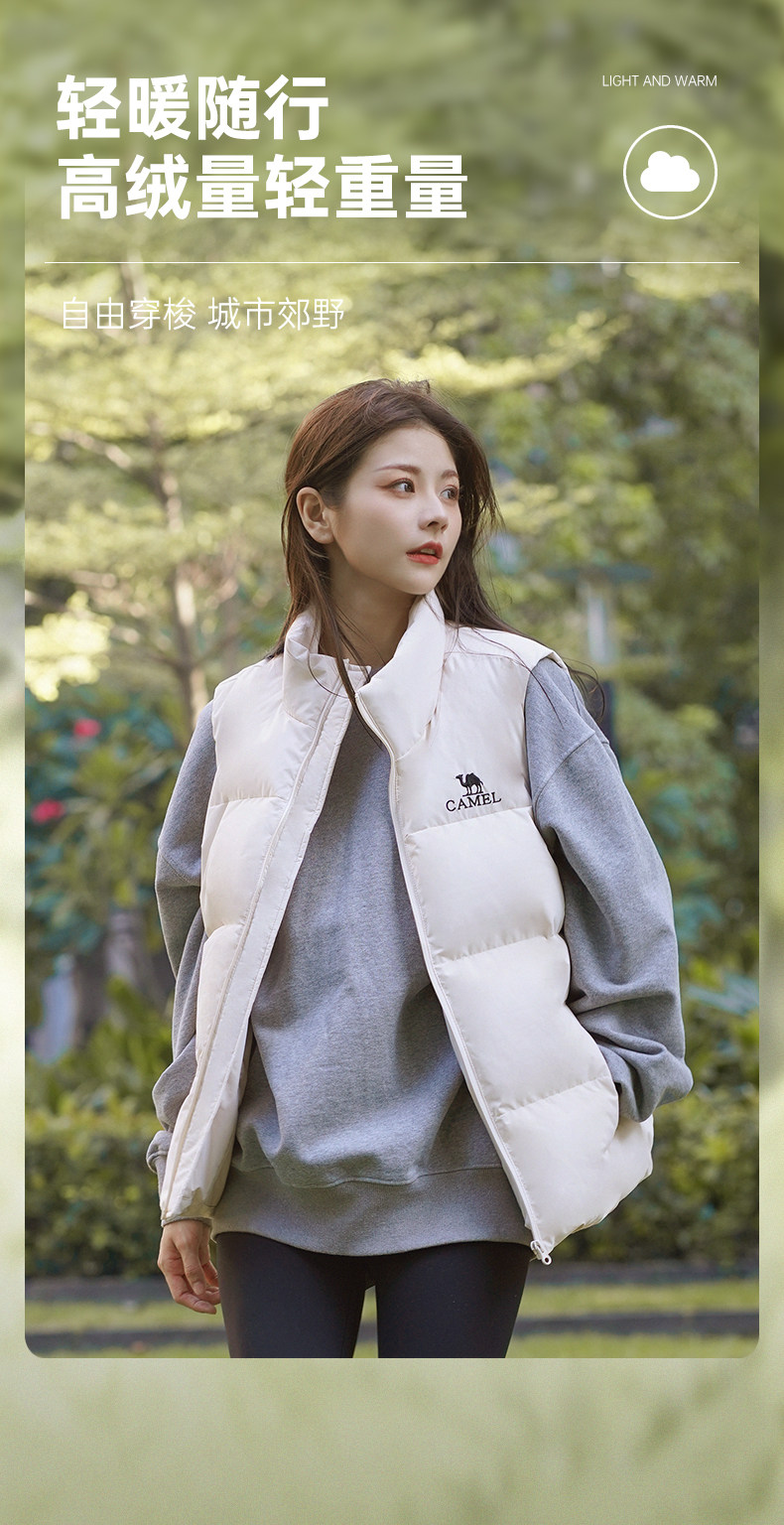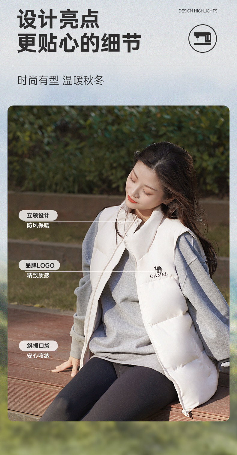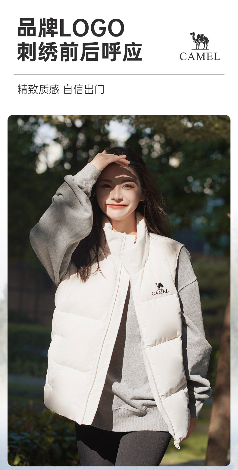 Camel down Vest Women's 2025 Autumn/Winter Warm White Short down Liner Vest Casual Jacket