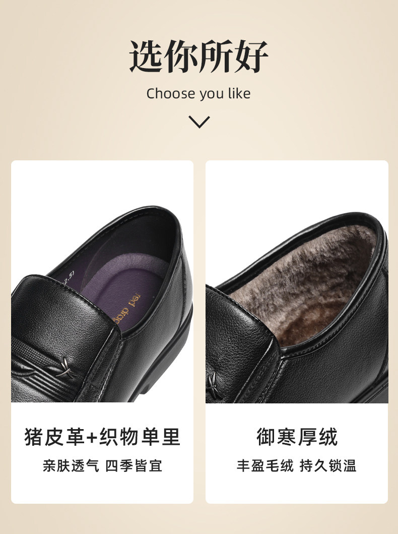 Red Dragonfly Men's Shoes Winter New Business Casual Leather Shoes Men's Genuine Leather Cotton Shoes Soft Sole Comfortable Middle-Aged Dad Shoes