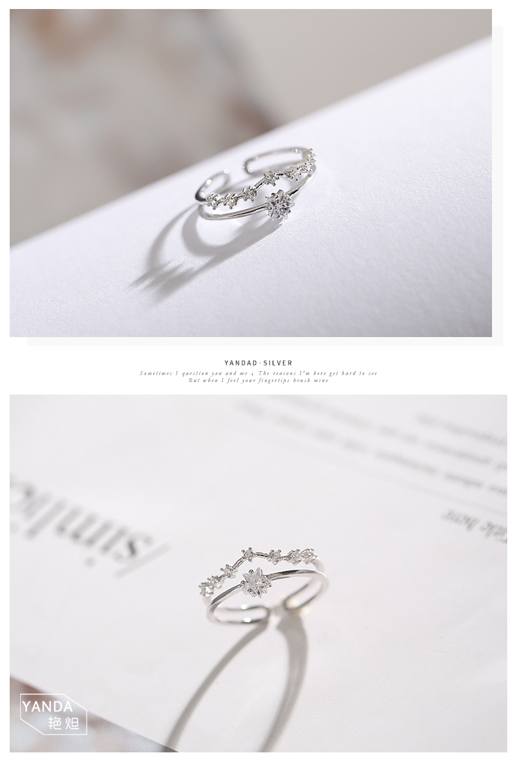 Yandai 925 Sterling Silver Double-Layer Star Ring 2025 New Popular Niche Design Open-Ended Index Finger Ring
