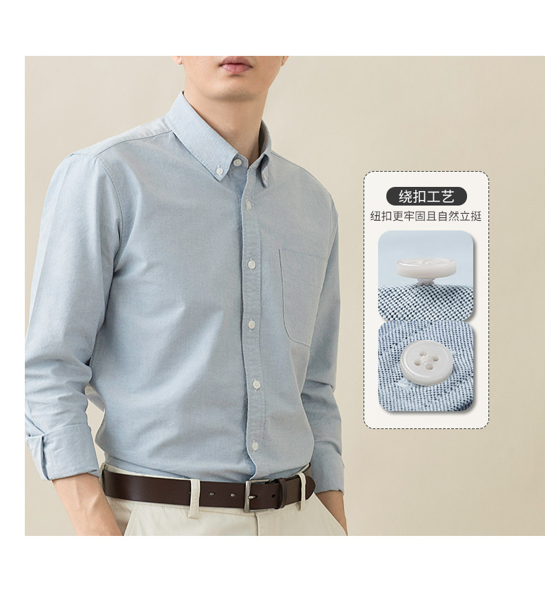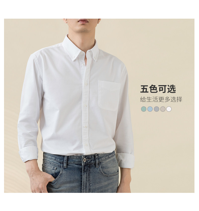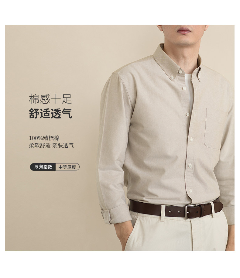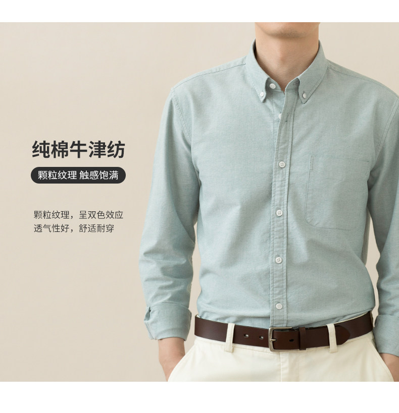 2025 Autumn New Pure Cotton Oxford Long-Sleeve Shirt Men's Casual Business Basic Youth Shirt