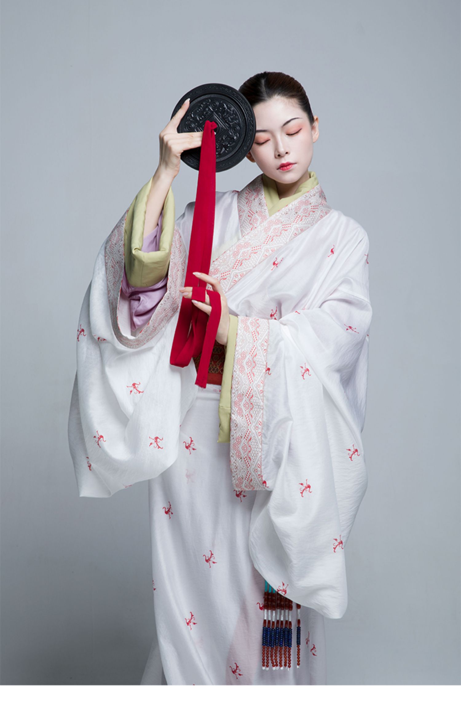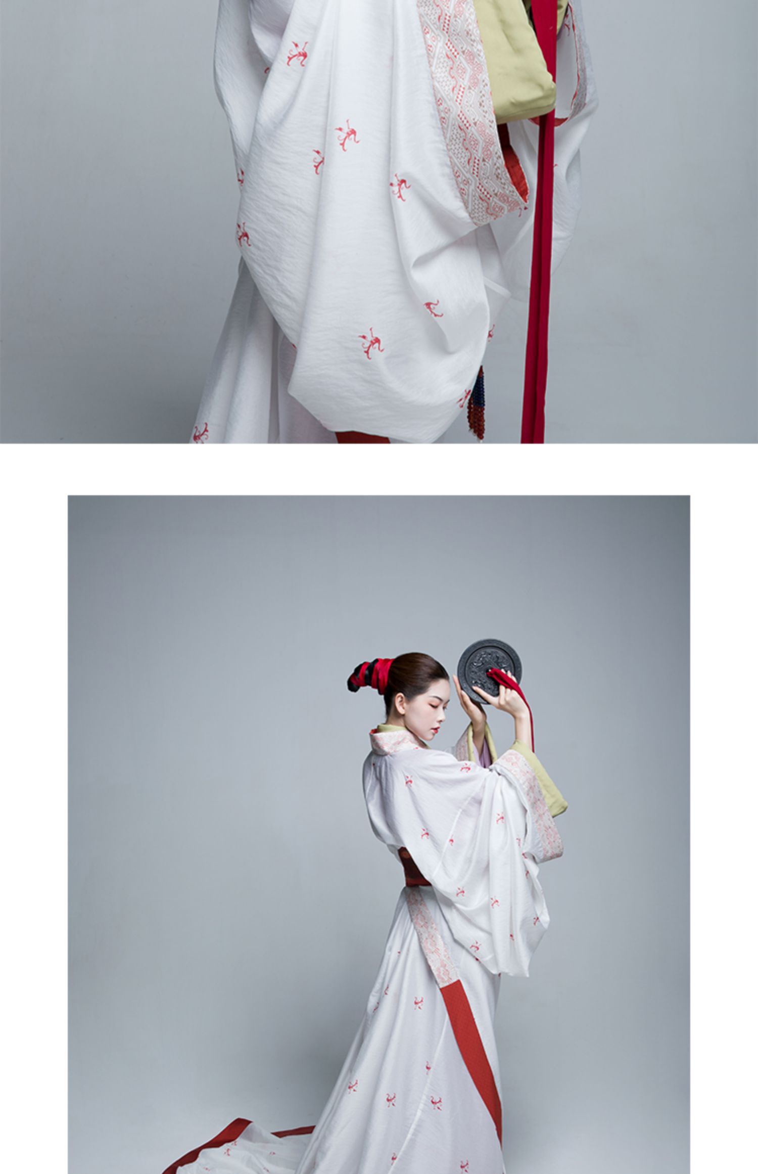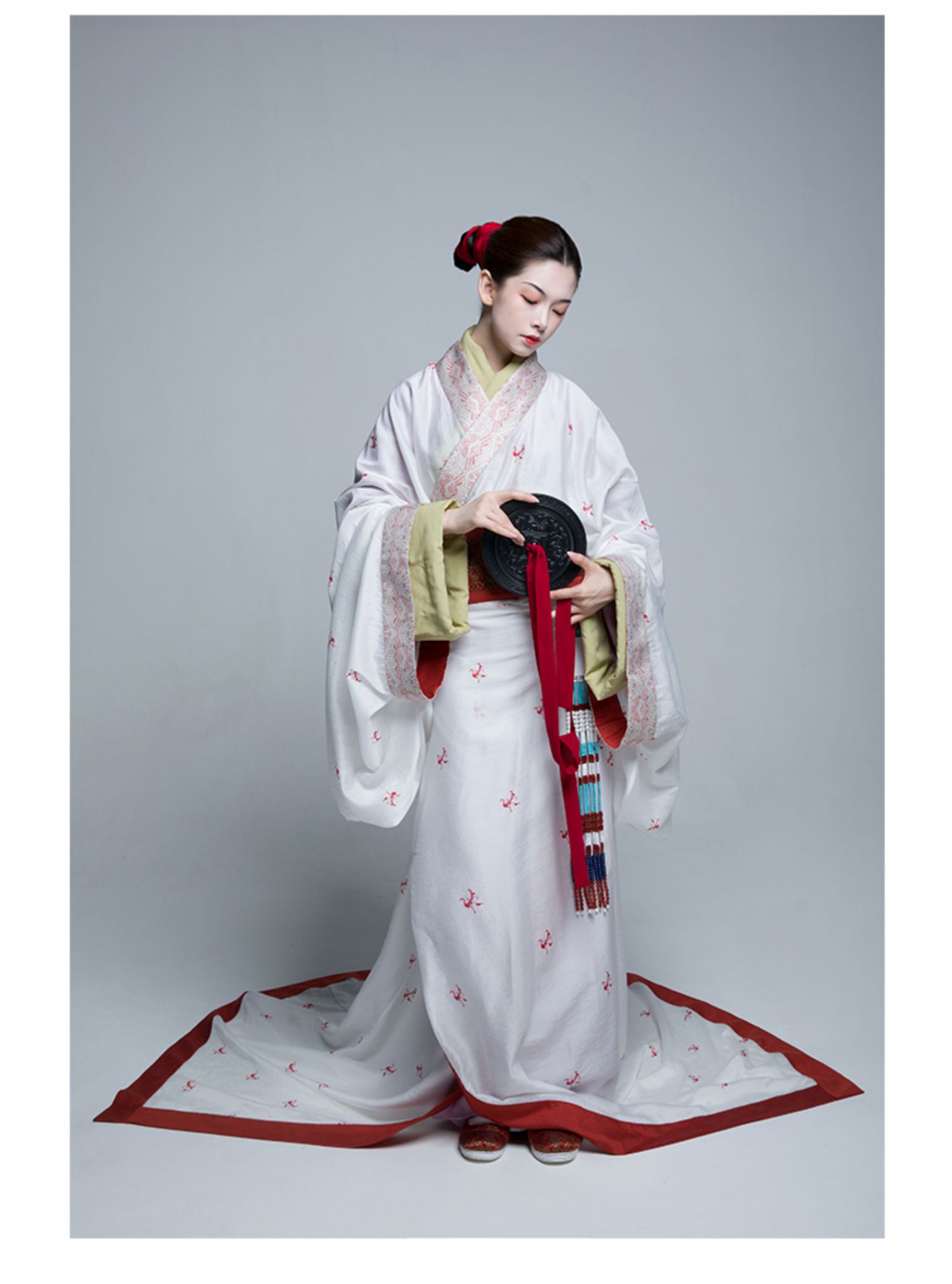 【Elegant】Spring and Autumn Period, Warring States Period, Pre-Qin Dynasty, Ma Shan Chu Tomb, White Printed Goddess Restoration Straight Skirt Hanfu for Women——Fragrant