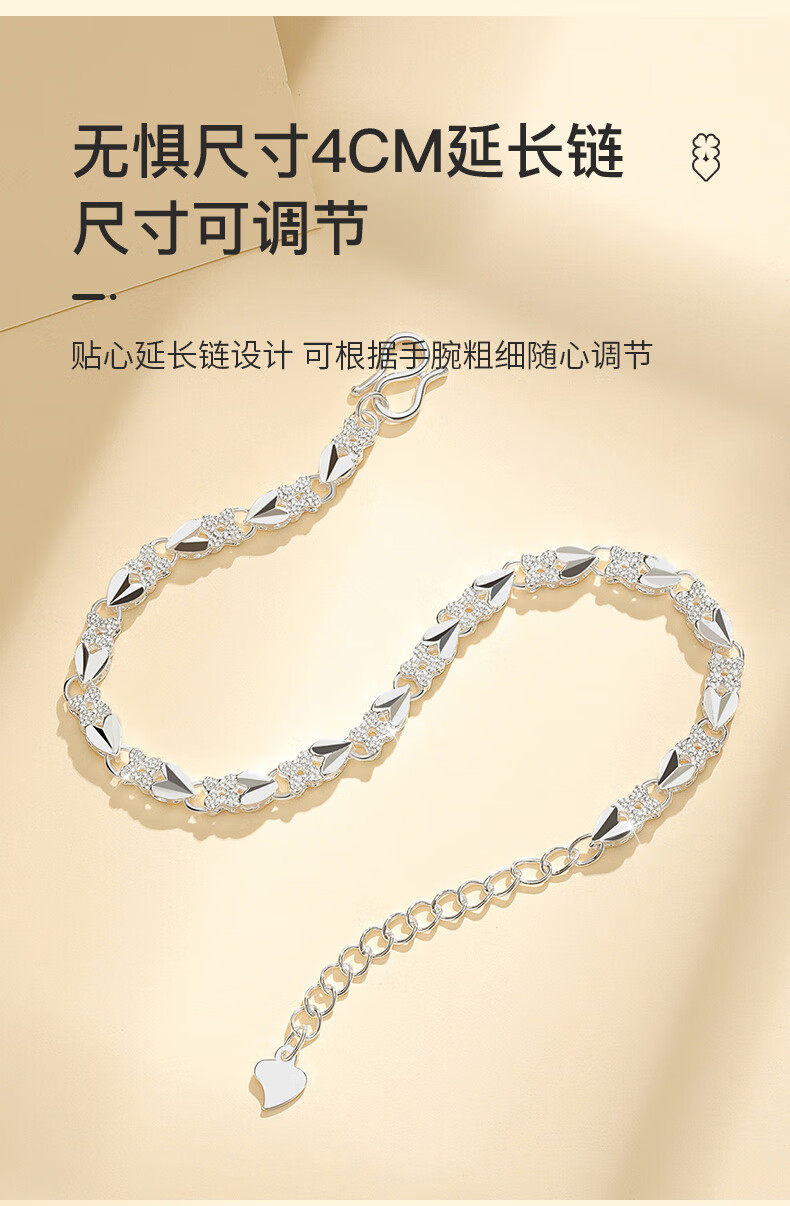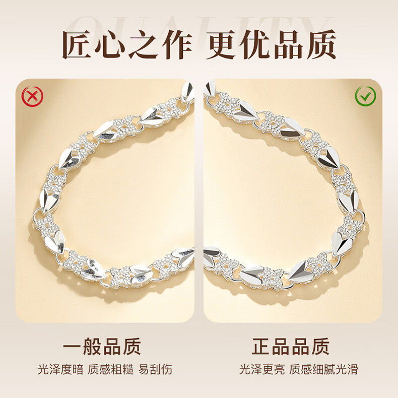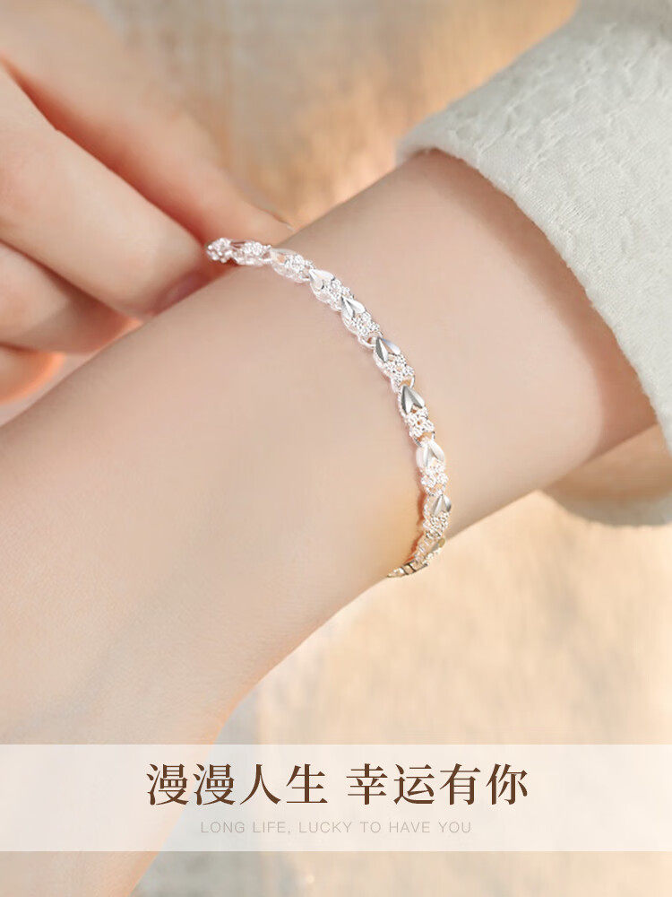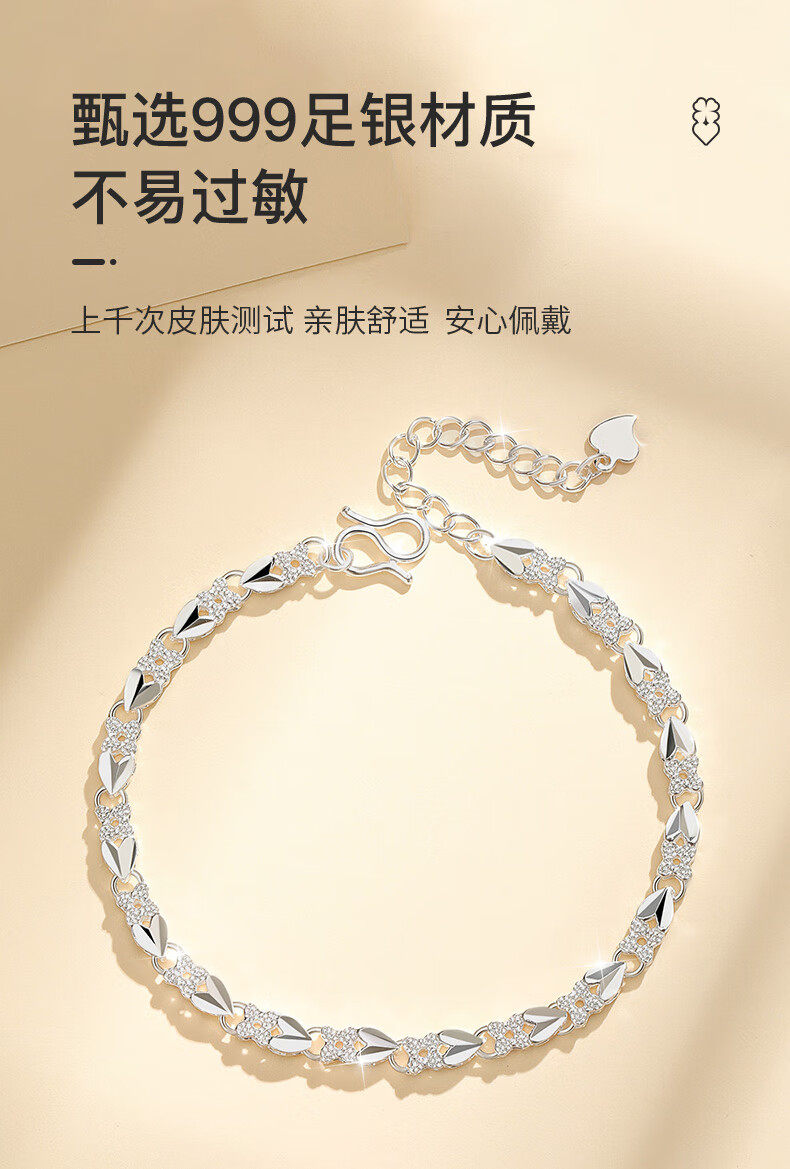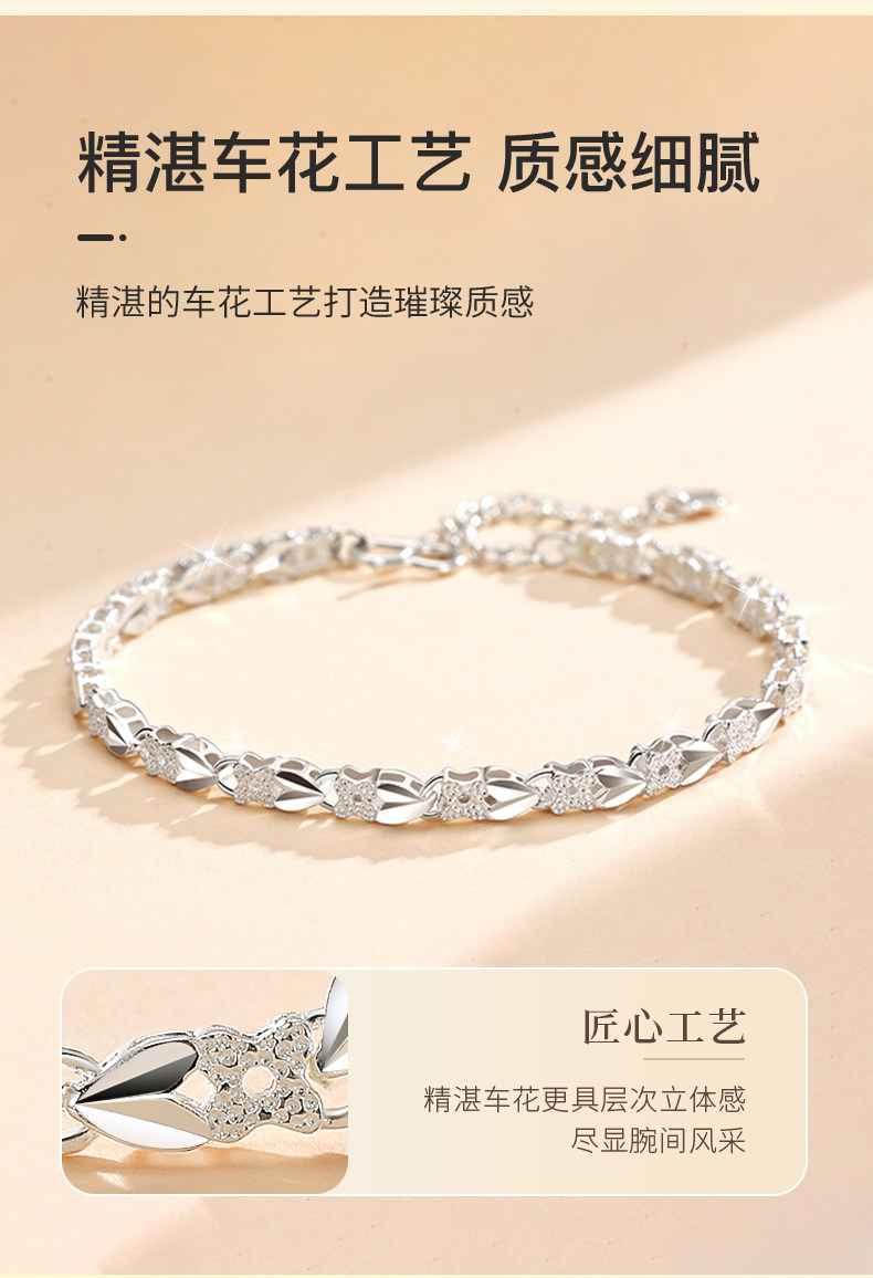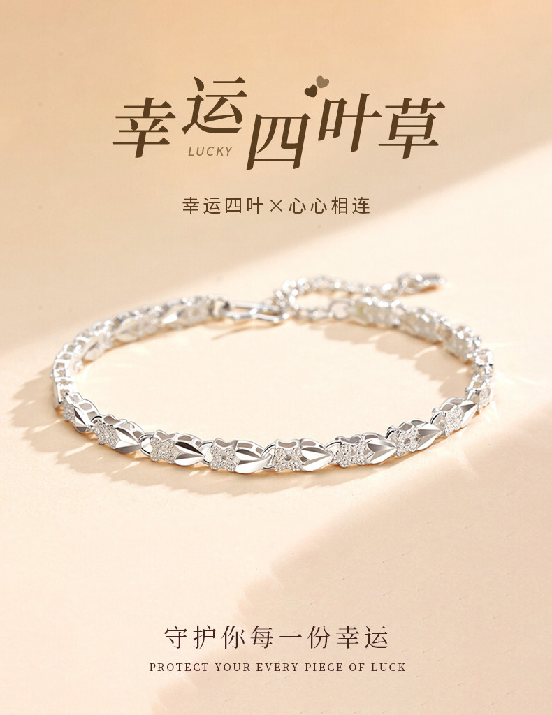 Chinese Gold 999 Pure Silver Four-Leaf Clover Silver Bracelet for Women, Pure Silver Light Luxury, Women's Day Birthday Gift for Girlfriend