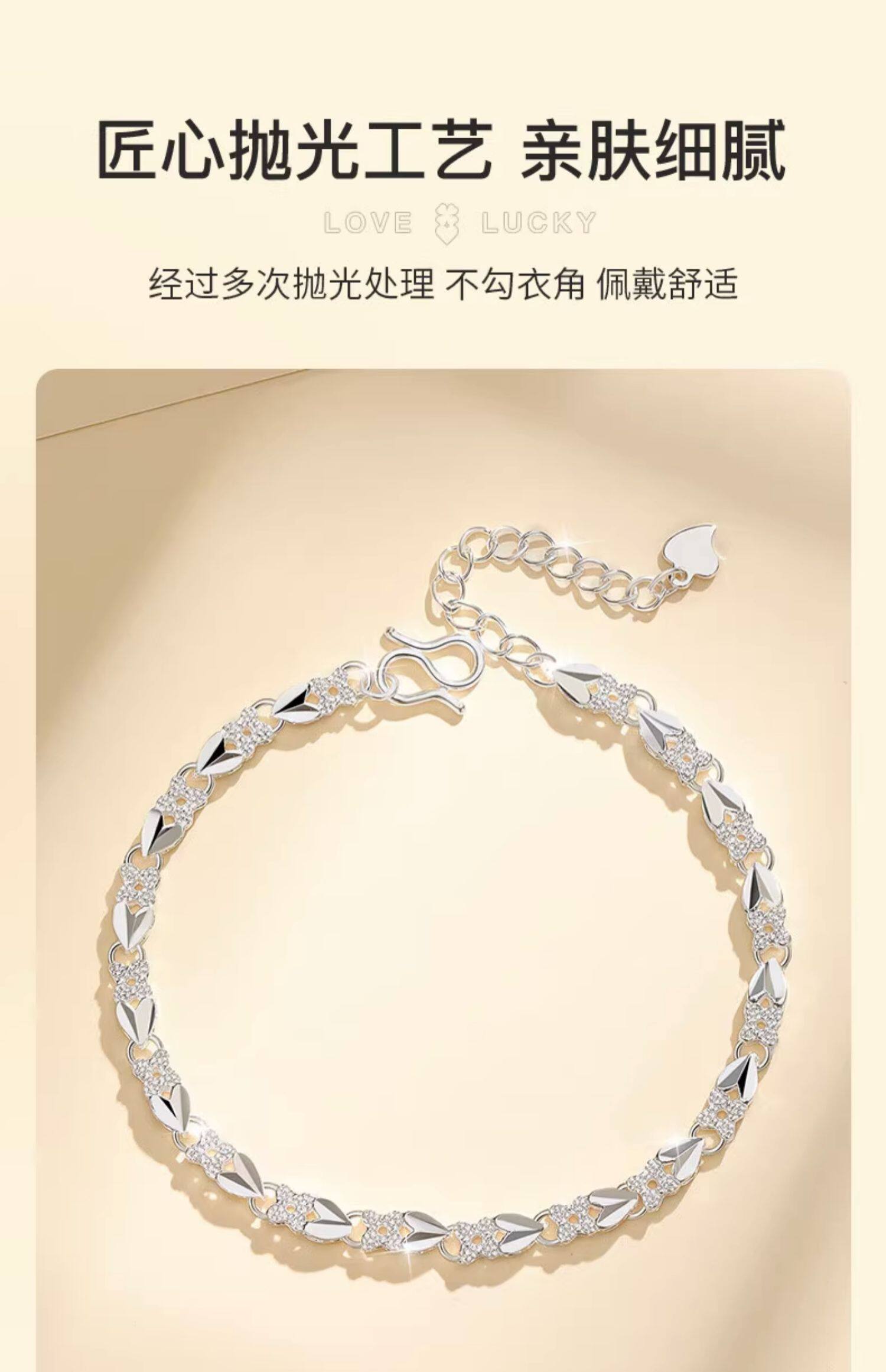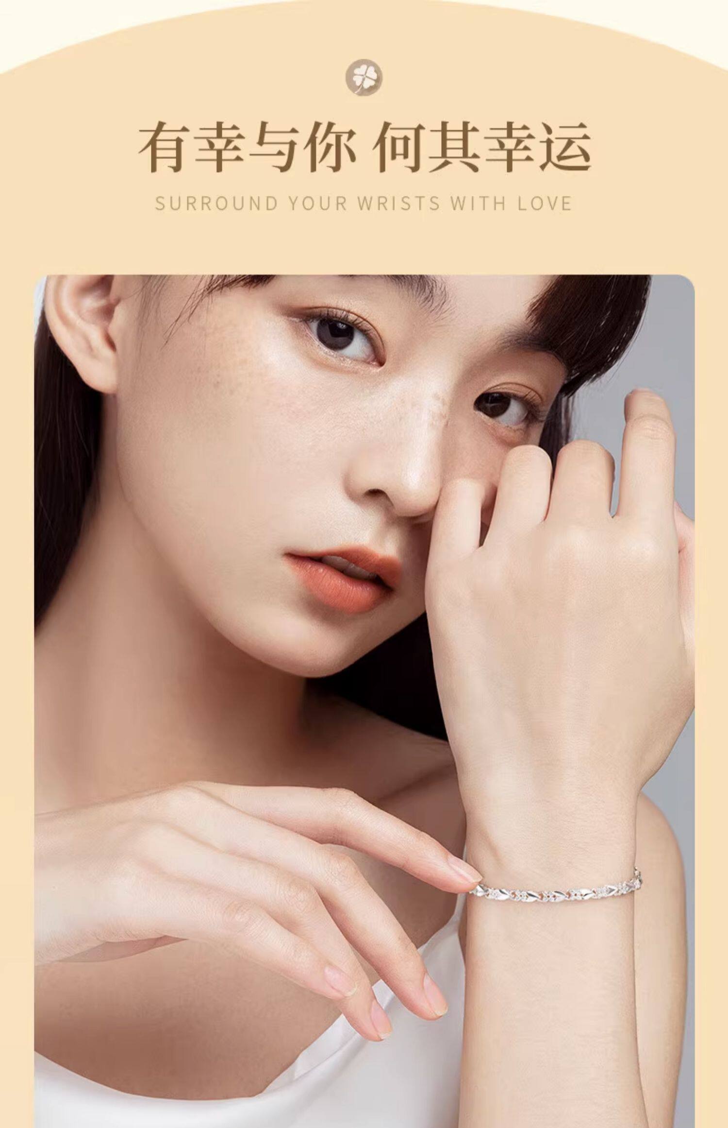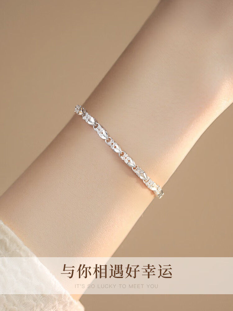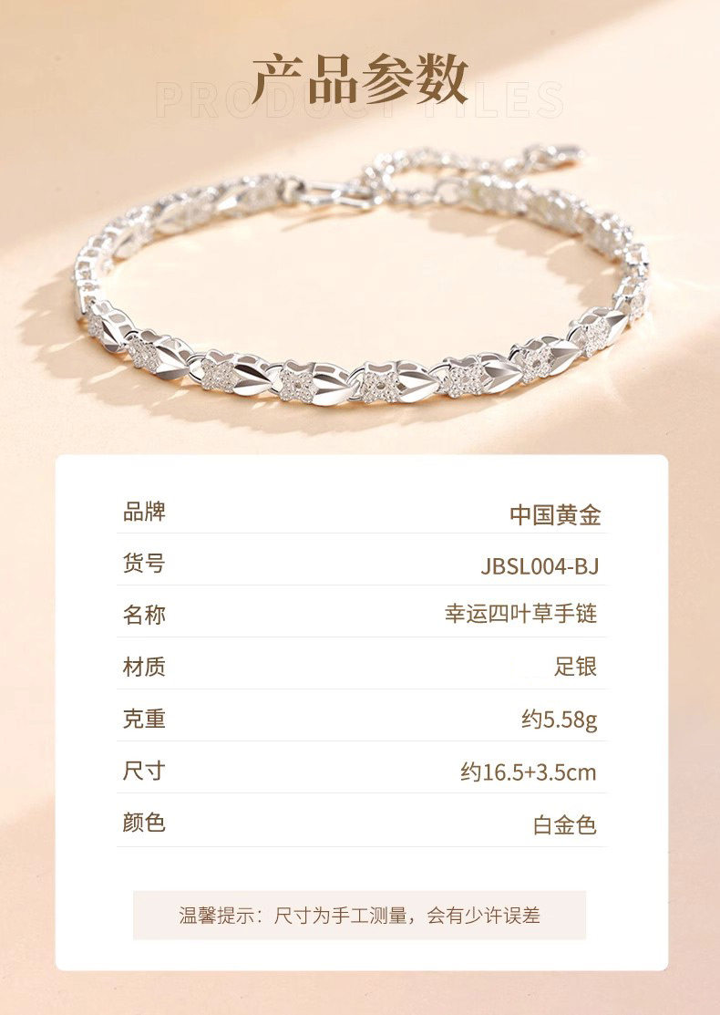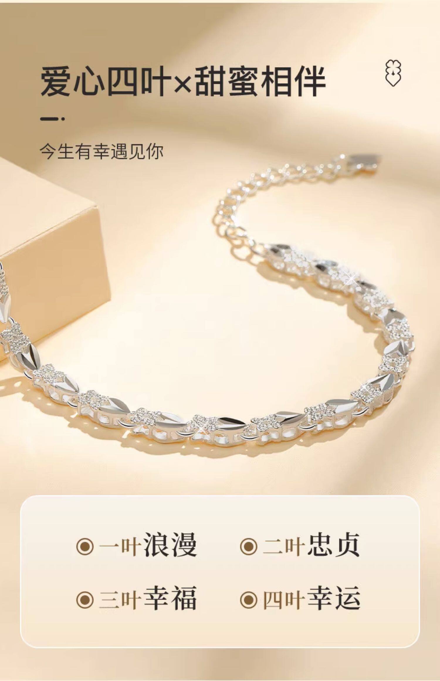 Chinese Gold 999 Pure Silver Four-Leaf Clover Silver Bracelet for Women, Pure Silver Light Luxury, Women's Day Birthday Gift for Girlfriend