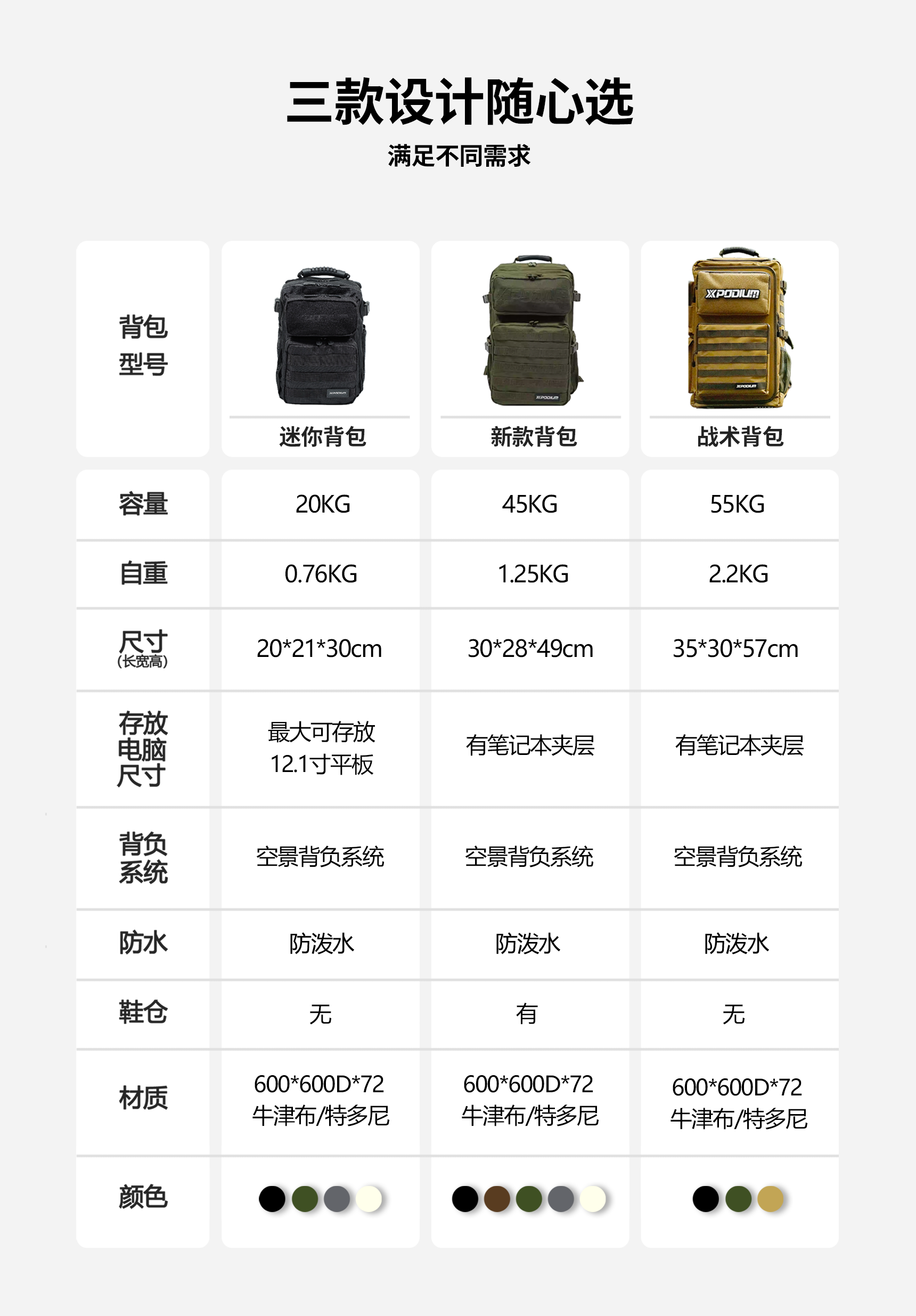 Xpodium Outdoor Sports Mountaineering Fitness Travel Large-Capacity Leisure Cycling Hiking Multi-Compartment Backpack