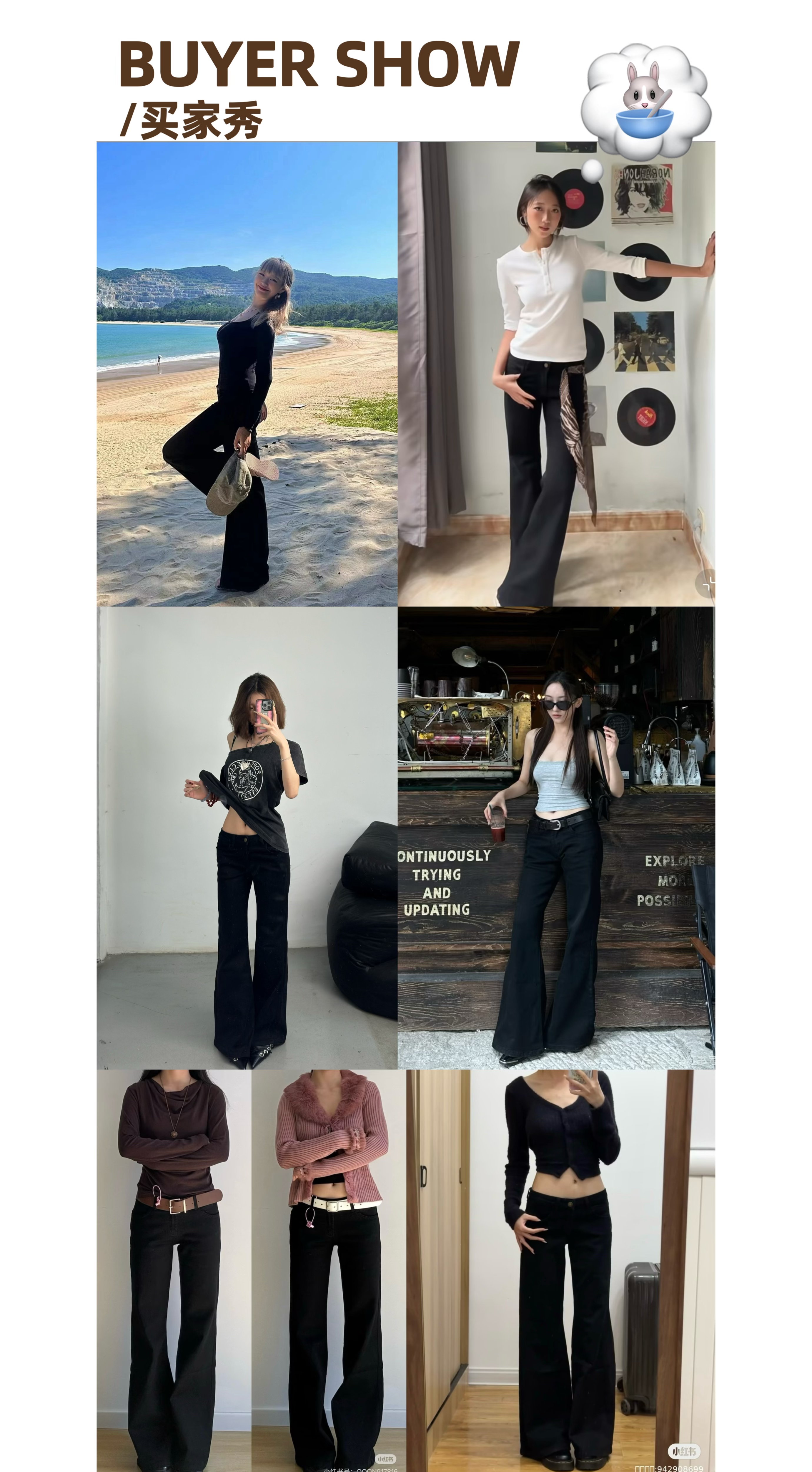In Stock Popchee|Super Black Cow|Hot Girl Low-Waisted Wide-Leg Jeans! Slightly Flared Slimming Jeans~