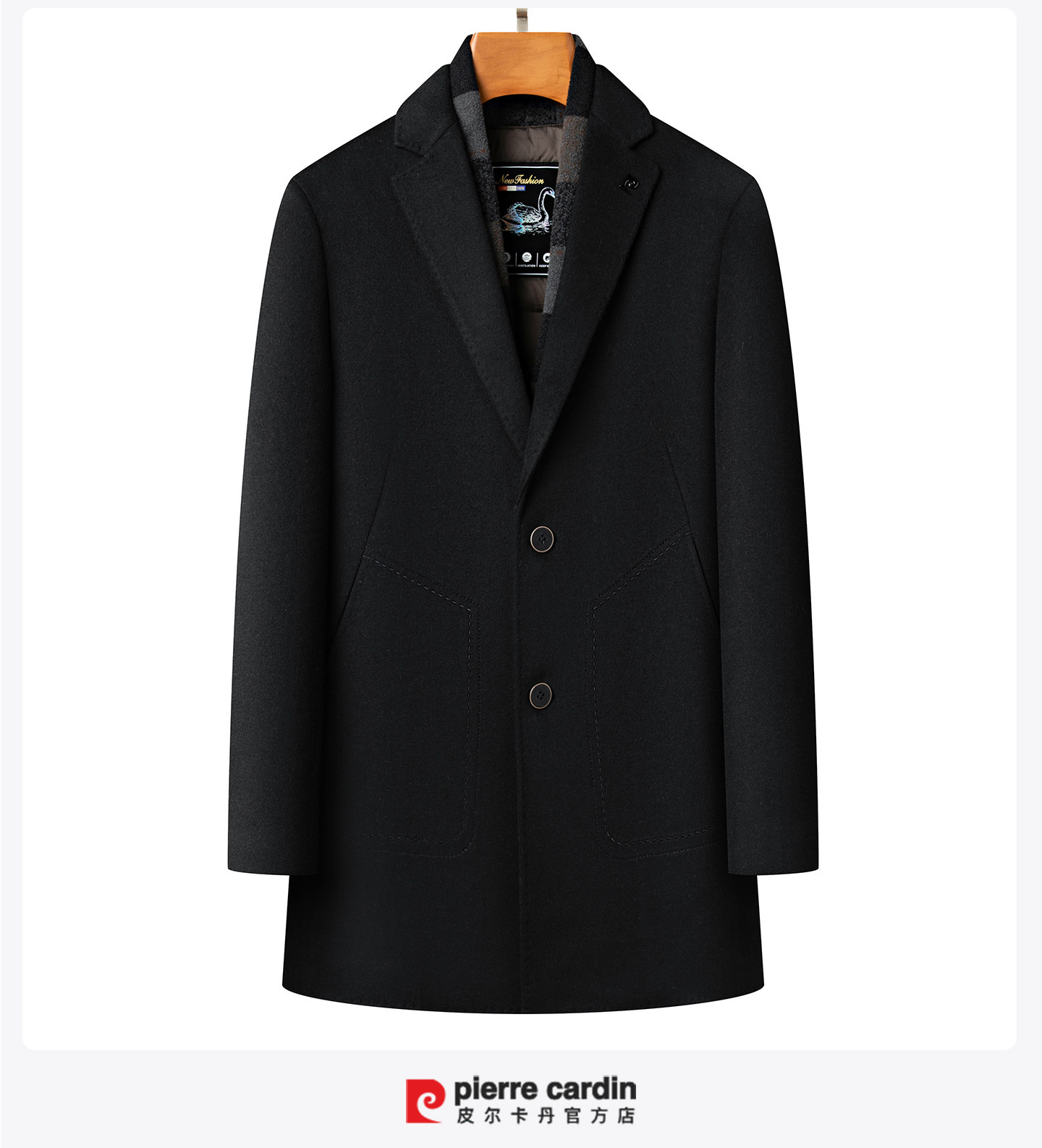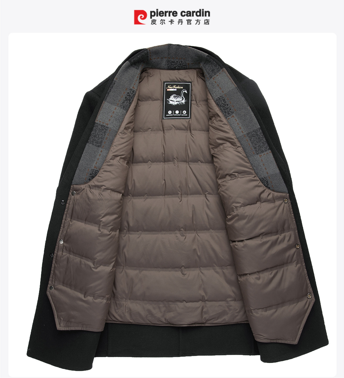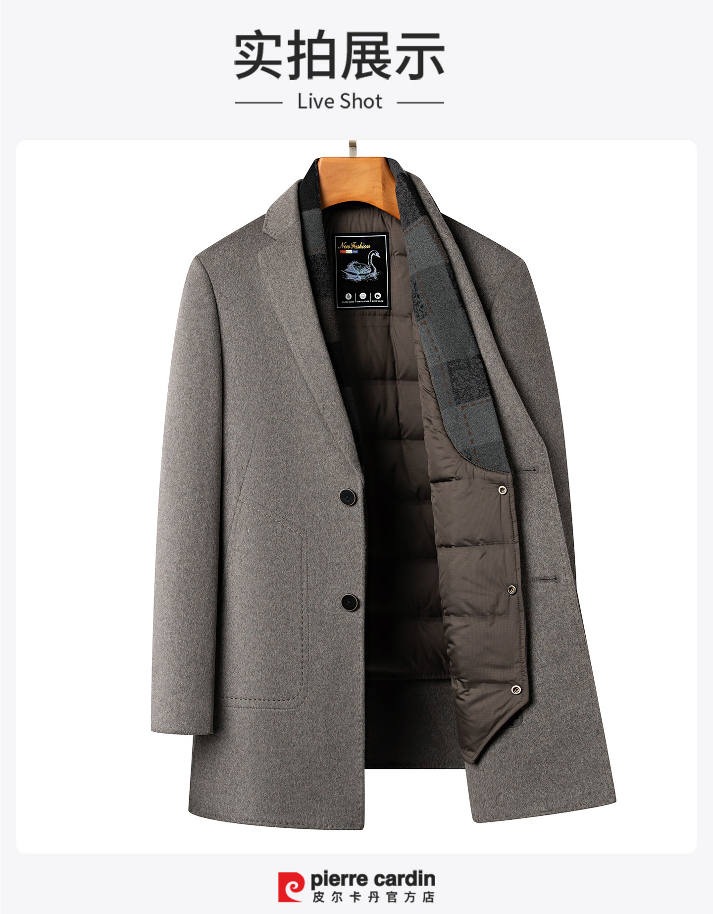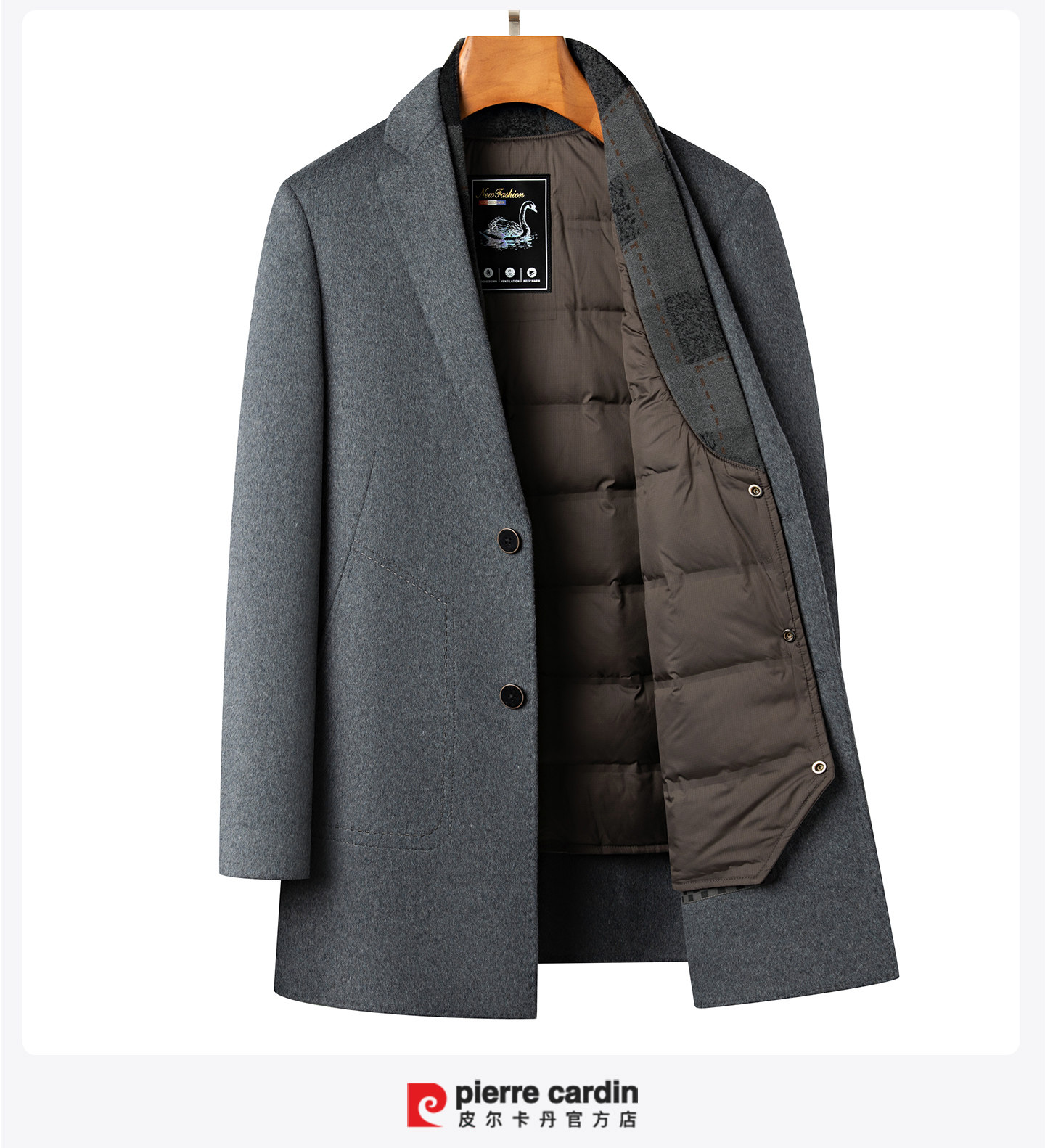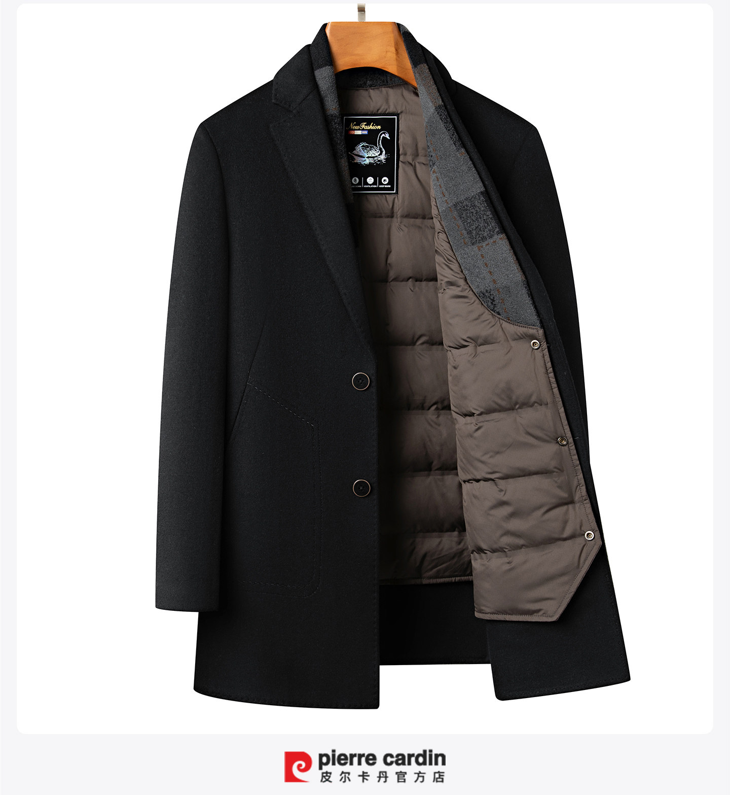 Pierre Cardin Double-Sided Wool Coat for Men, Mid-Length, with Detachable Goose down Lining, Autumn and Winter Woolen Cashmere Coat