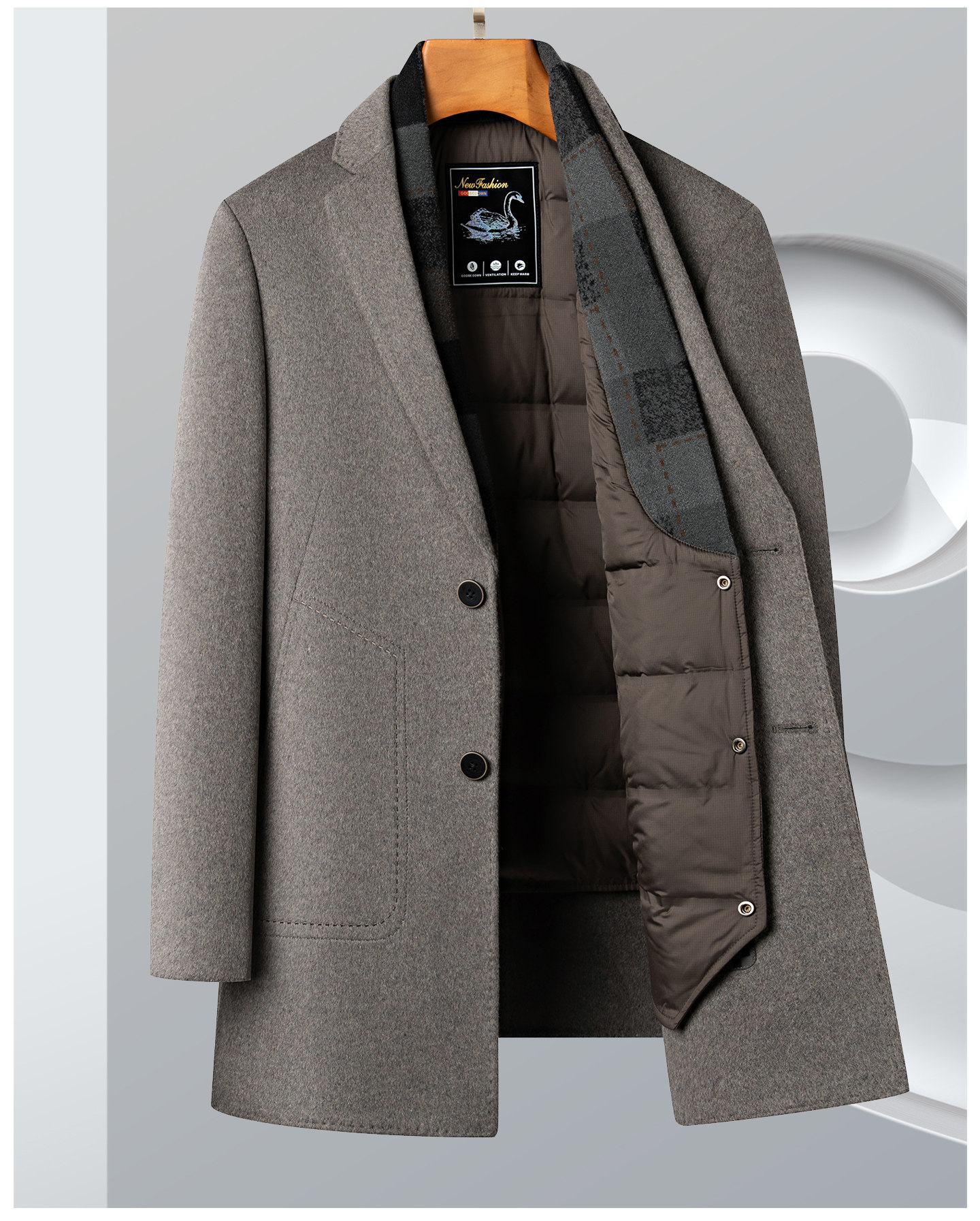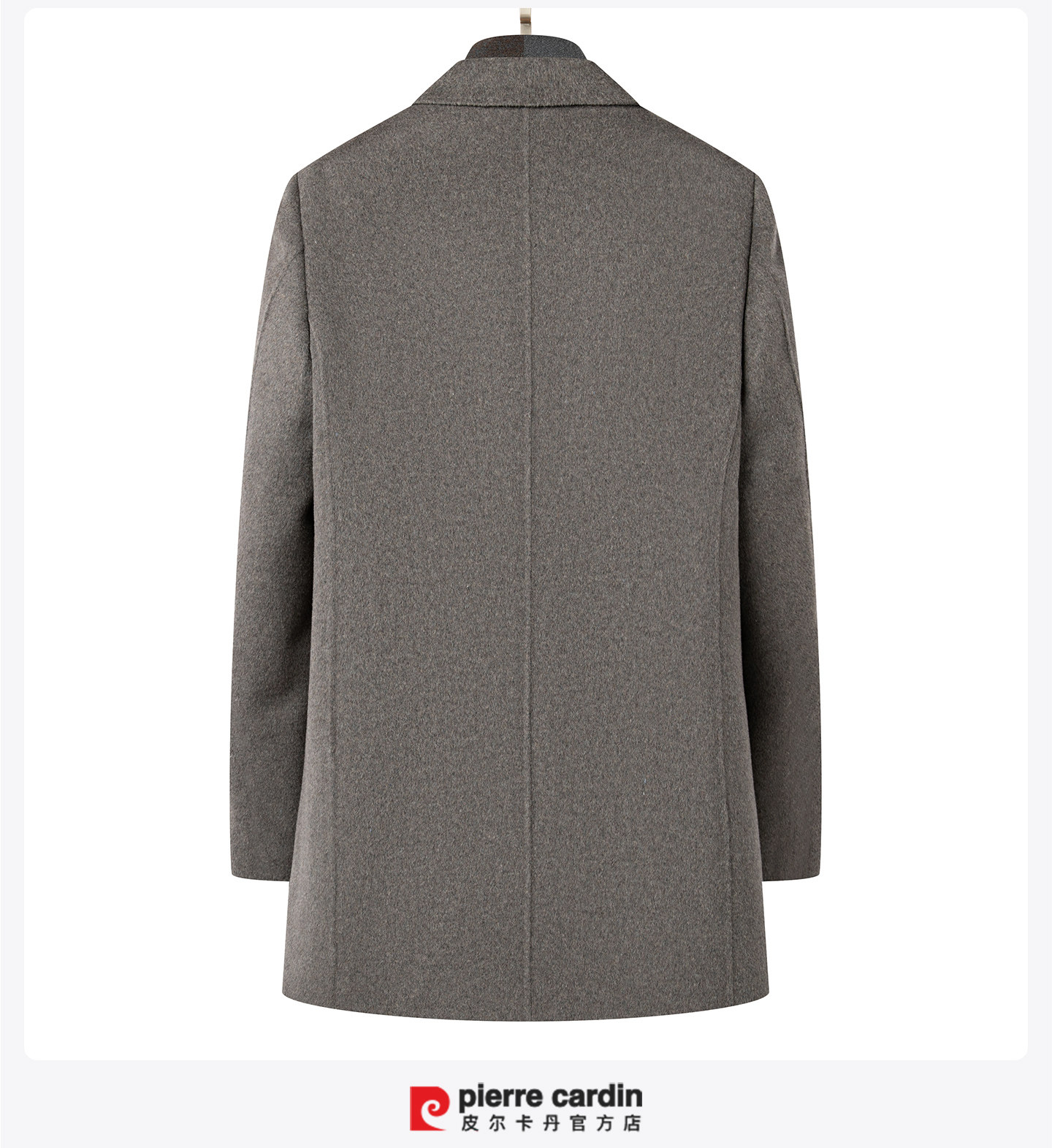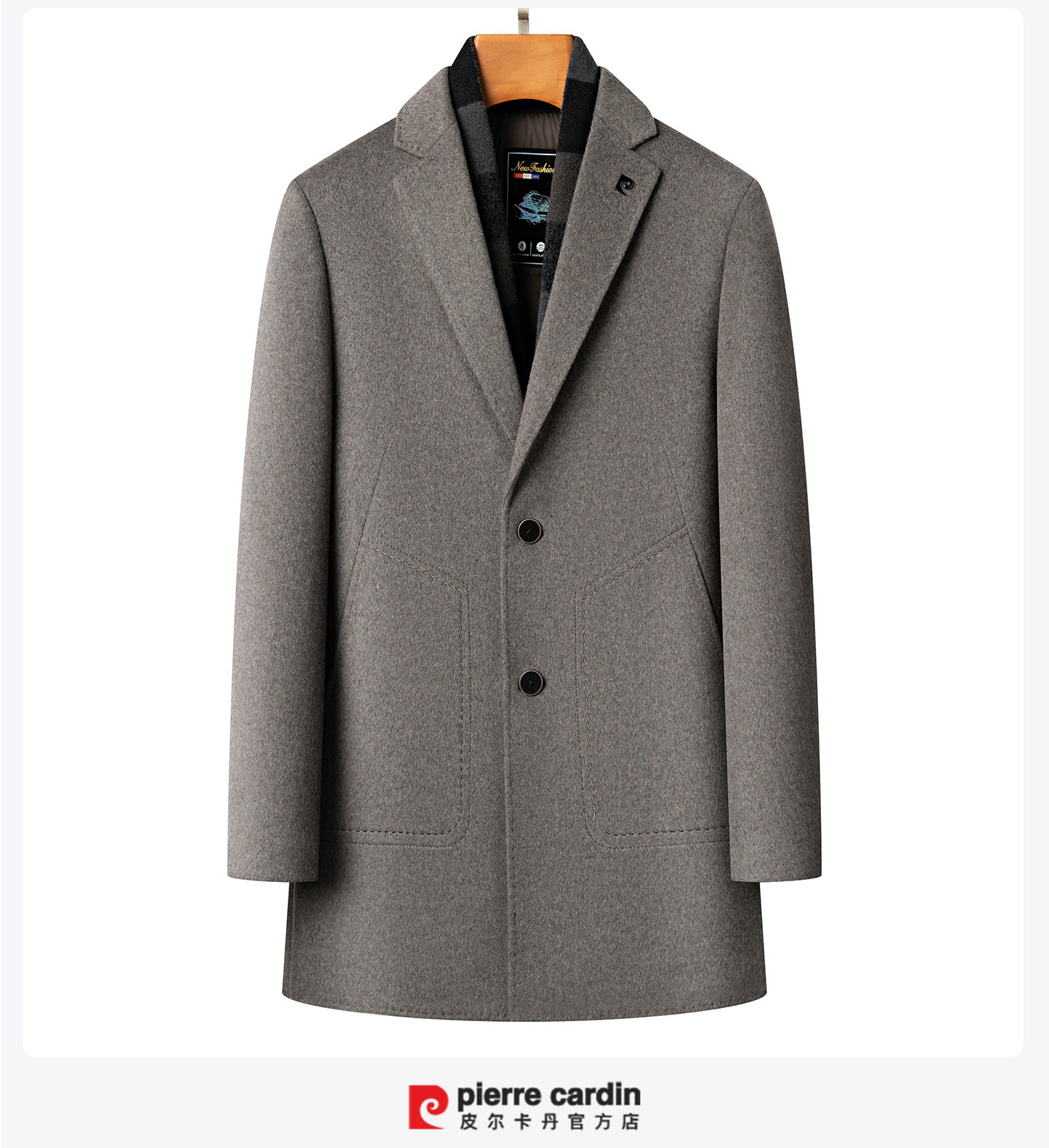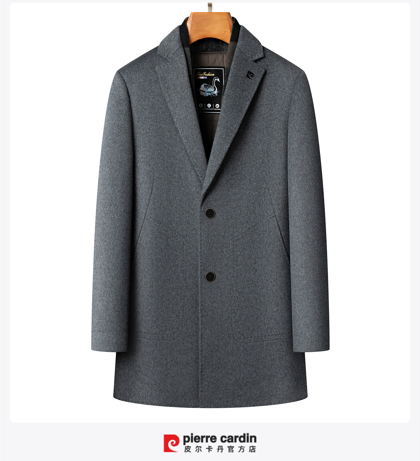 Pierre Cardin Double-Sided Wool Coat for Men, Mid-Length, with Detachable Goose down Lining, Autumn and Winter Woolen Cashmere Coat