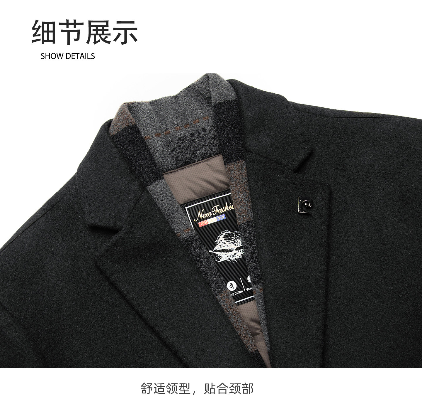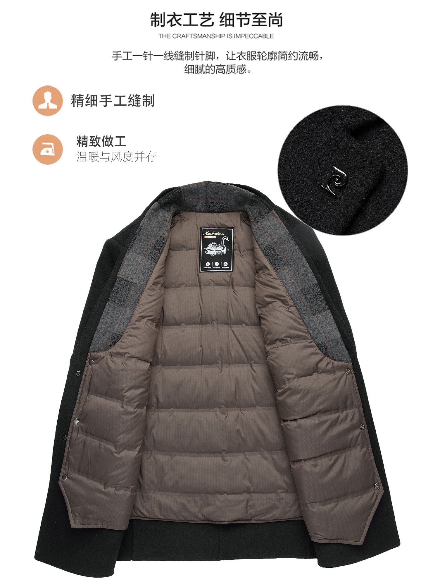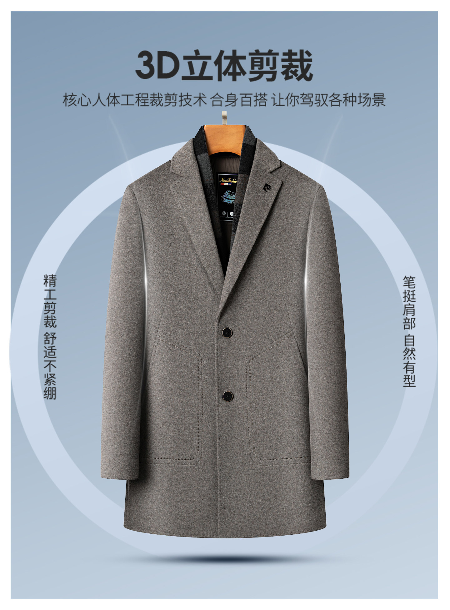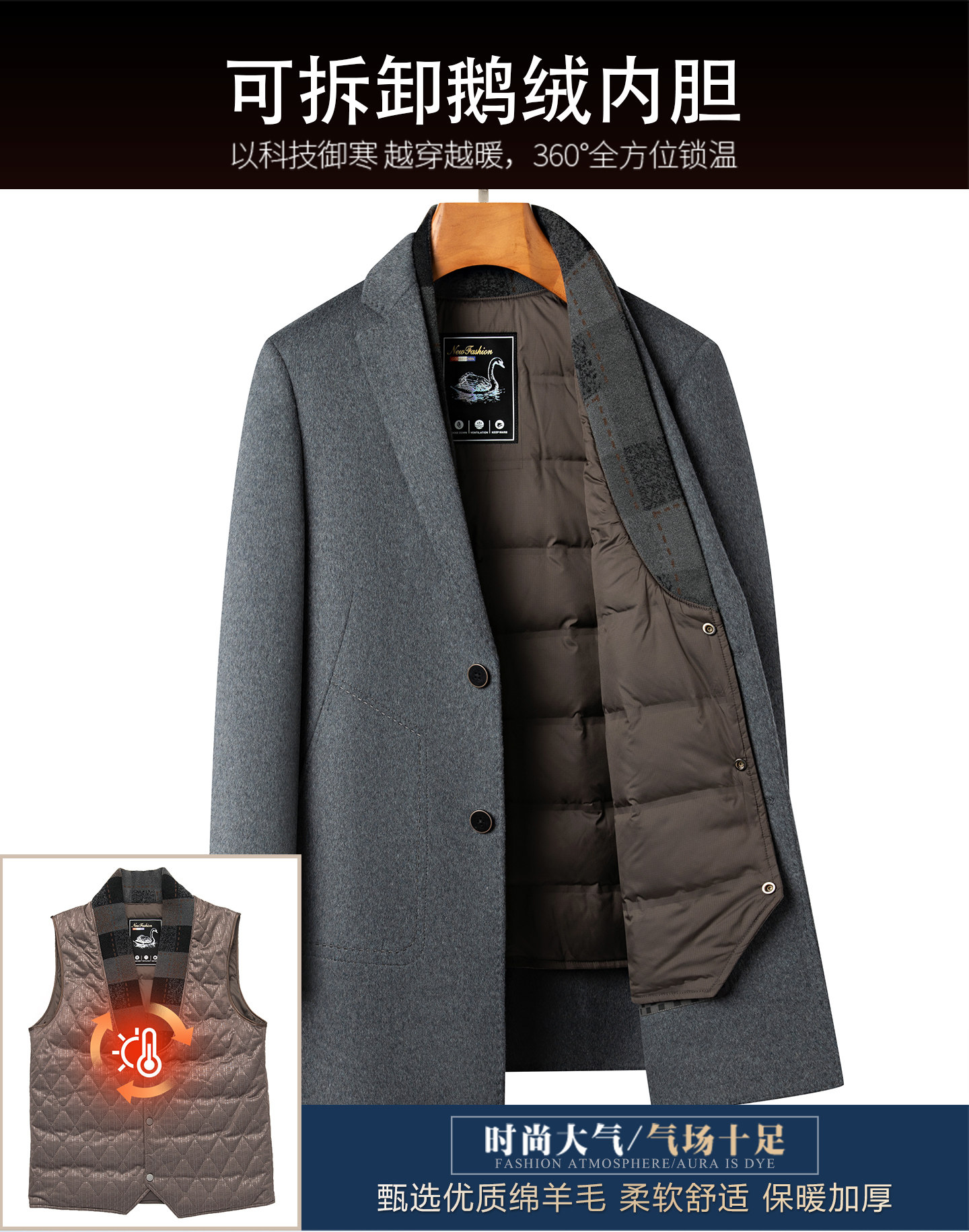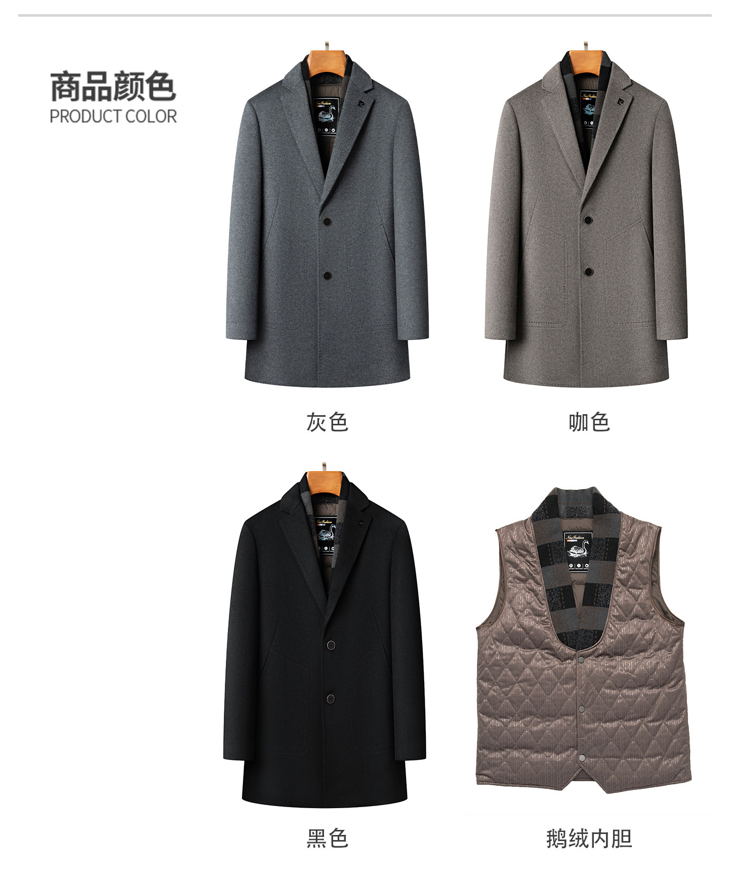 Pierre Cardin Double-Sided Wool Coat for Men, Mid-Length, with Detachable Goose down Lining, Autumn and Winter Woolen Cashmere Coat