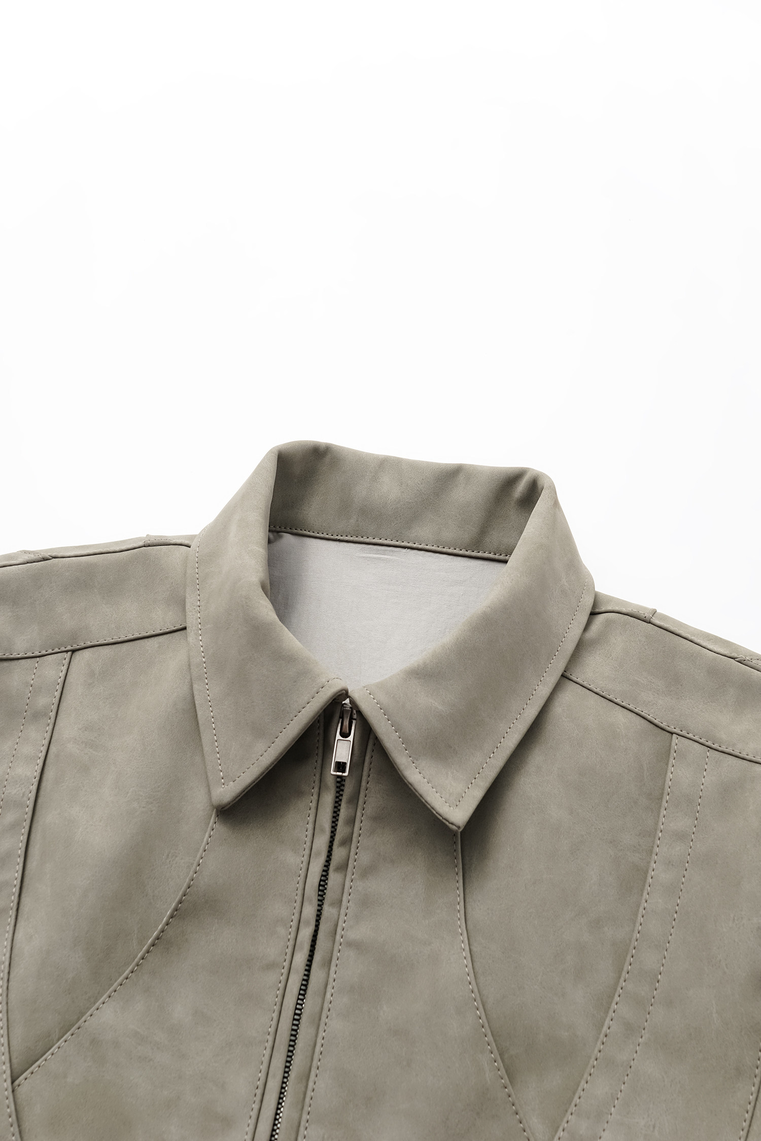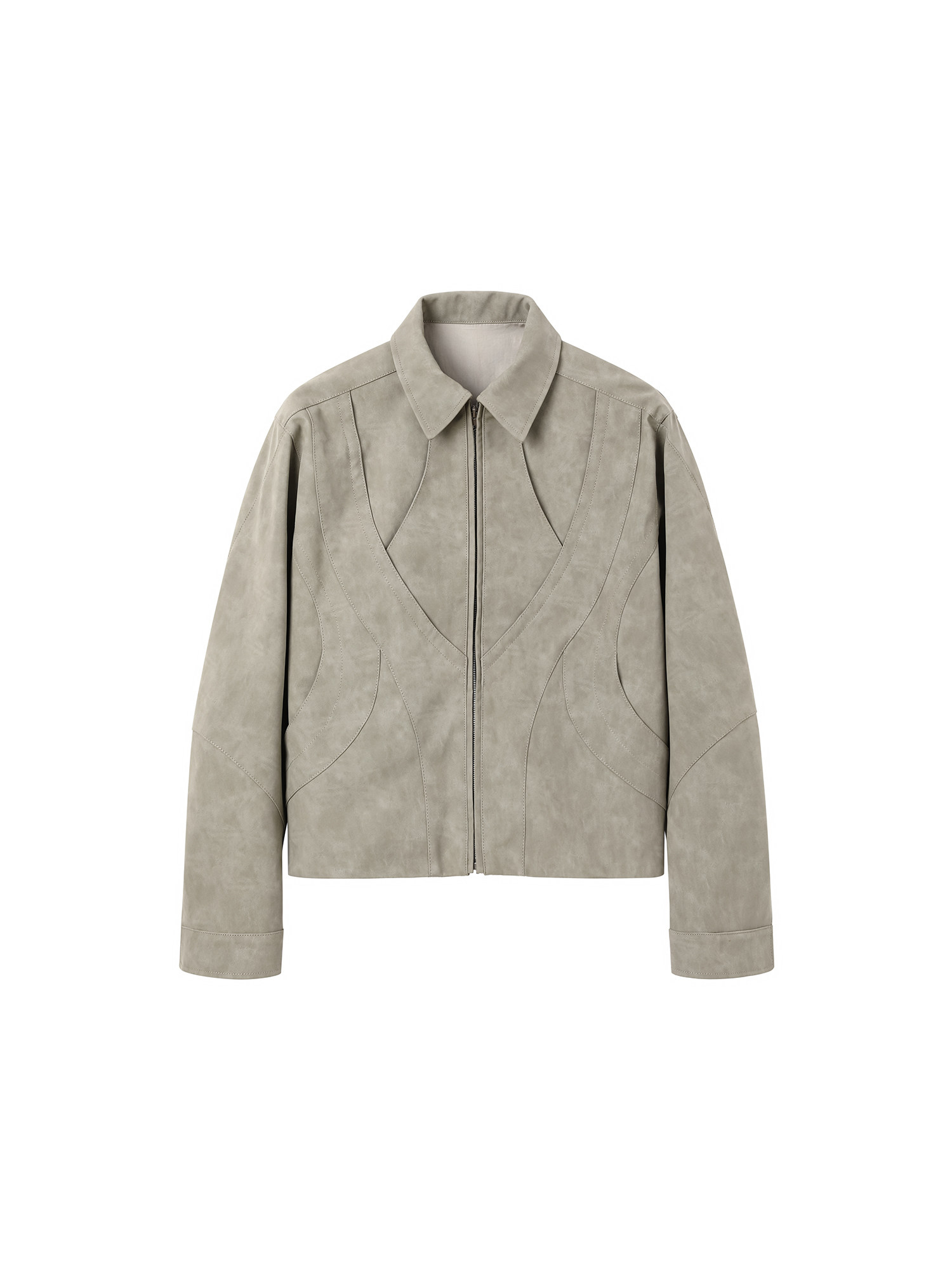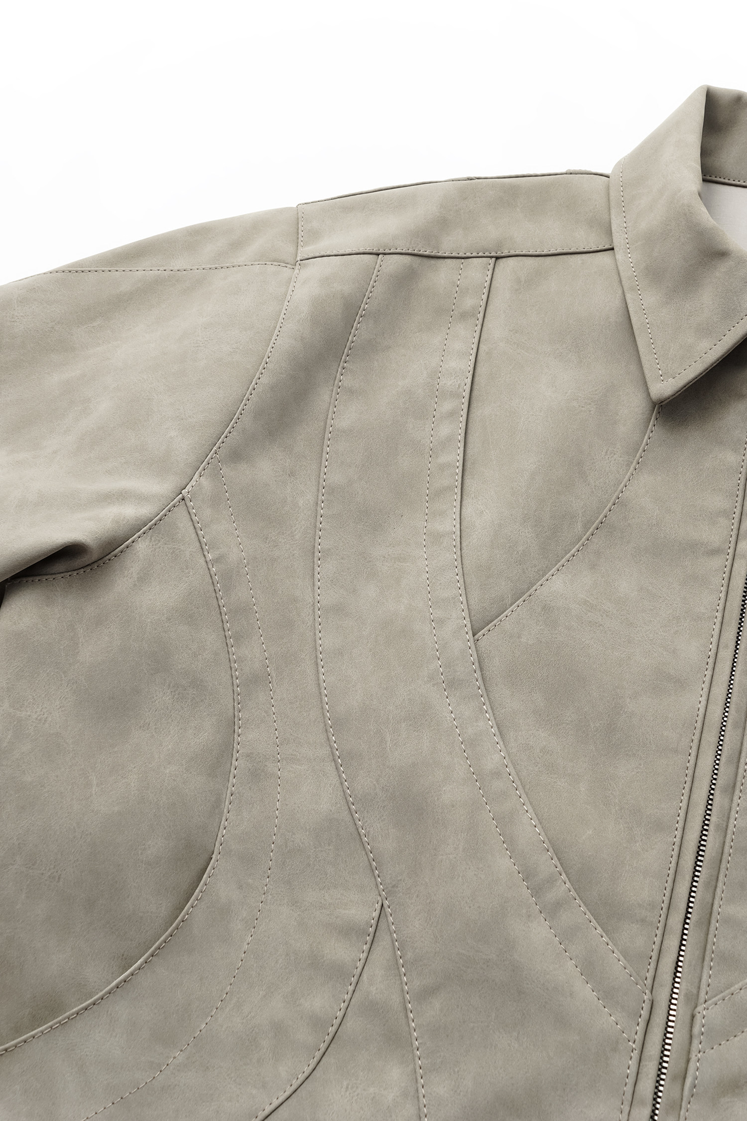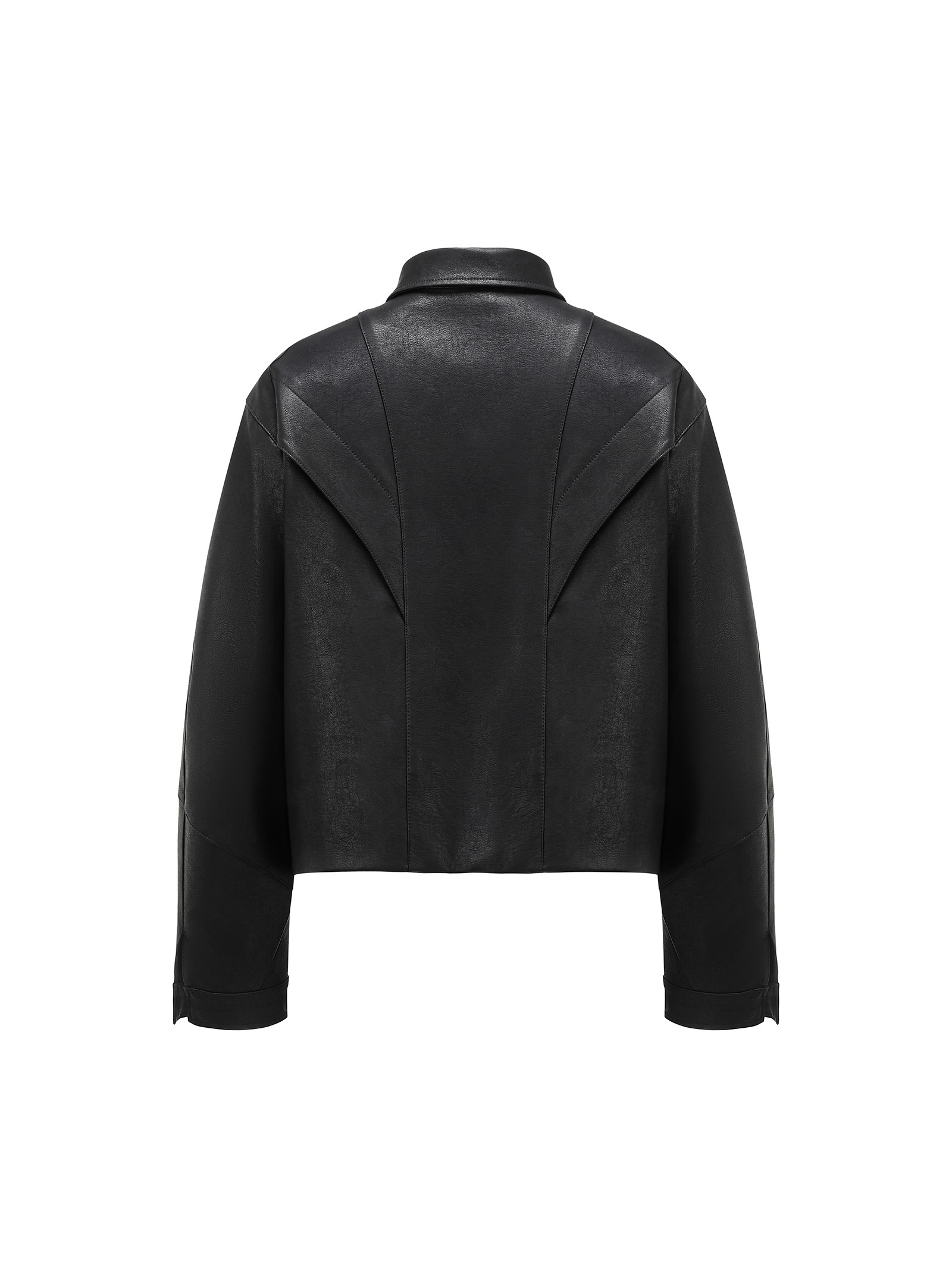 Invoid Flower Bud Structure Line Loose-Fitting Three-Dimensional Curved Knife Short Wide Coat Washed Leather Jacket