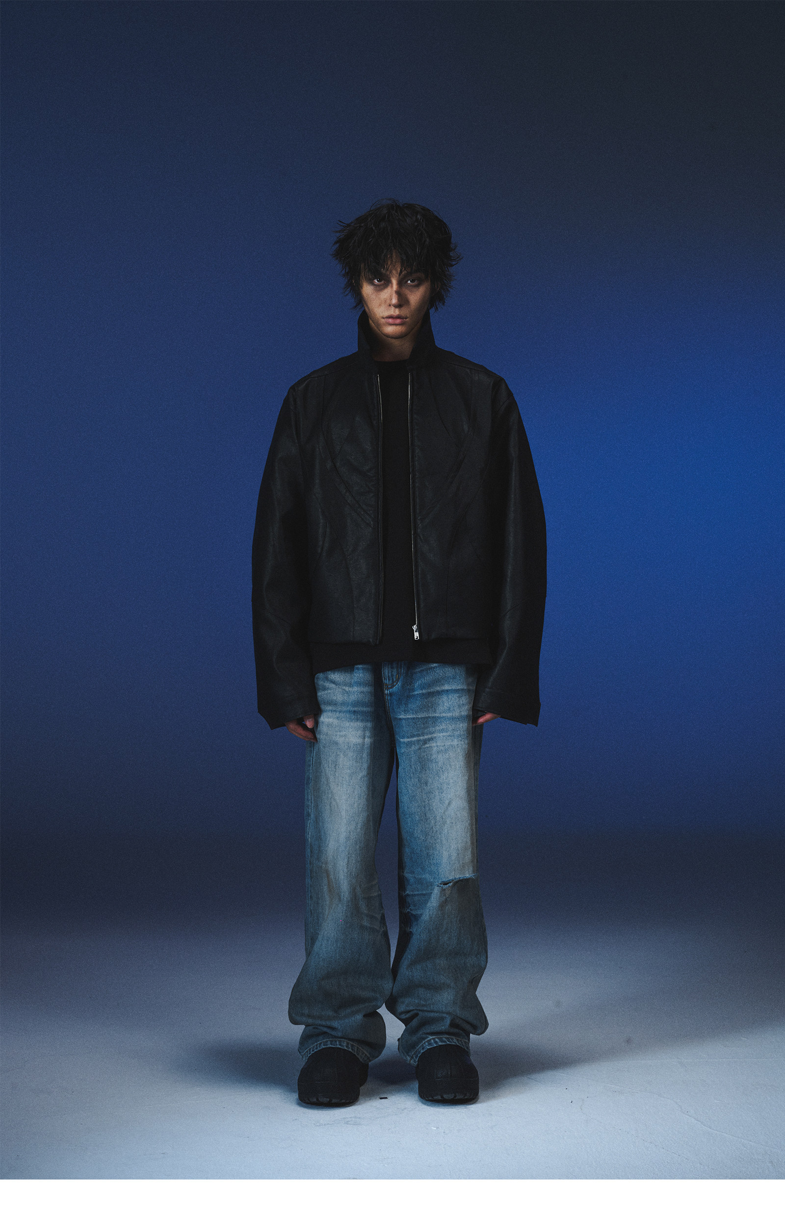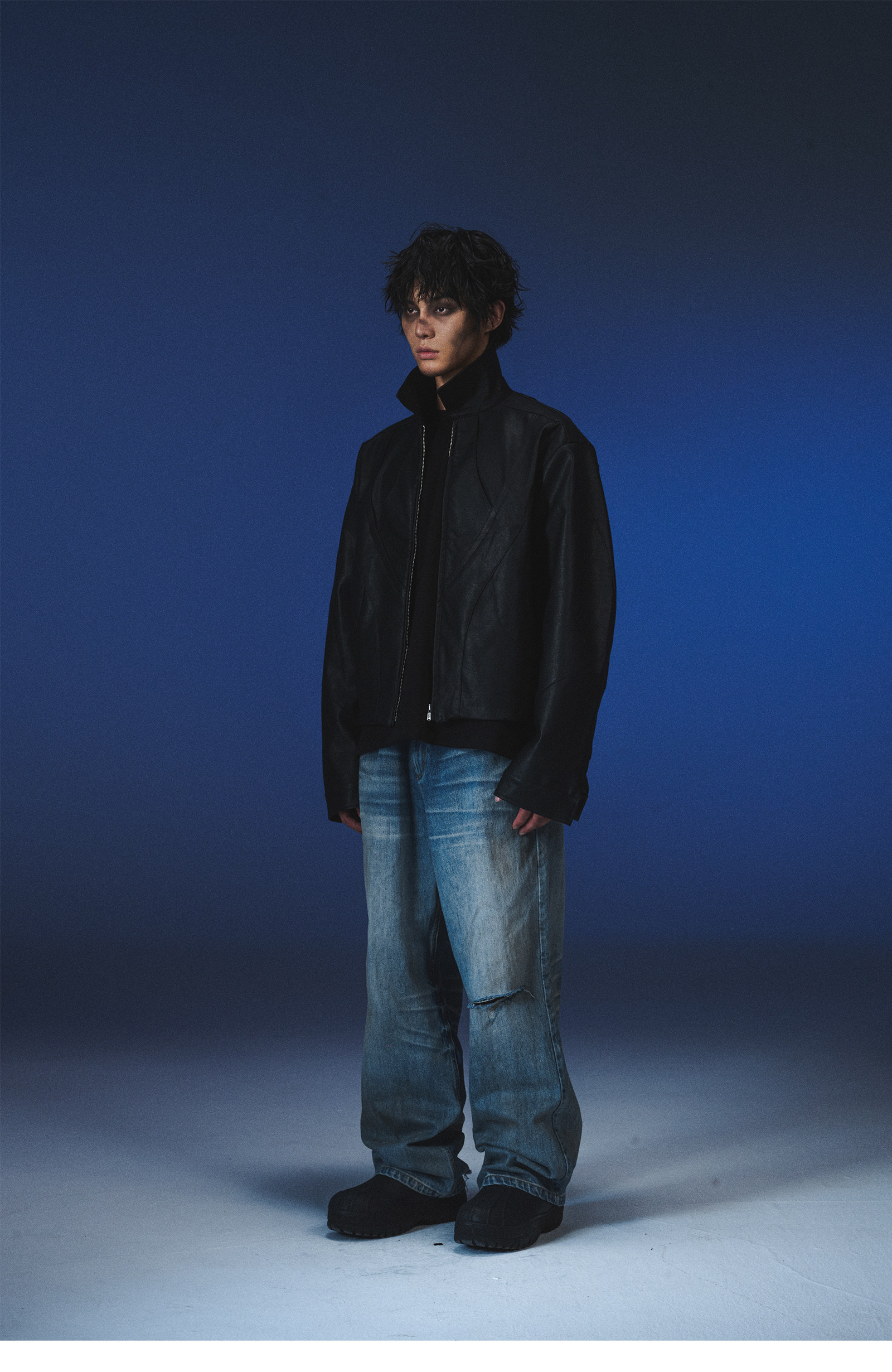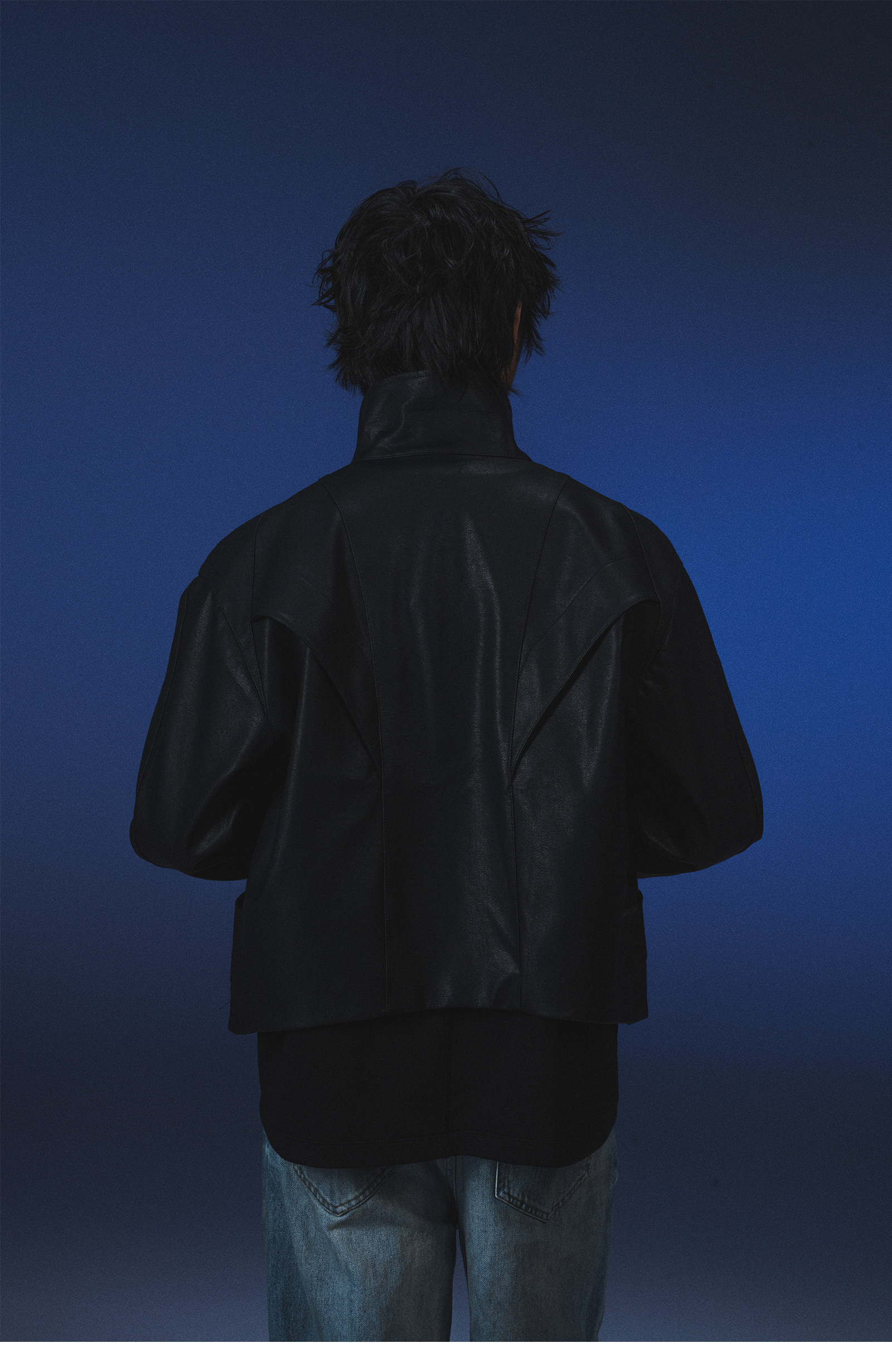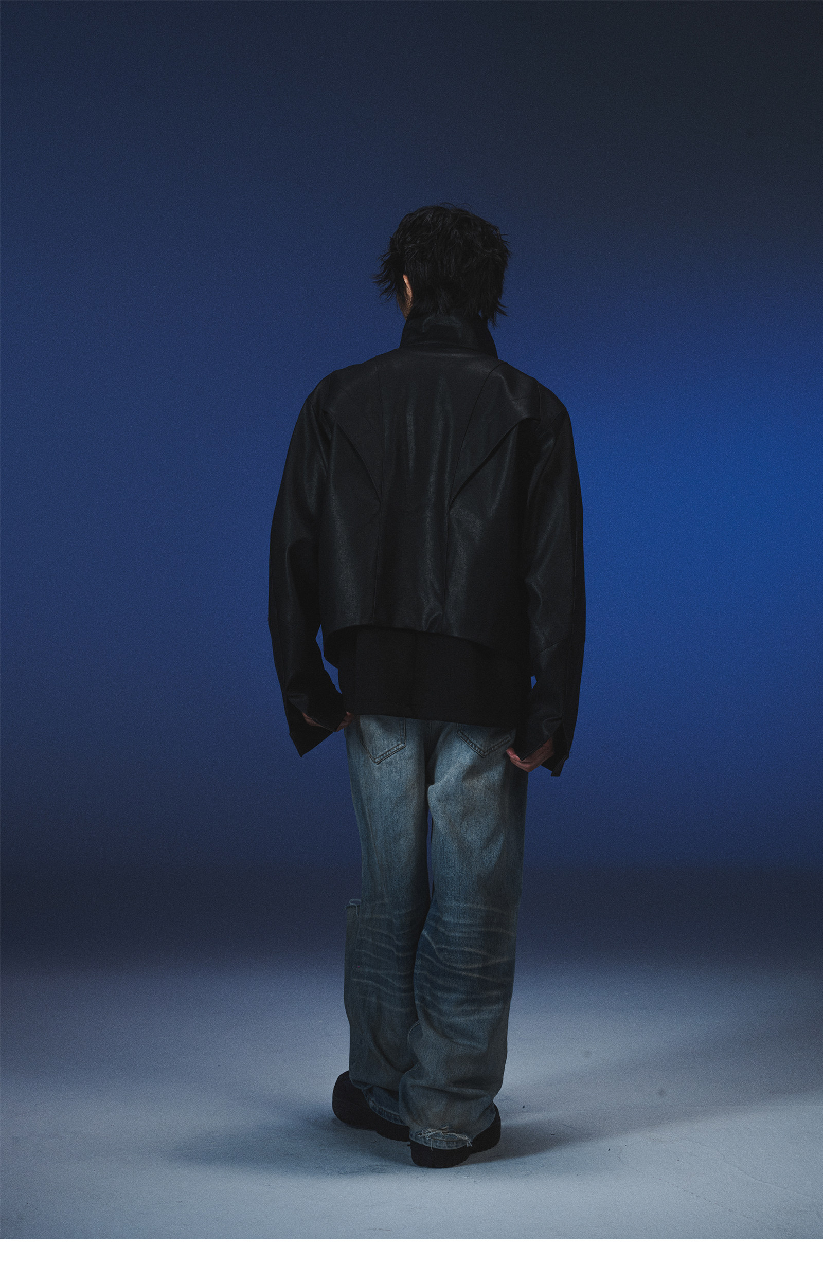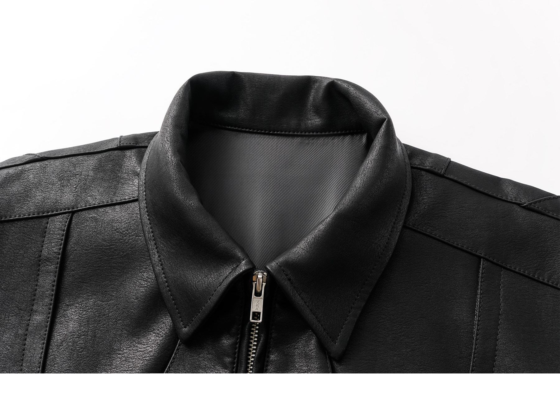 Invoid Flower Bud Structure Line Loose-Fitting Three-Dimensional Curved Knife Short Wide Coat Washed Leather Jacket