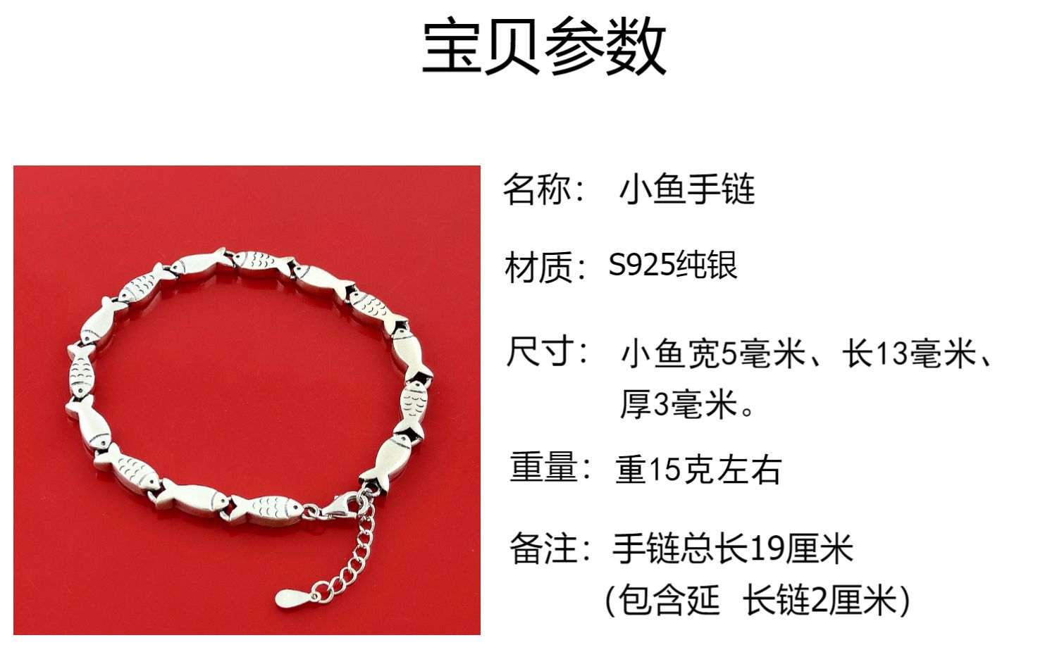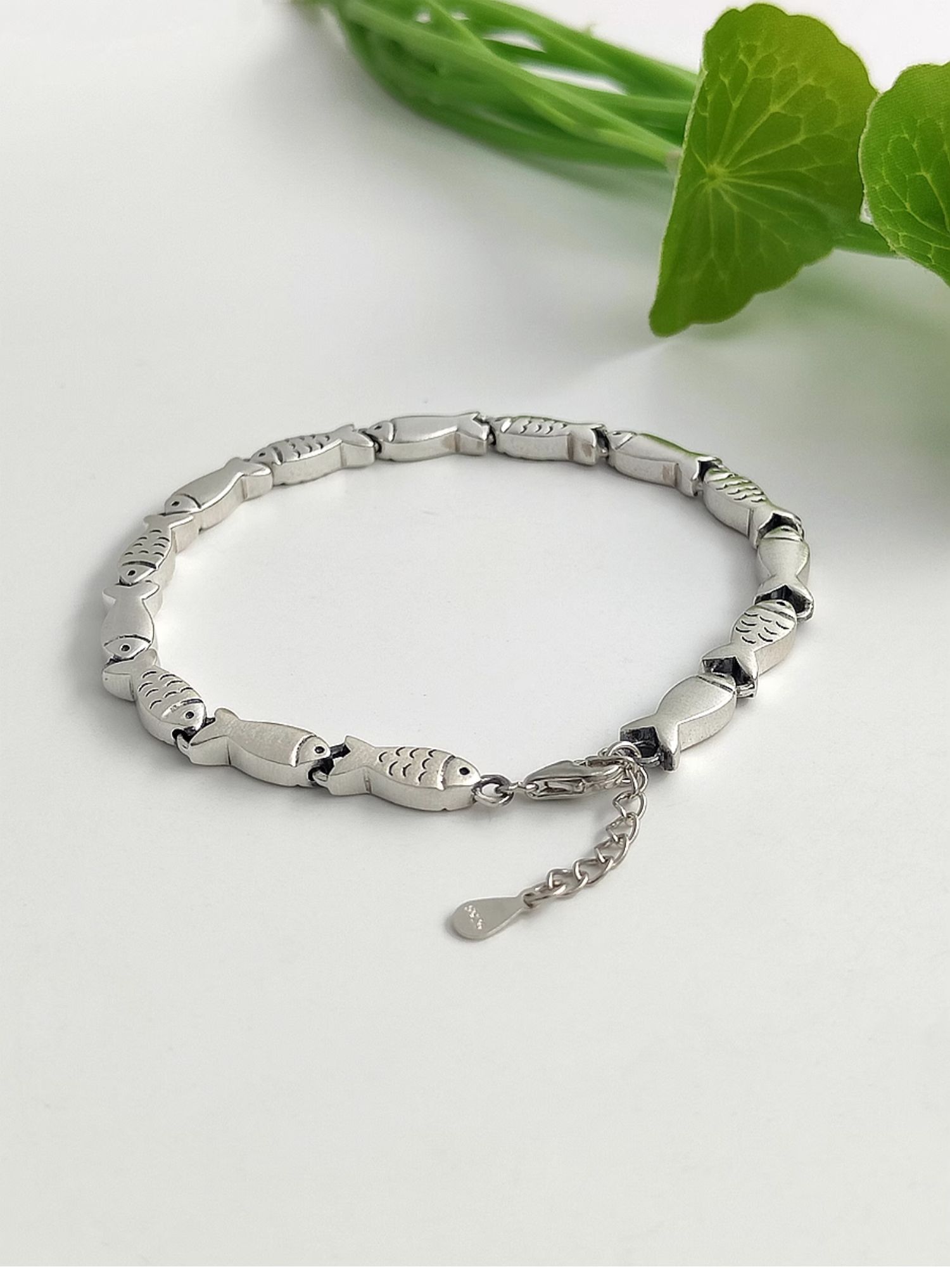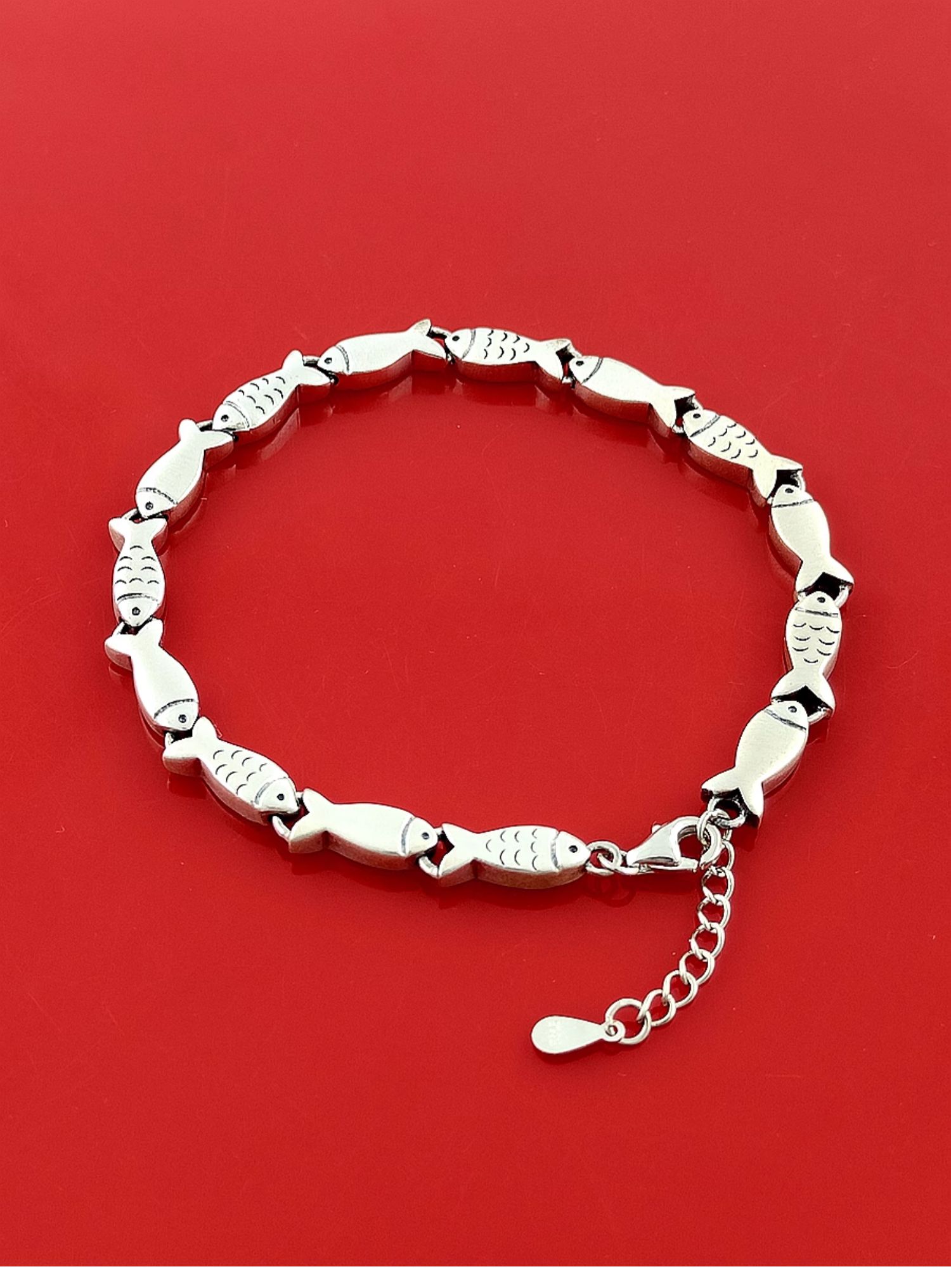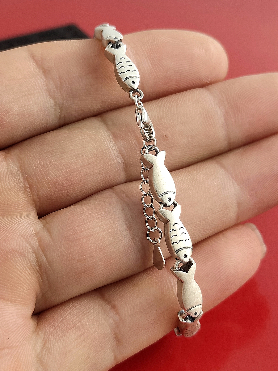 Solid Sterling Silver Cute Little Fish Bracelet, Year after Year of Fish, Thin Bracelet, Versatile and Fashionable Jewelry for Ladies