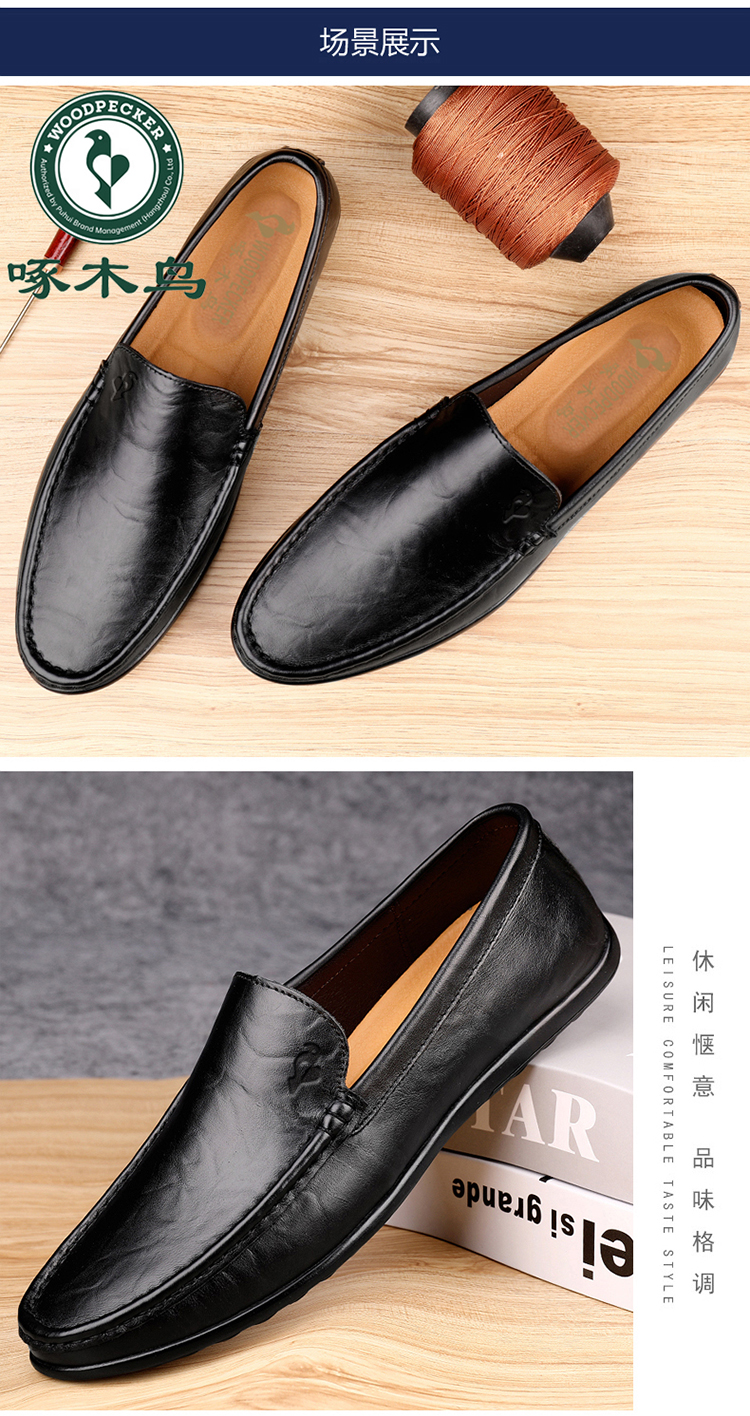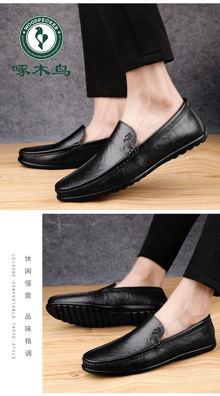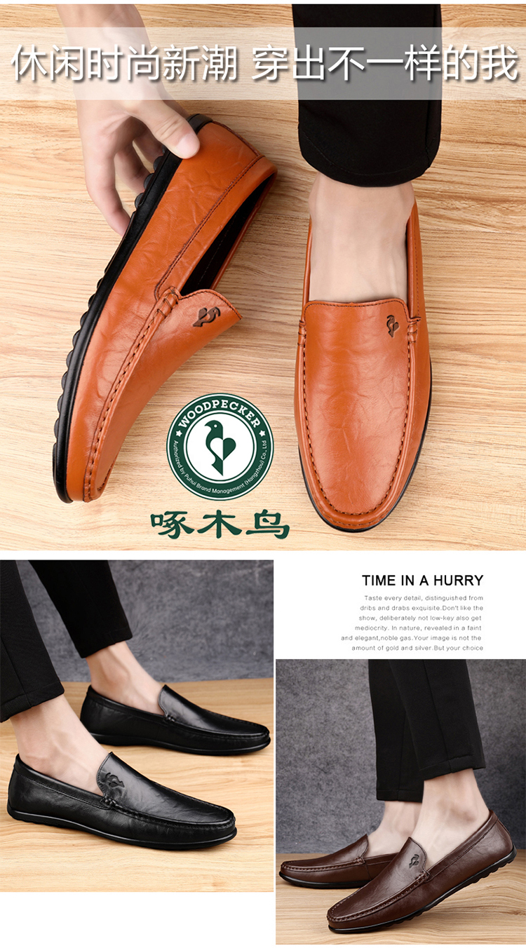 Woodpecker Leather Shoes for Men, Genuine Leather Soft Surface, Autumn Loafers, Slip-On Lazy Shoes, Casual Breathable Men's Shoes