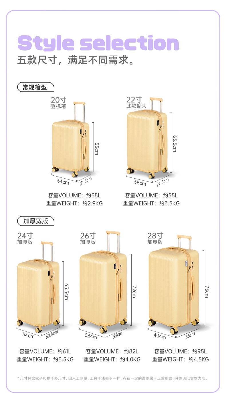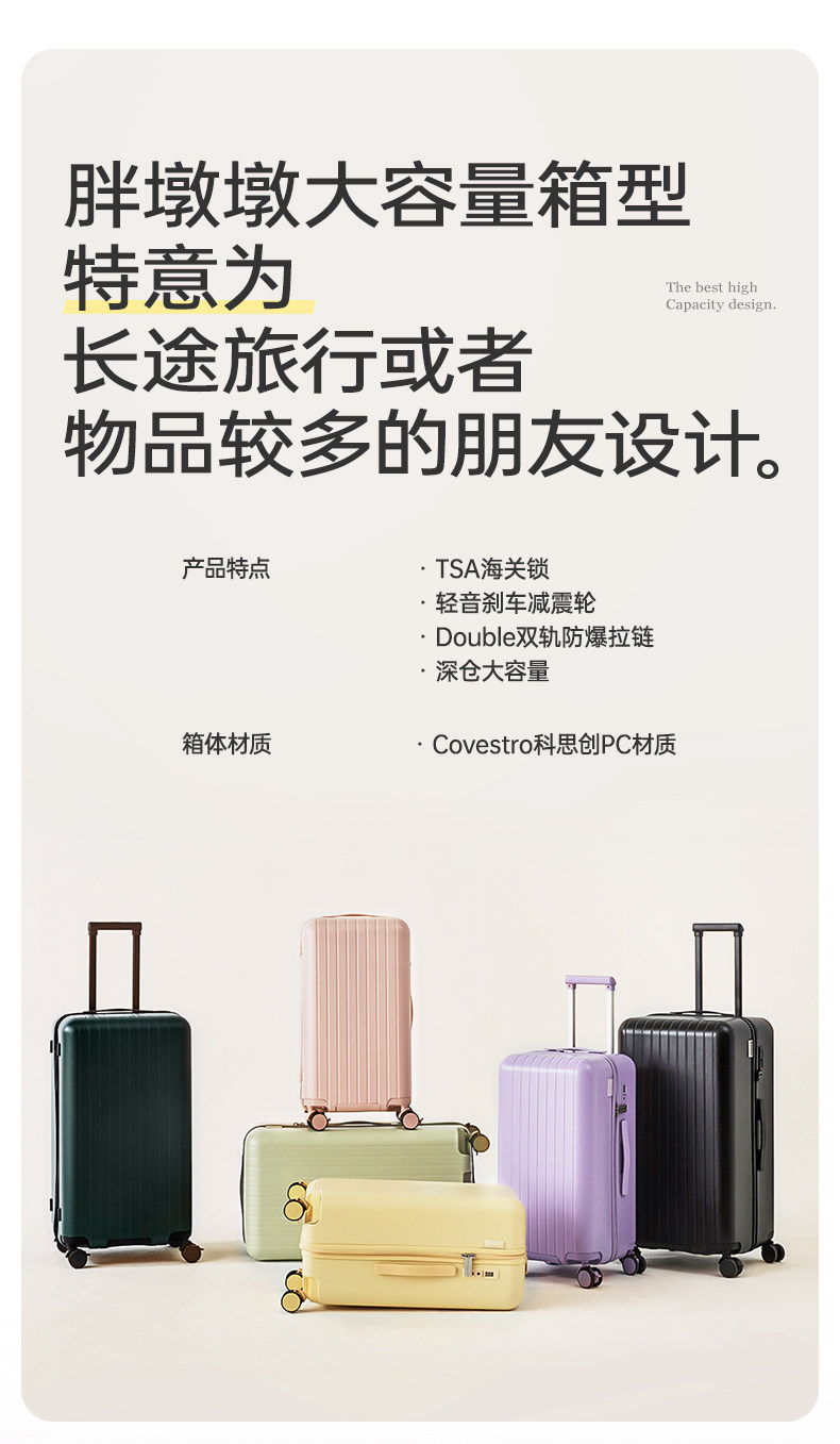 Pc Large-Capacity Suitcase Trolley Case for Women 24inch Password Lock Travel Case for Men 20 Carry-On Suitcase Silent and Durable 26