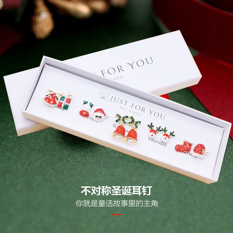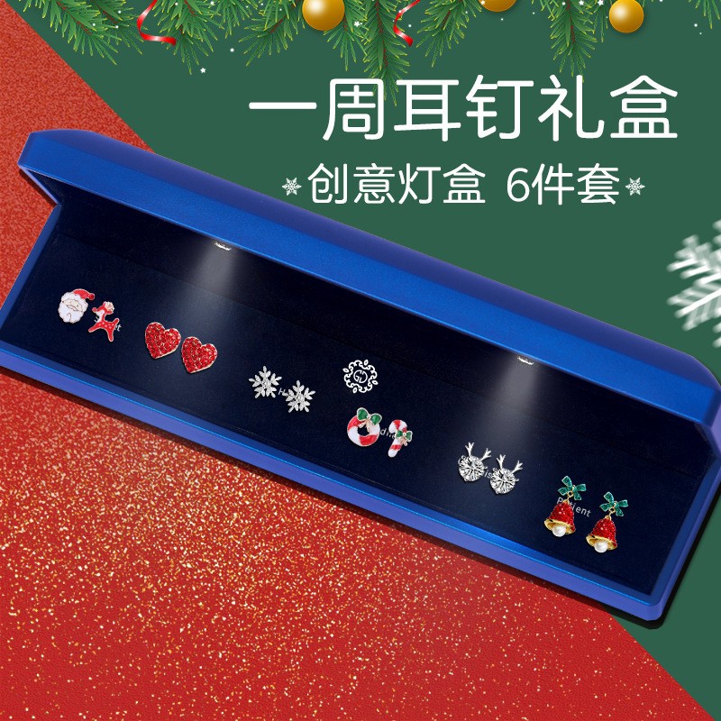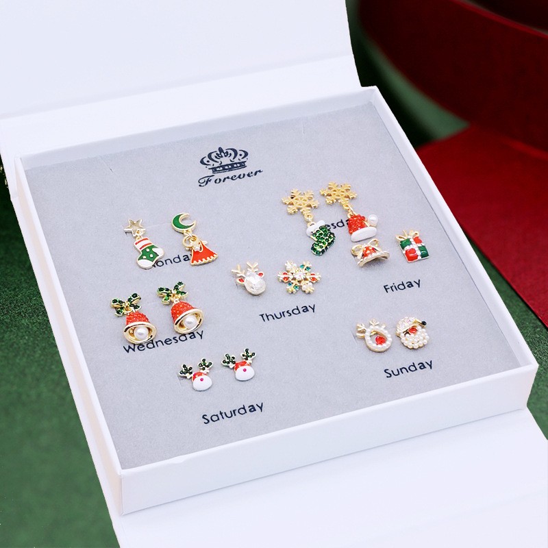 2025 Christmas New Earrings S925 Silver Needle One-Week Earrings Gift Box Set High-End Christmas Gift for Girls