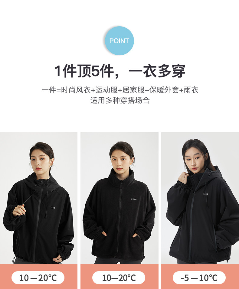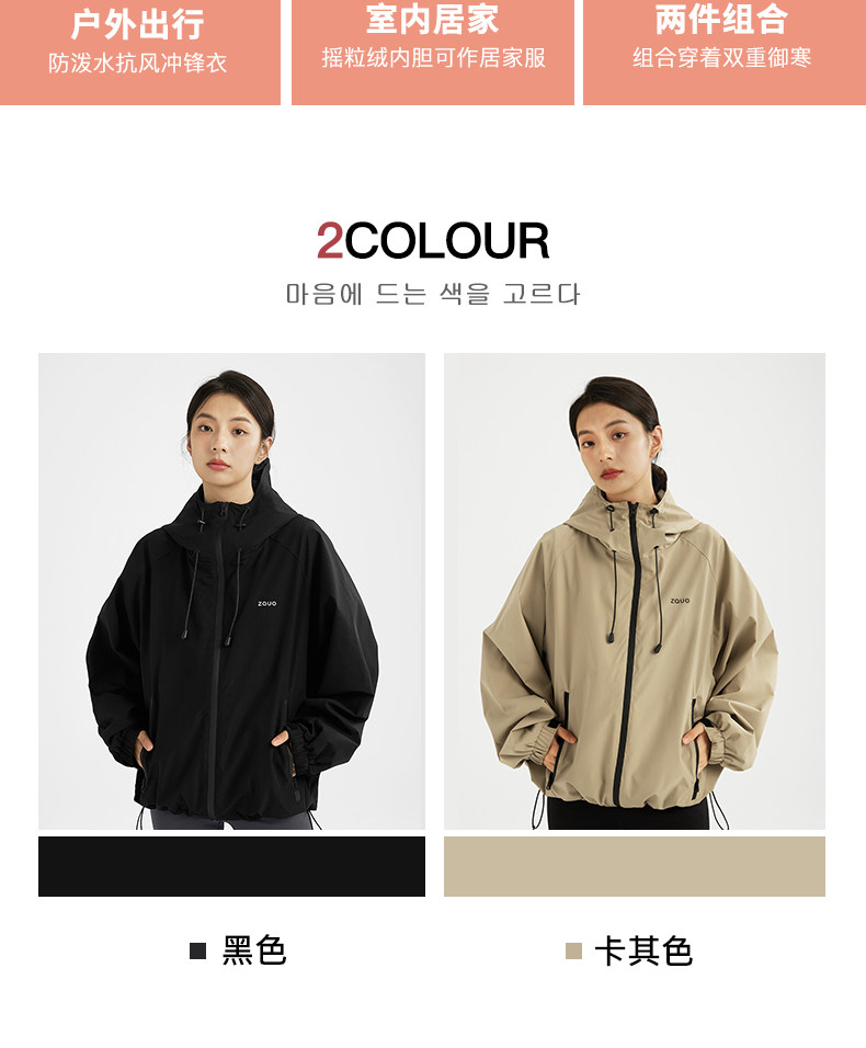 Korean Zauo Outdoor Jacket for Men and Women, Three-In-One Windproof, Waterproof and Warm Jacket, New Velvet Hiking Jacket