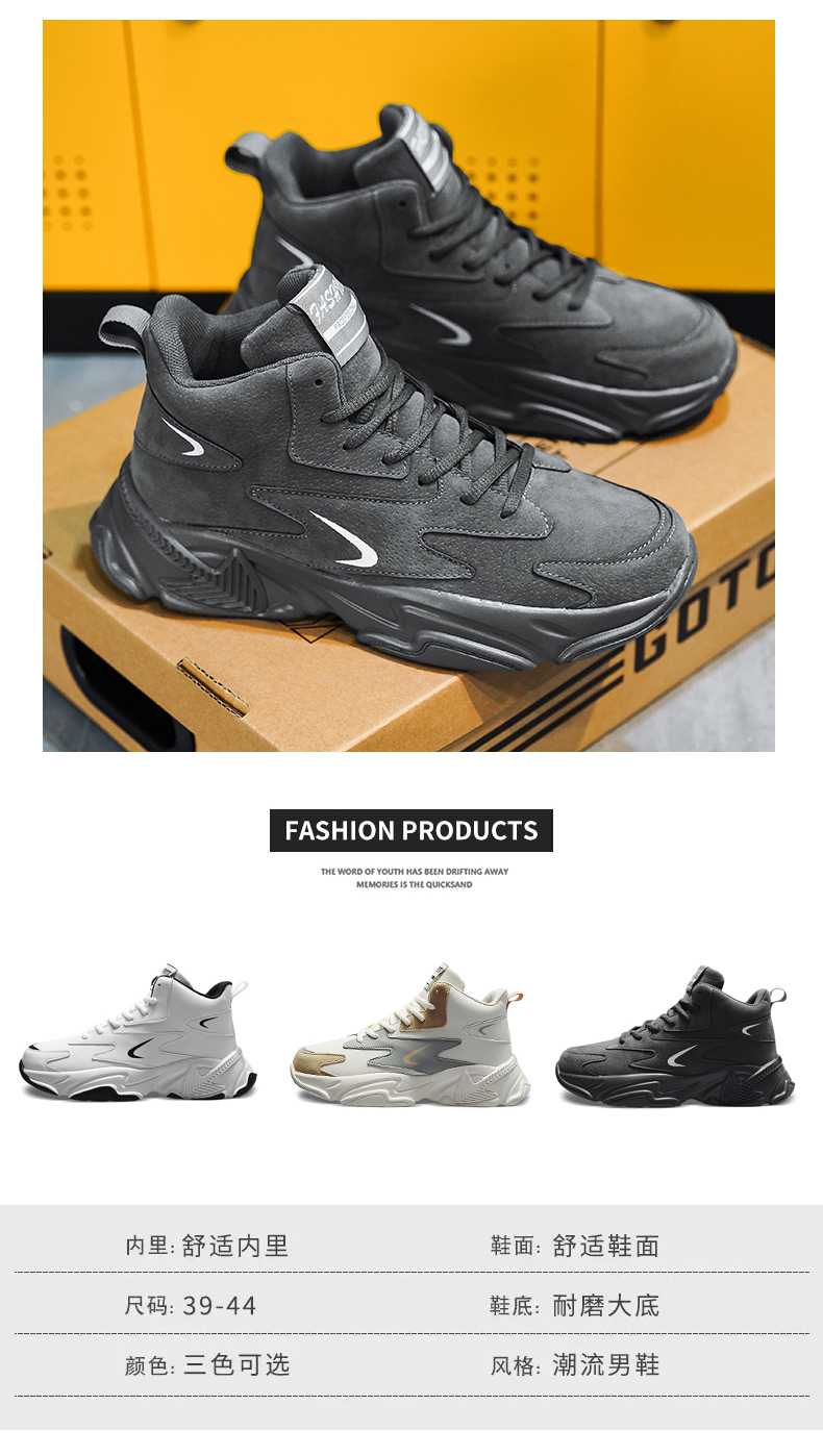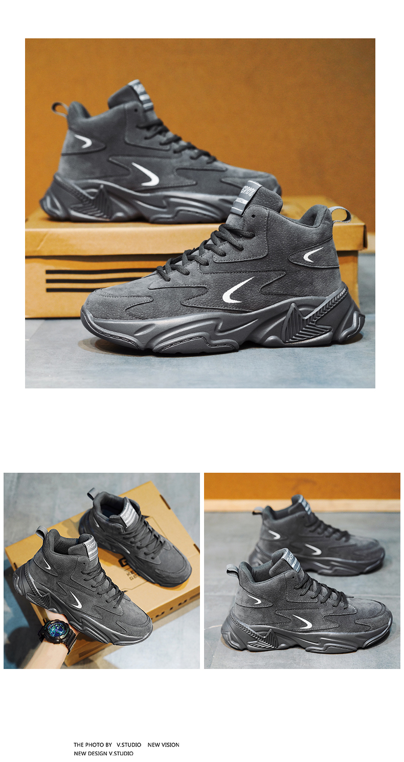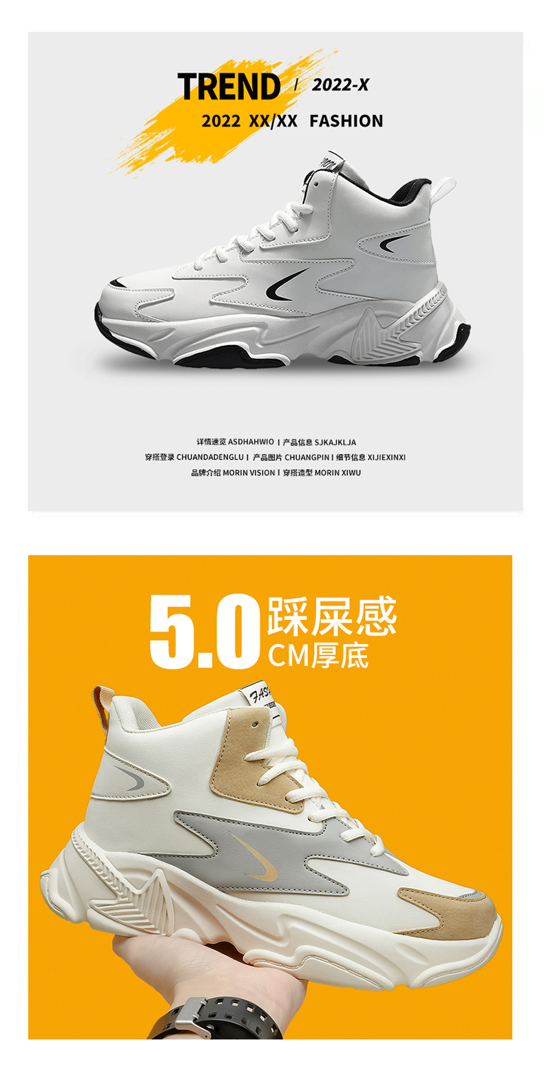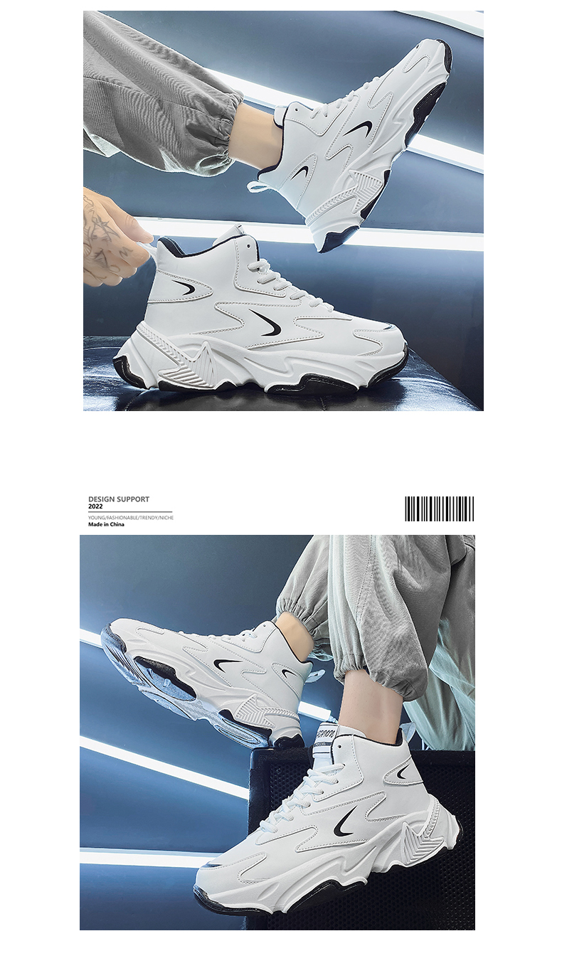 High-Top Men's Shoes 2025 New Autumn and Winter Breathable Sports Casual Height-Increasing White Dad Sneakers for Junior High School Students