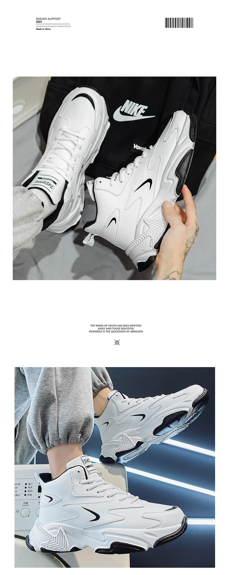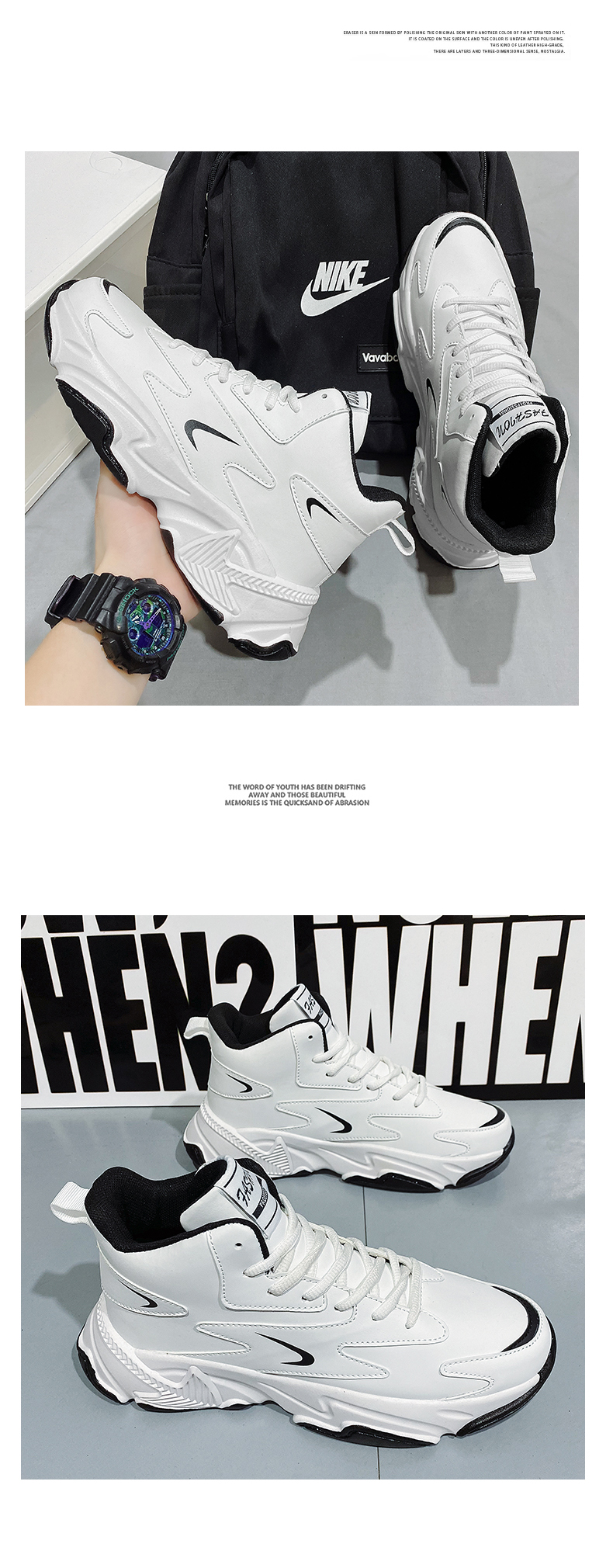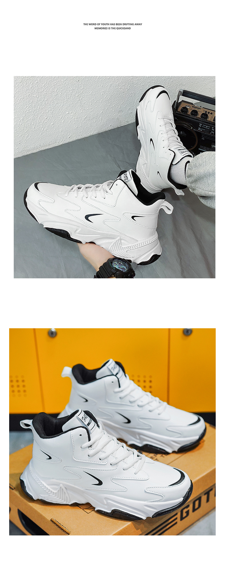 High-Top Men's Shoes 2025 New Autumn and Winter Breathable Sports Casual Height-Increasing White Dad Sneakers for Junior High School Students