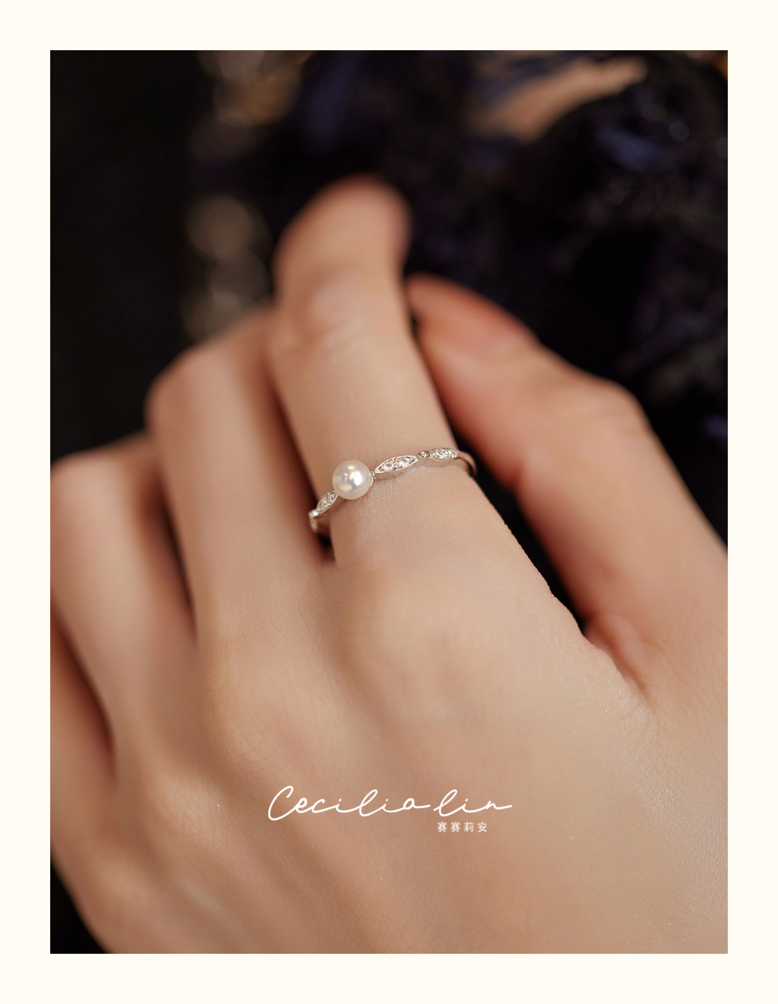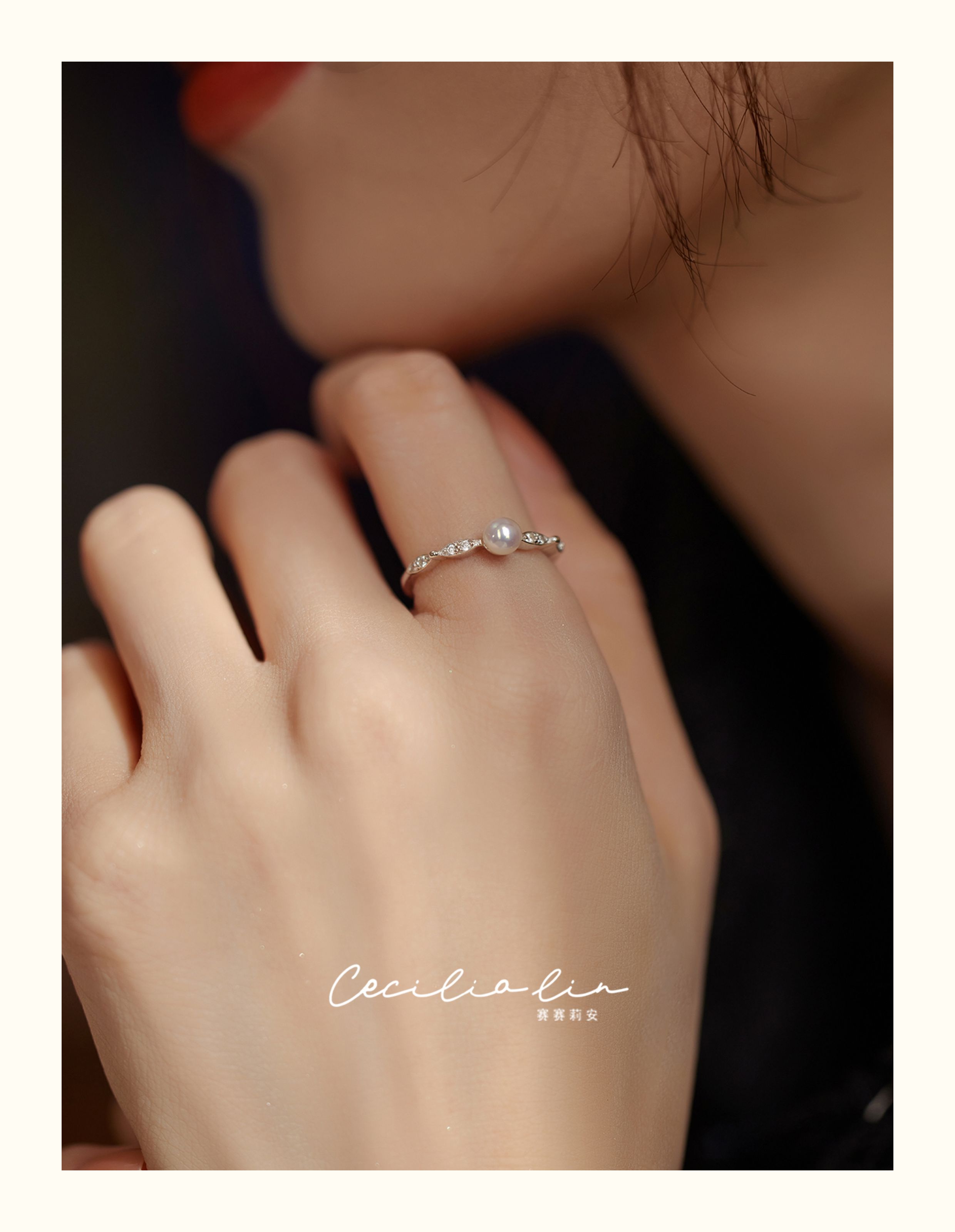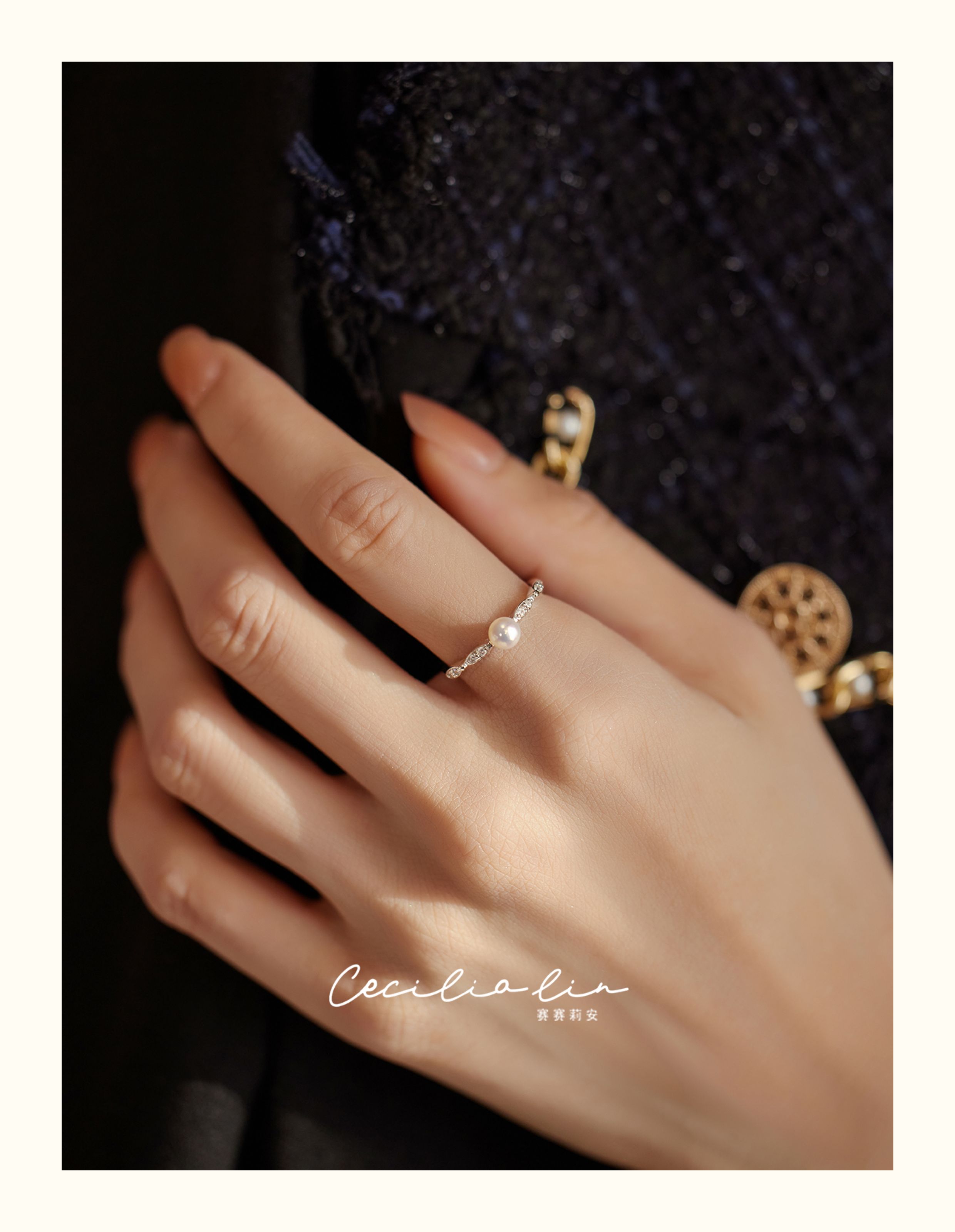 Cecilian Natural Freshwater Pearl Ring S925 Sterling Silver Simple Light Luxury Temperament Adjustable Niche Design for Women