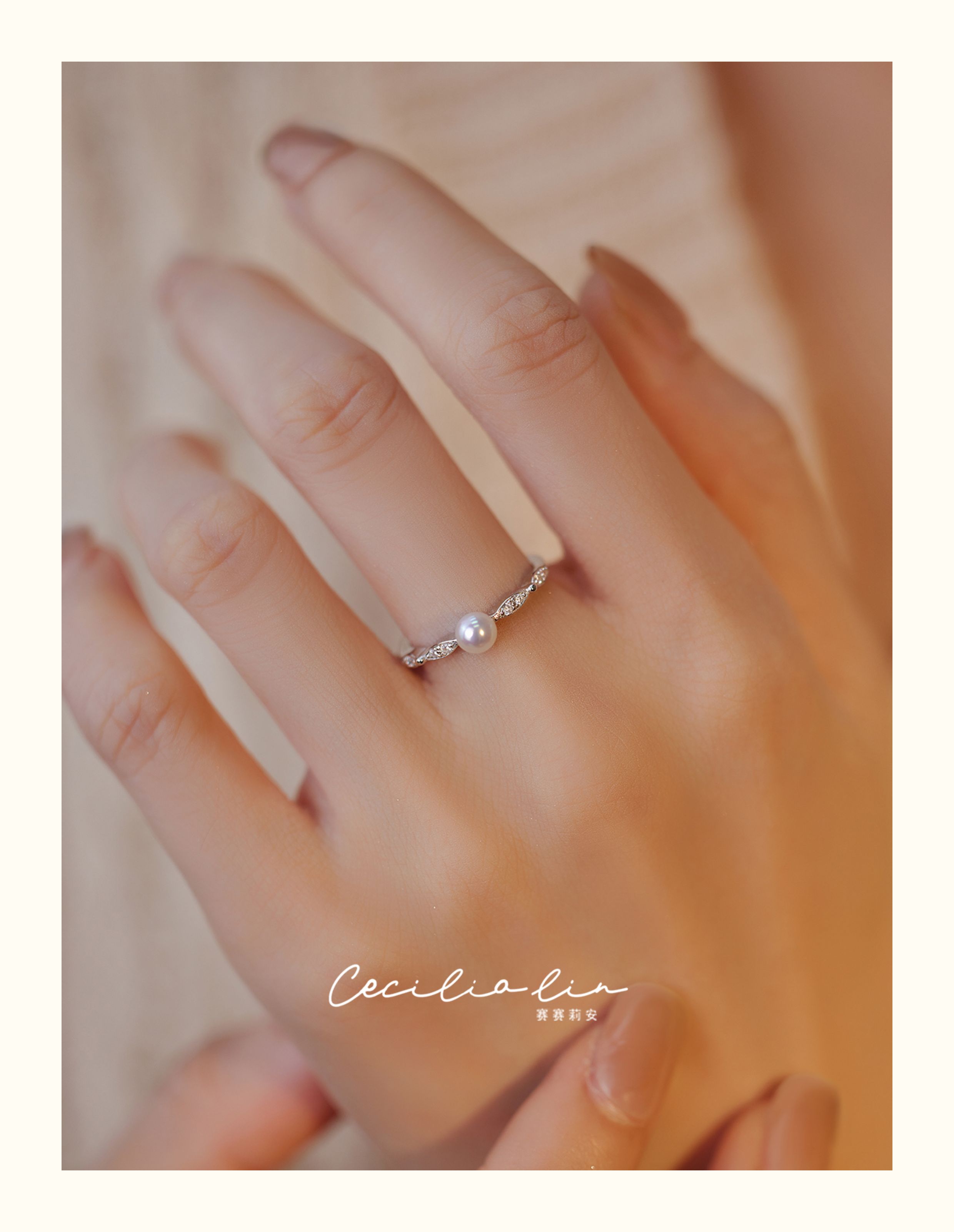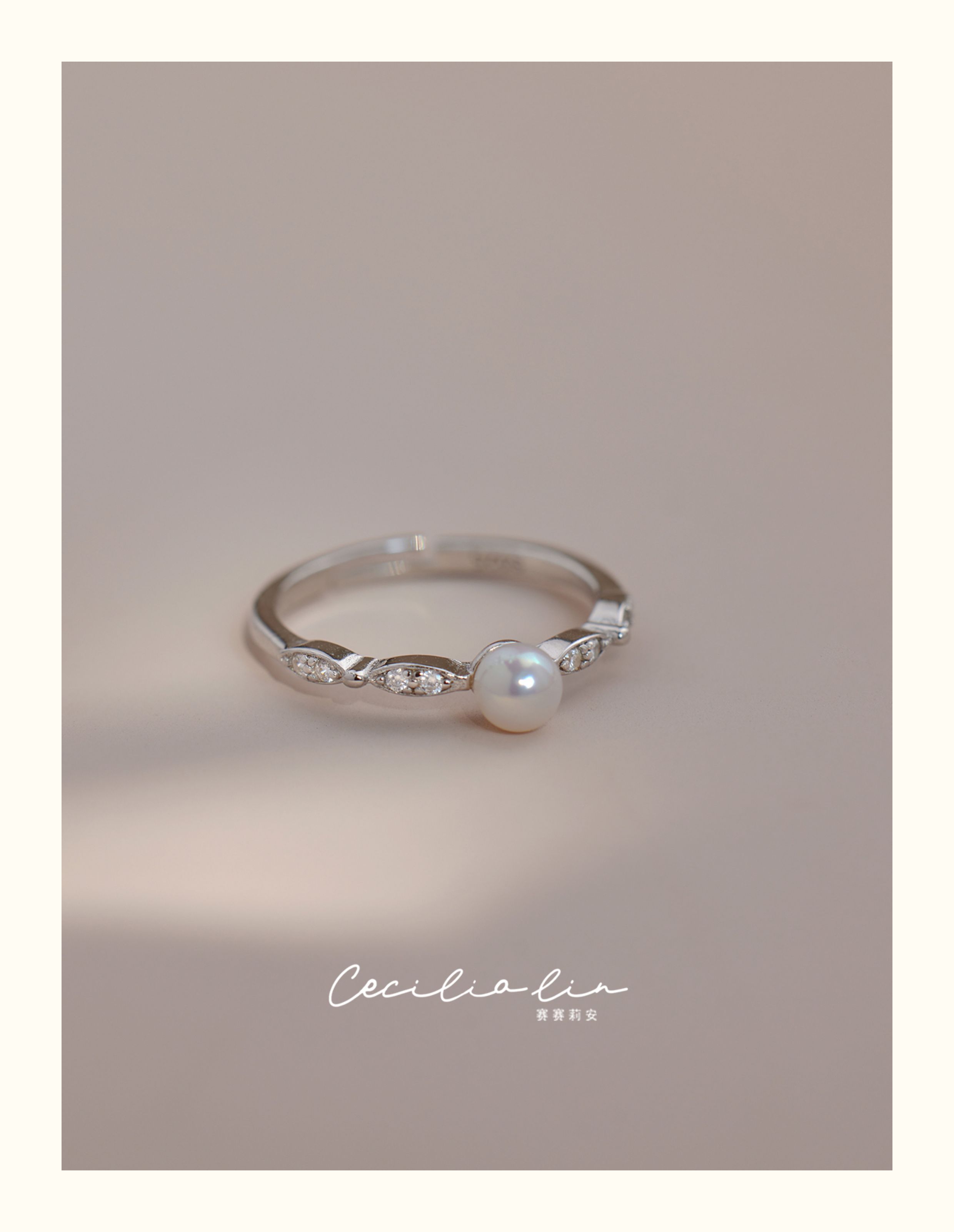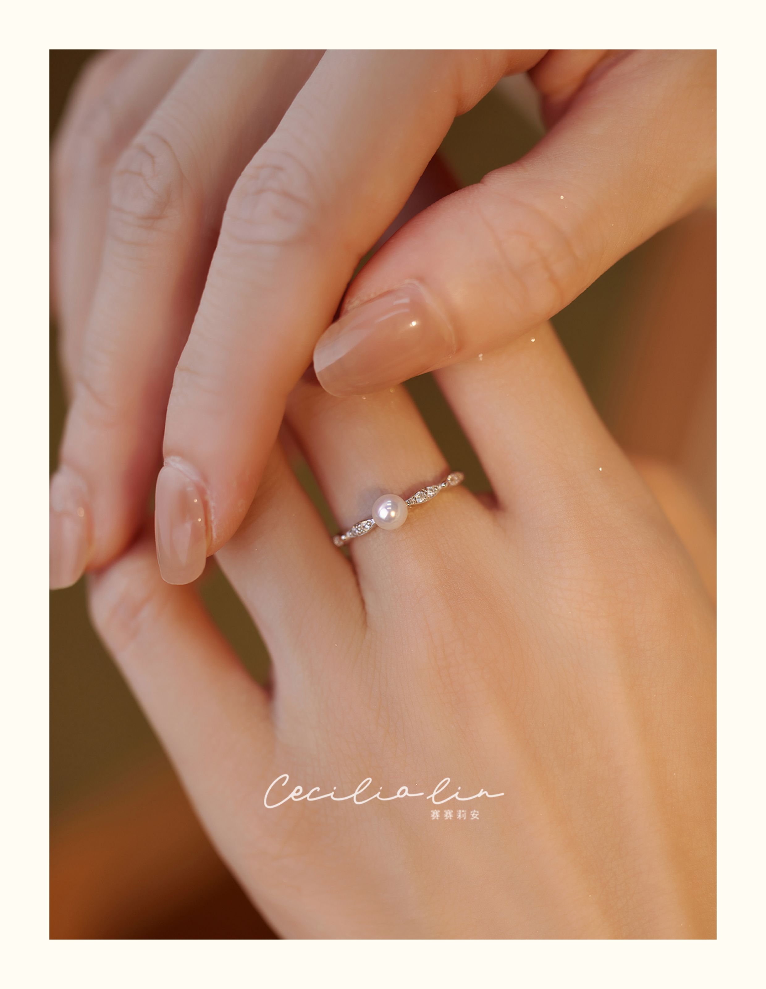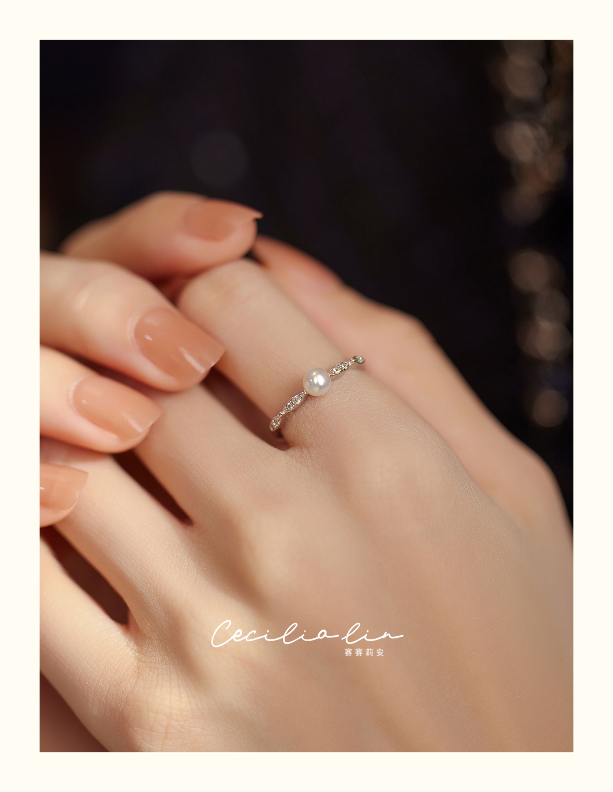 Cecilian Natural Freshwater Pearl Ring S925 Sterling Silver Simple Light Luxury Temperament Adjustable Niche Design for Women